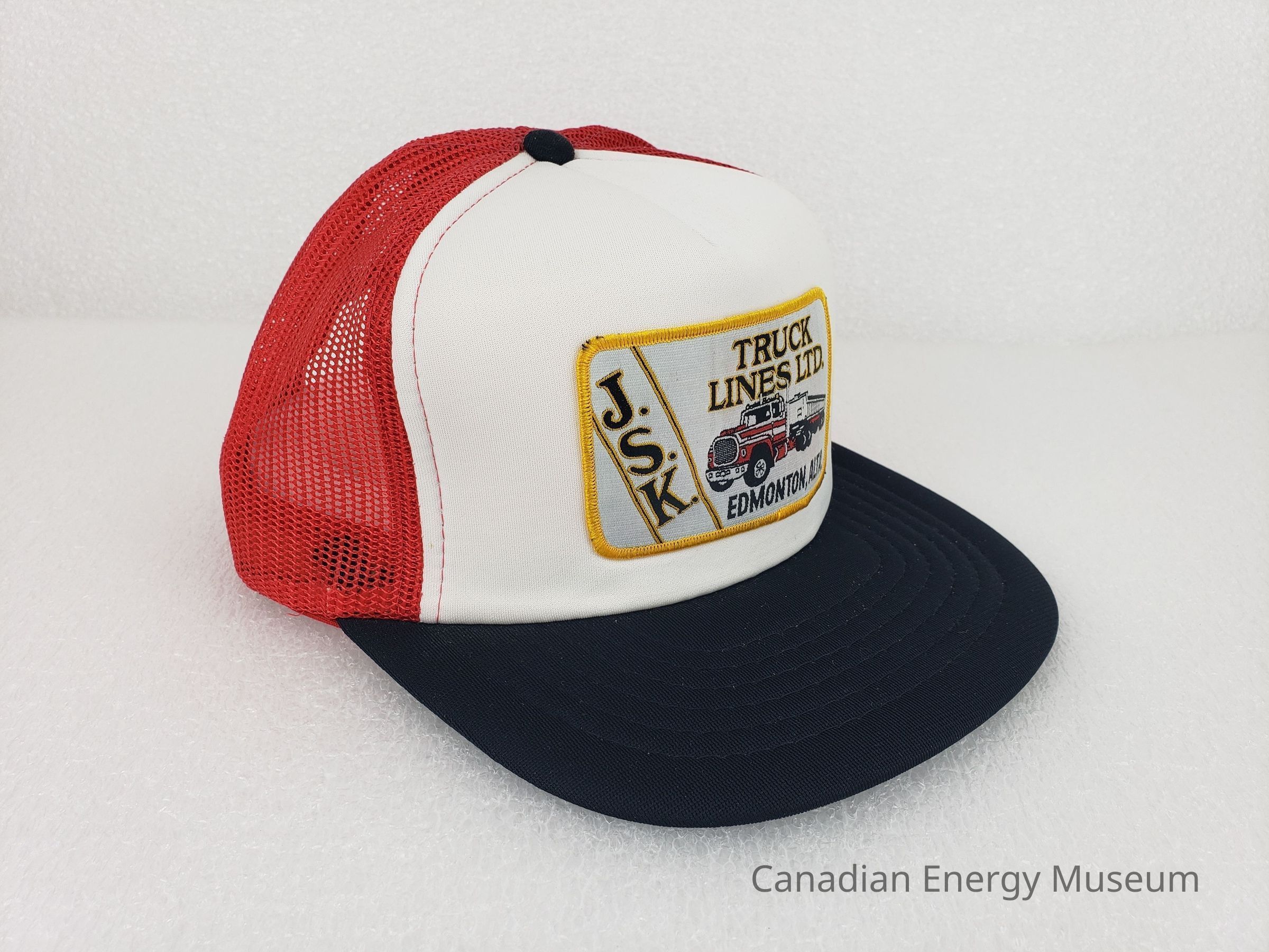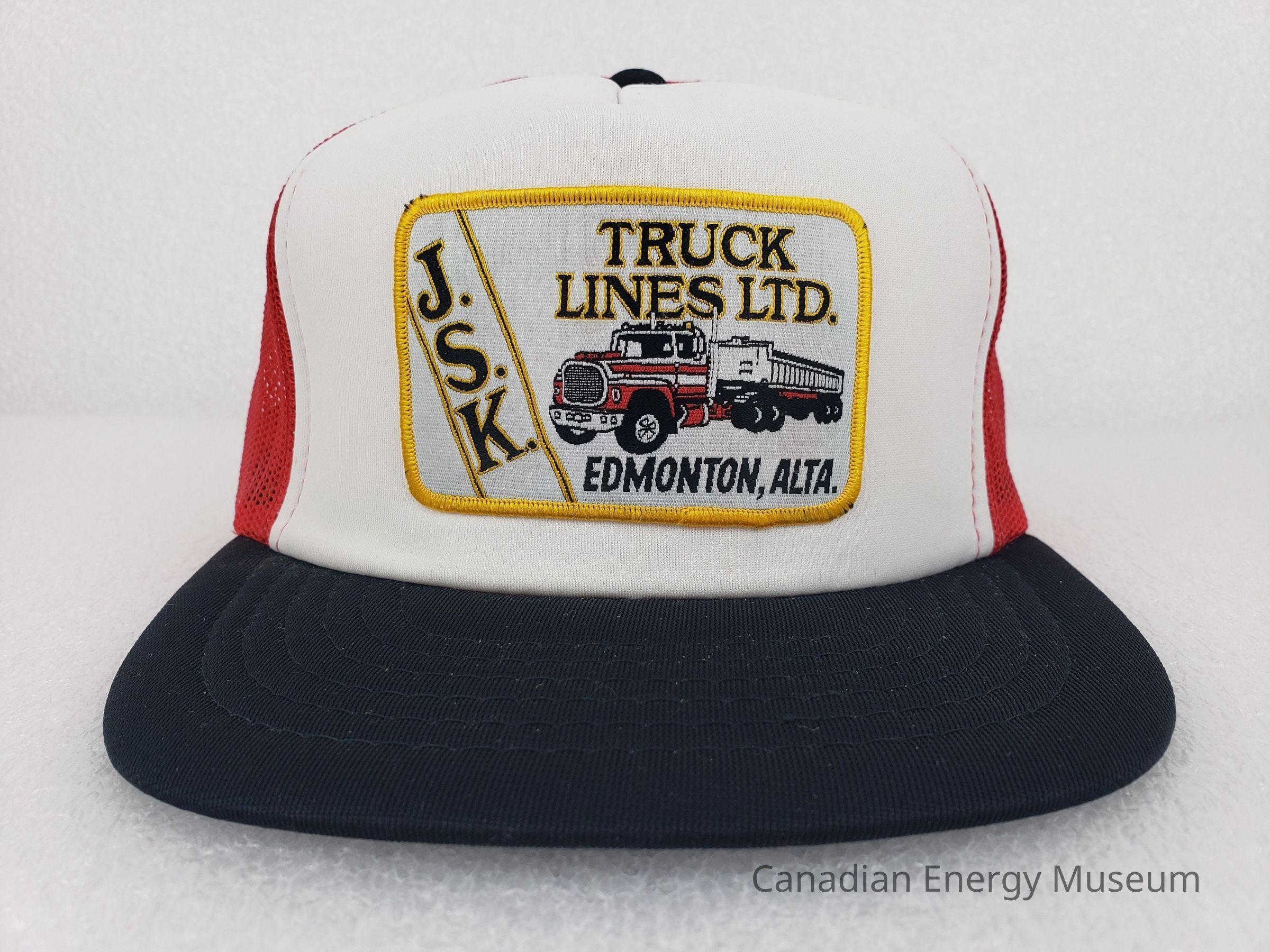 [Cap] JSK Truck Lines Ltd., Edmonton Alberta, Plush Crown White, Mesh Body Red, Padded Brim BlackEntry/Object ID