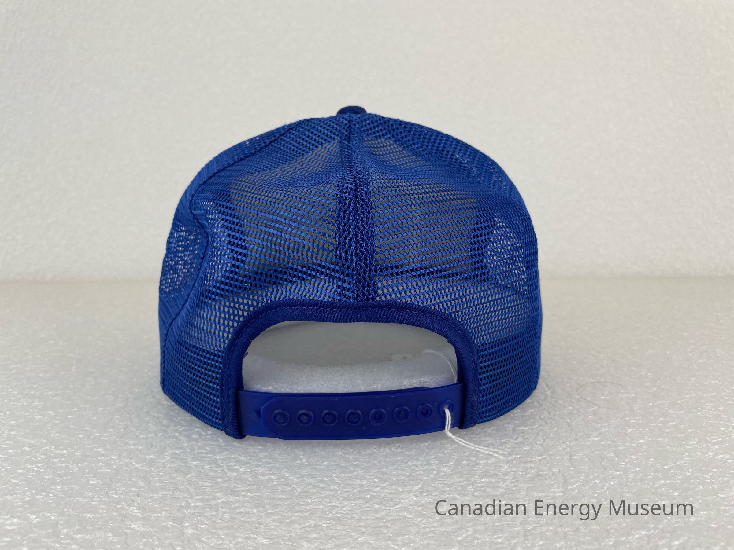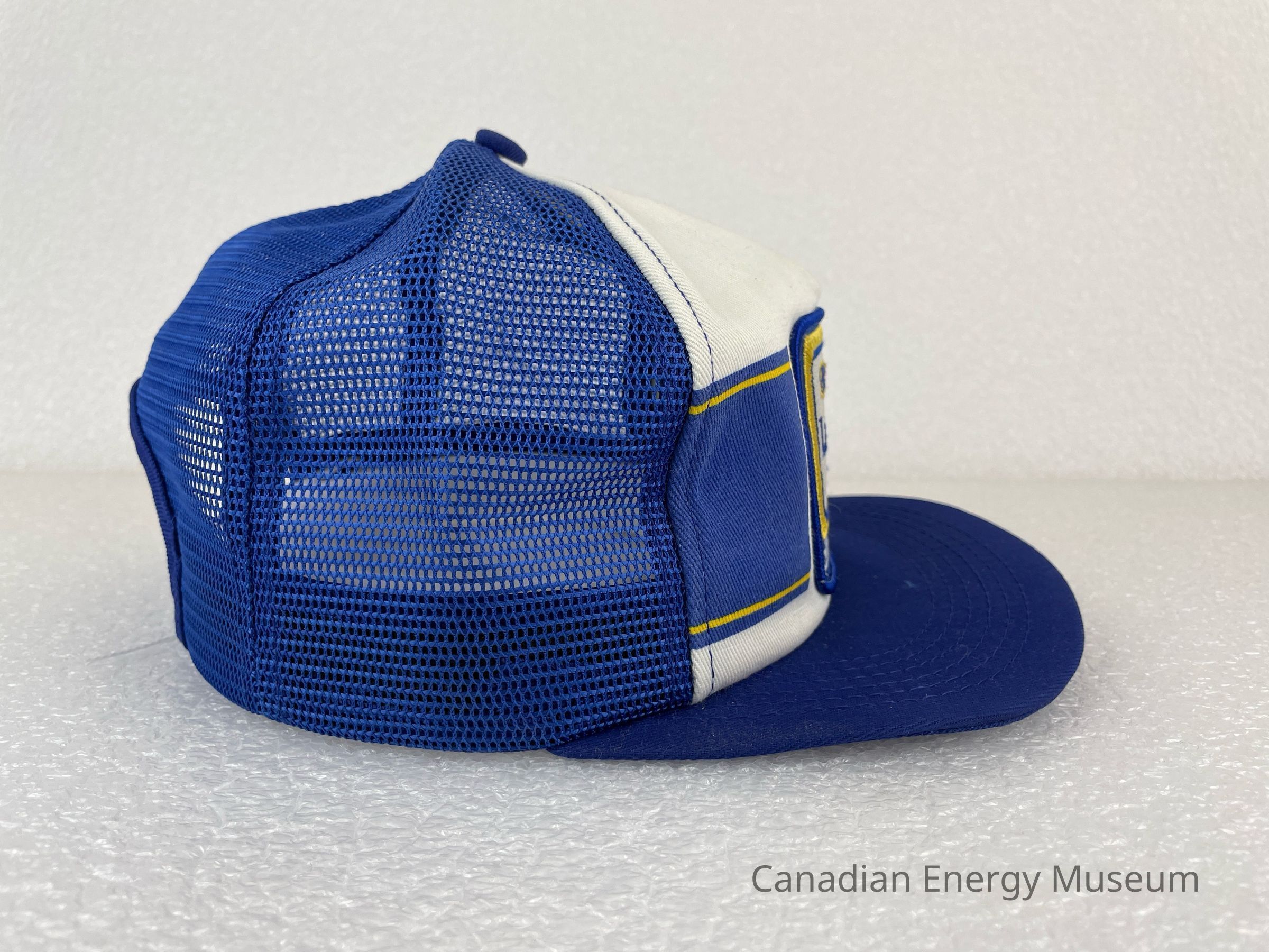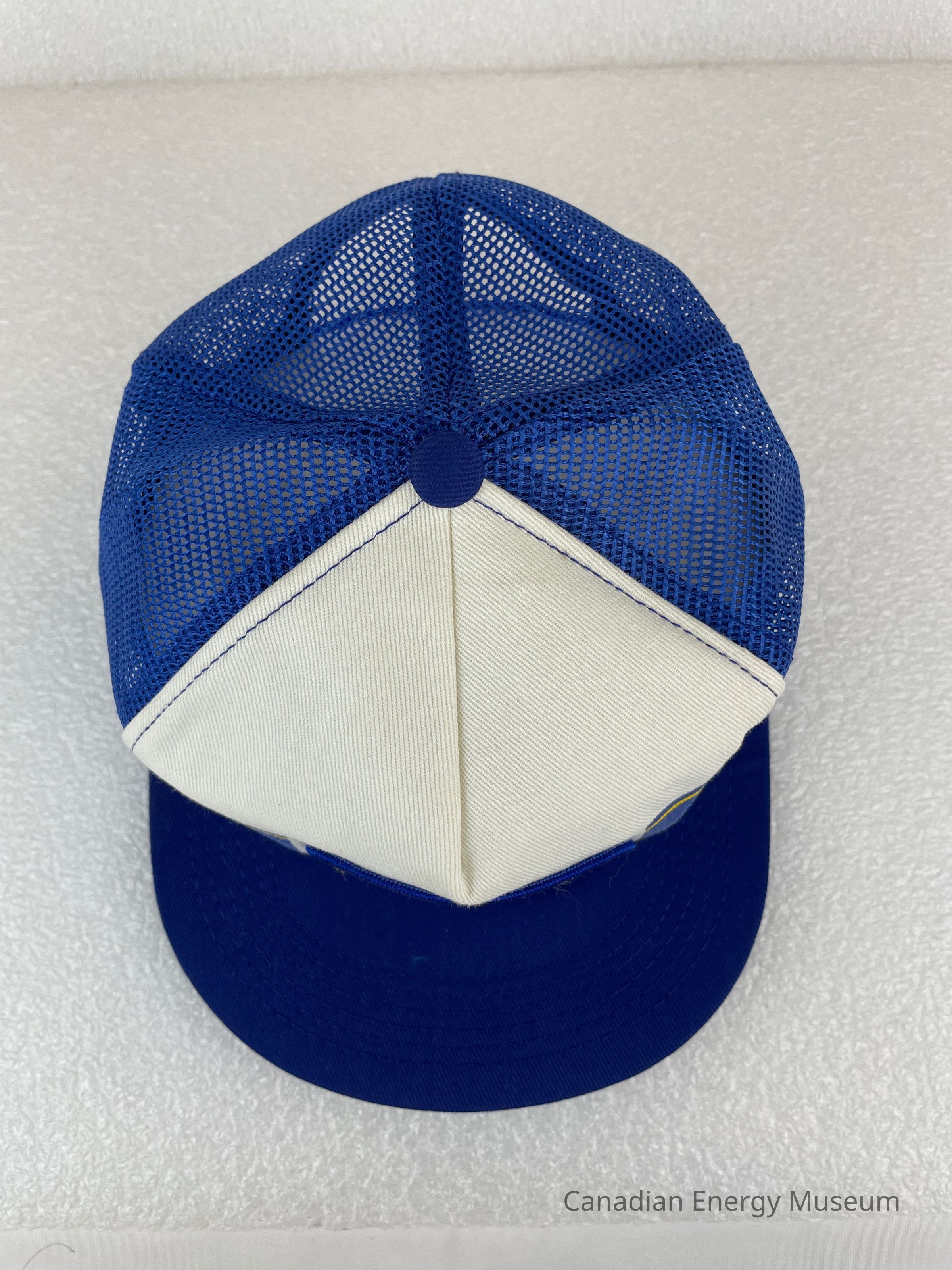 Accessory, Cap, Clothing, Hat, Promotional Item, White, Trucker Cap, Blue, YellowDescription