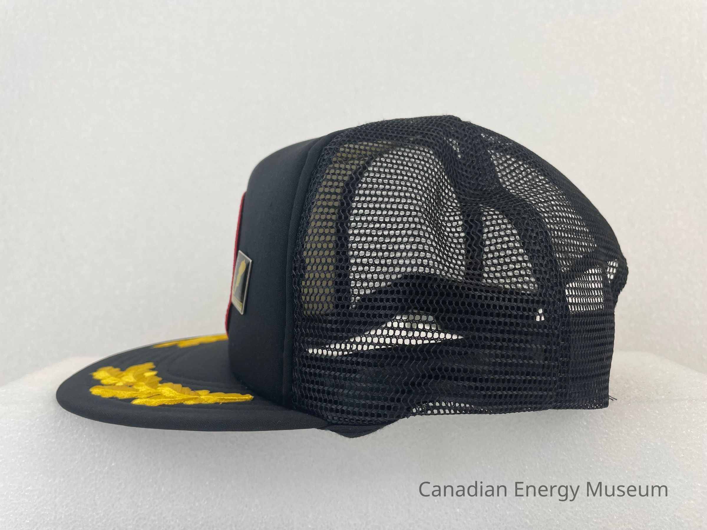 Cap, Trucker Cap, Leduc, Leduc #1, 1940s, Black, Yellow, Embroidery, Patch, DerrickDescription