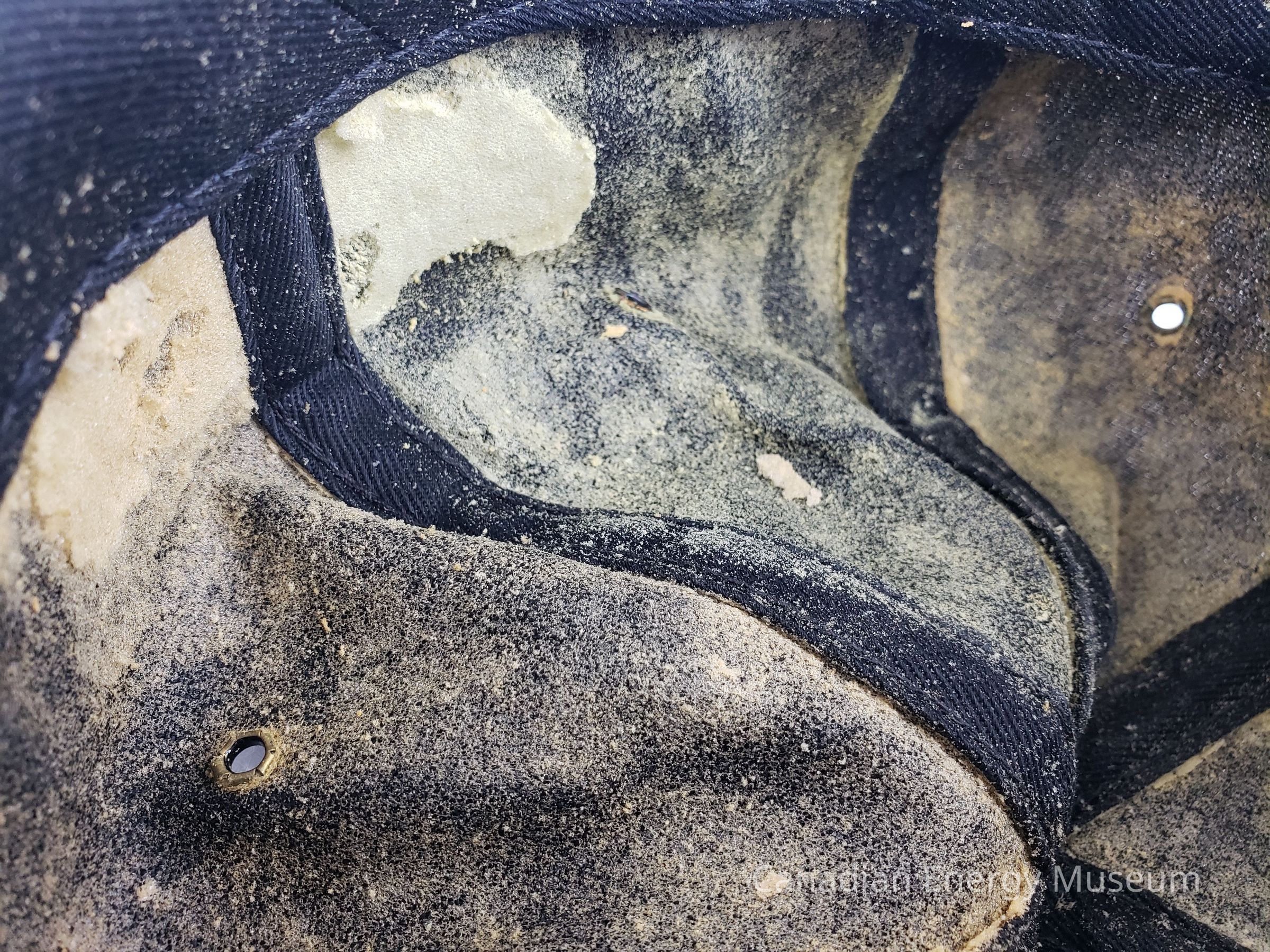 The foam backing on the crown has begun to degrade, and while mostly holding its shape still, it crumbles easily with any contact or movement.Created By