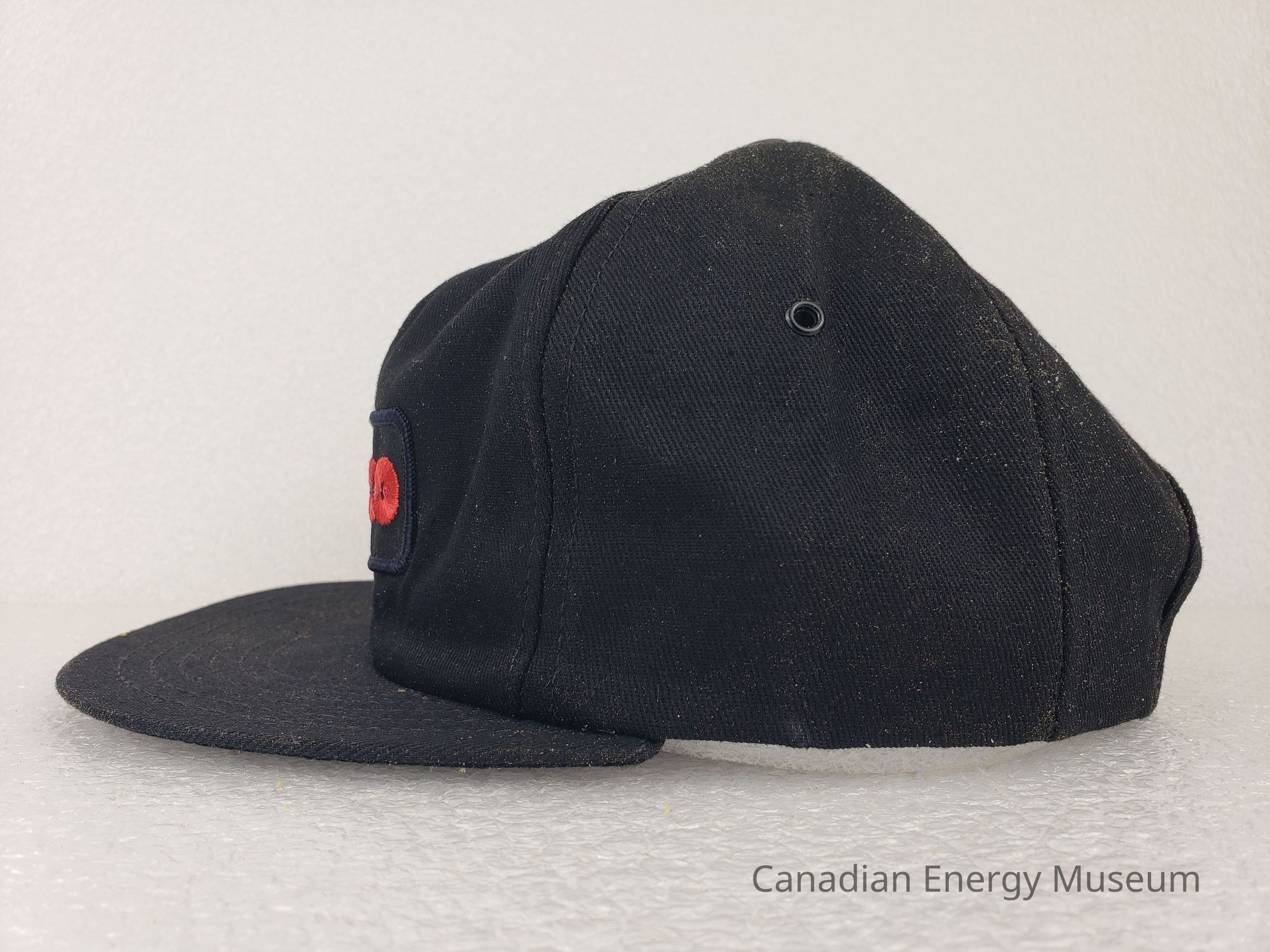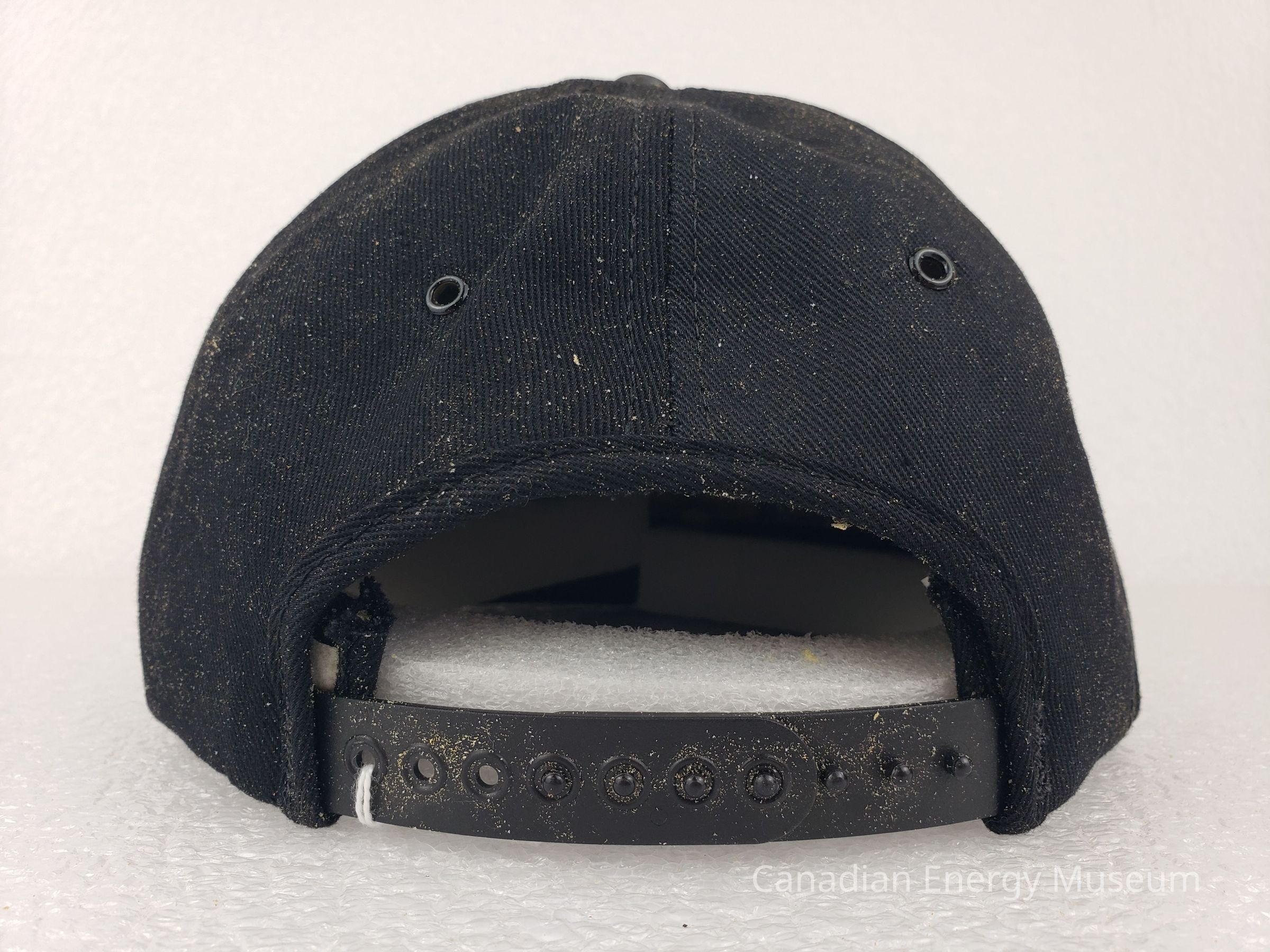 Crown Material: Foam backing with fabric outer, black with black stitching.