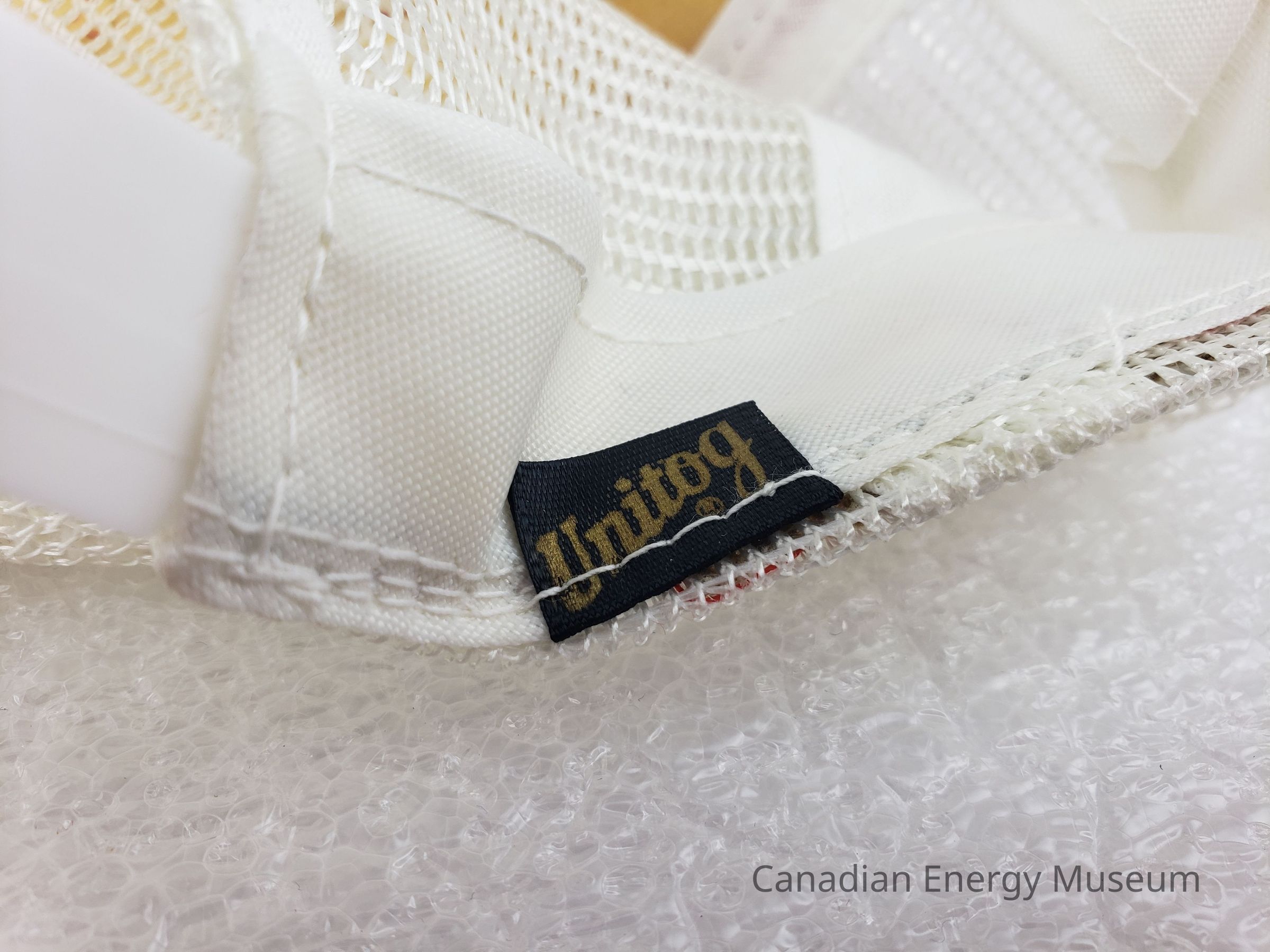 Crown Material: Foam backing with fabric outer, red with white stitching.