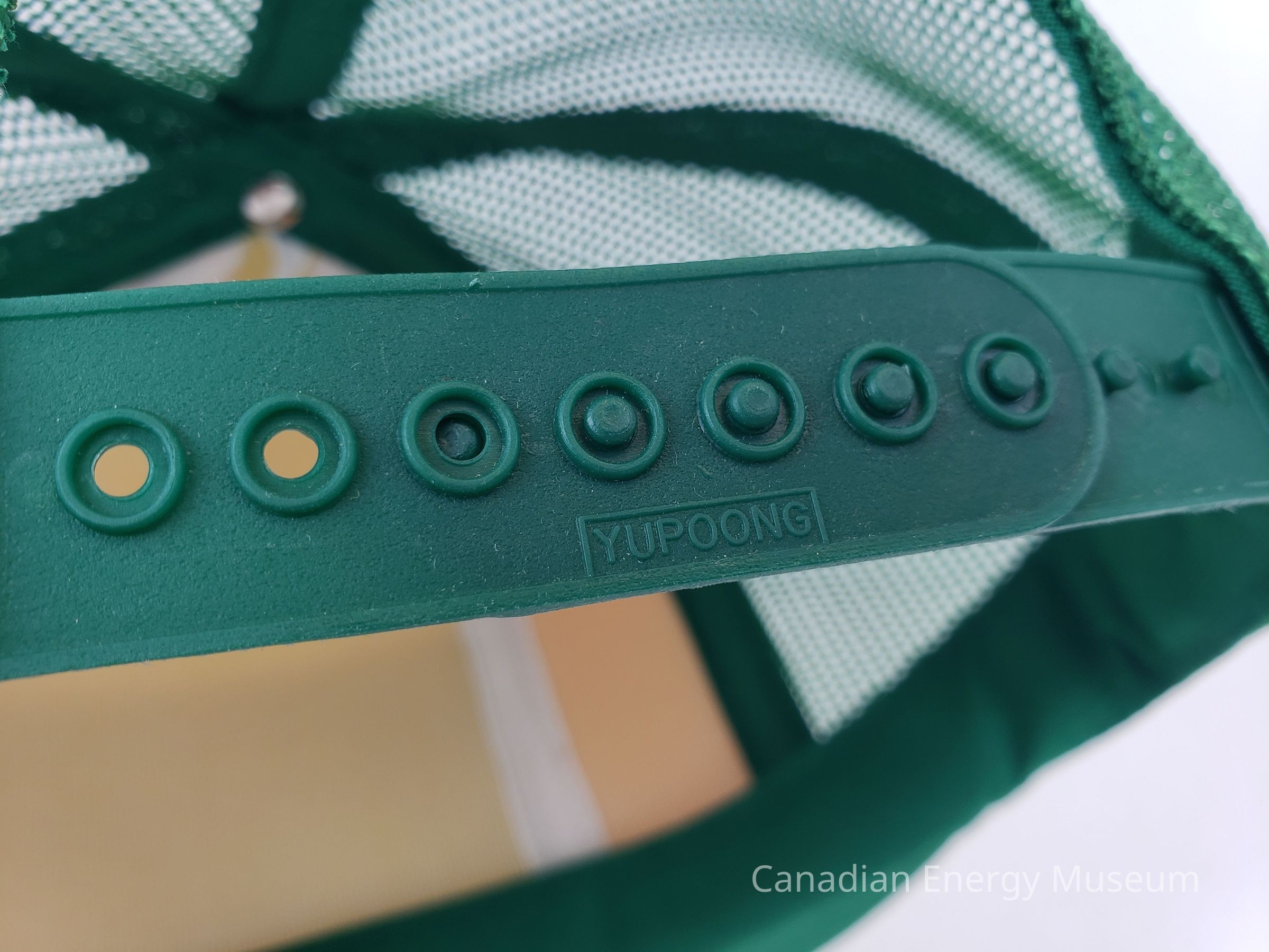 Fastening: Snap back, plastic green.