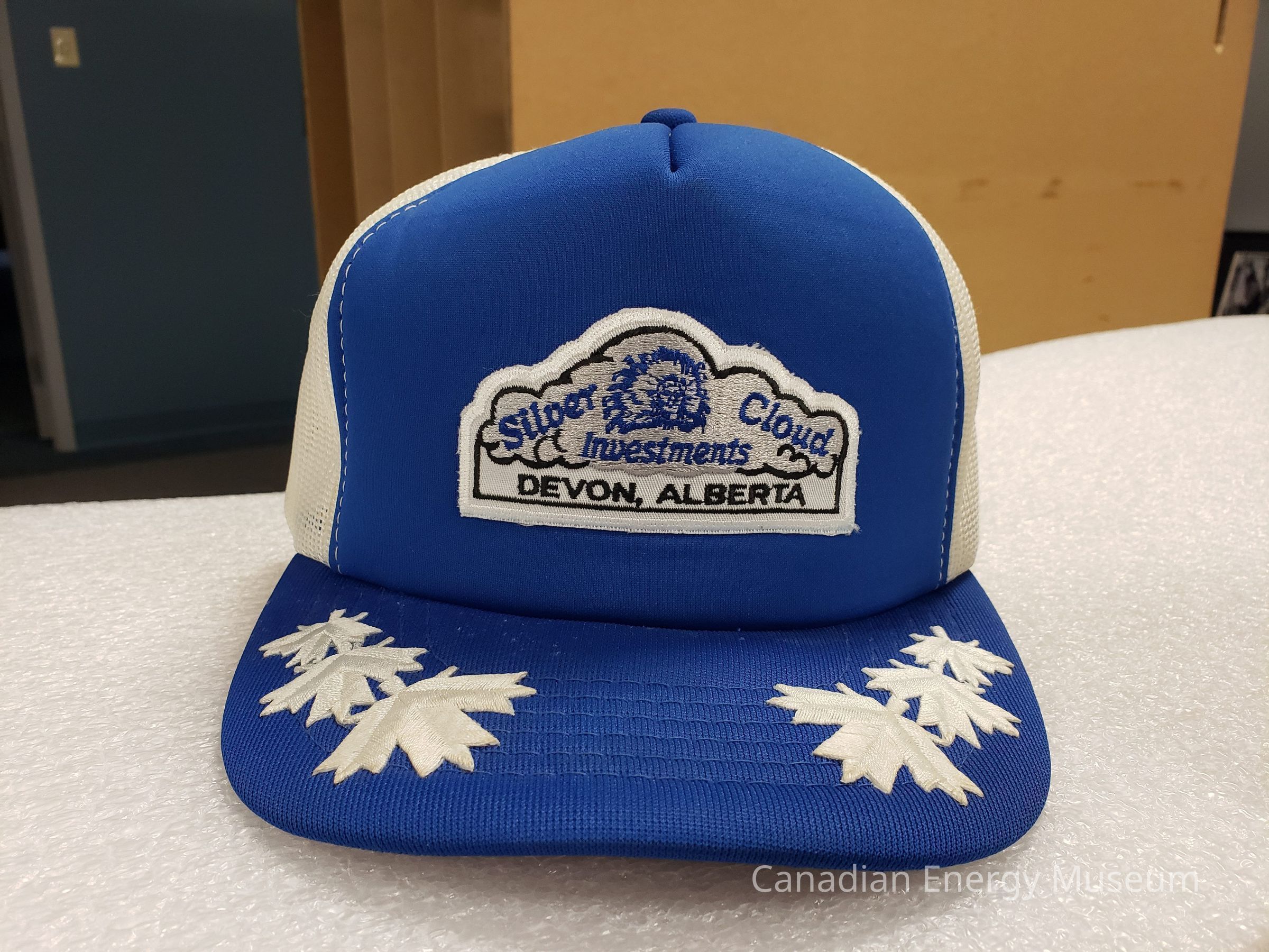 Cap, Trucker Cap, Textile, Hat, Silver Cloud Investments, Devon, Alberta, Canada, Maple Leaves, Blue, Silver, EmbroideryDescription