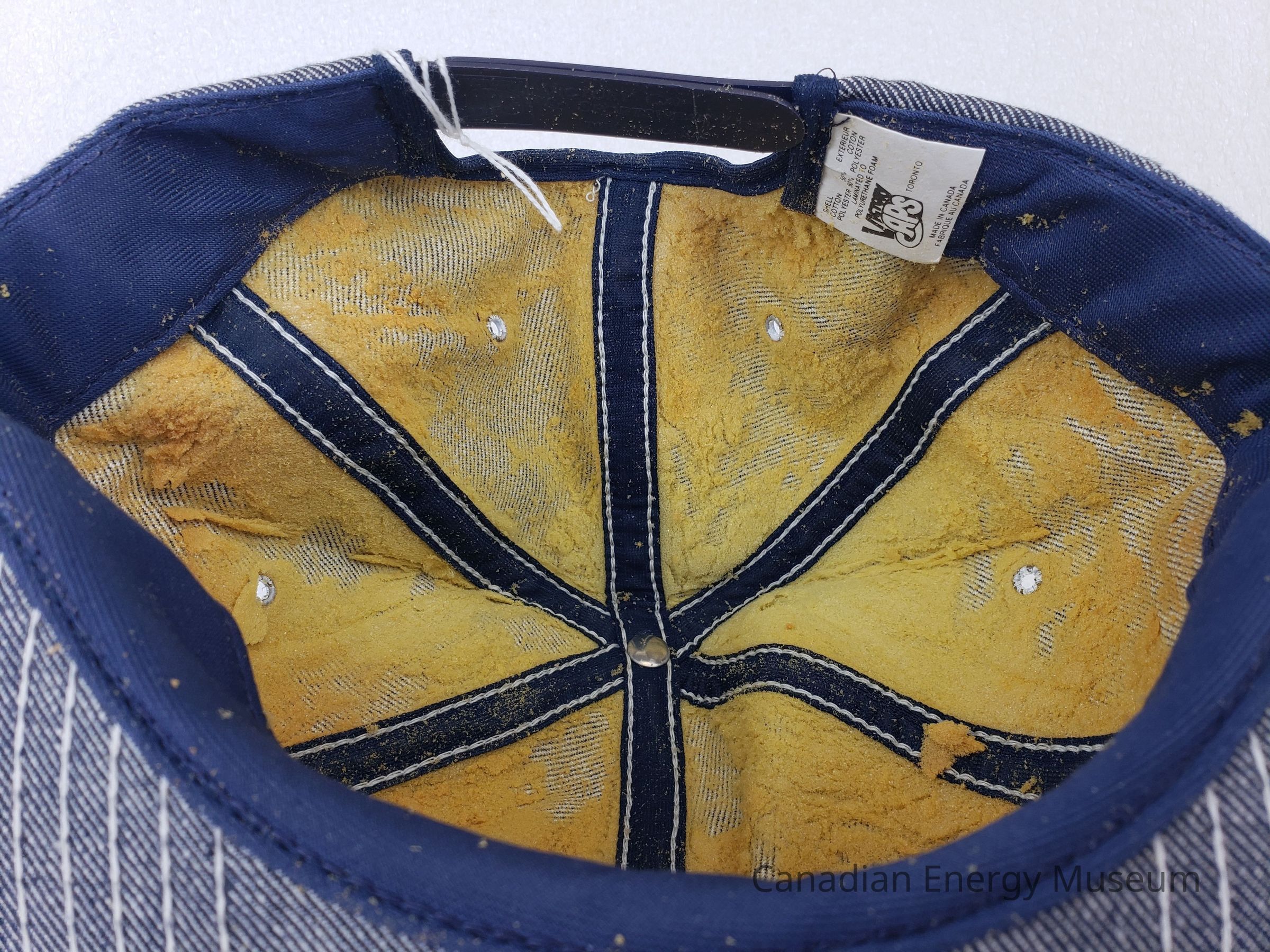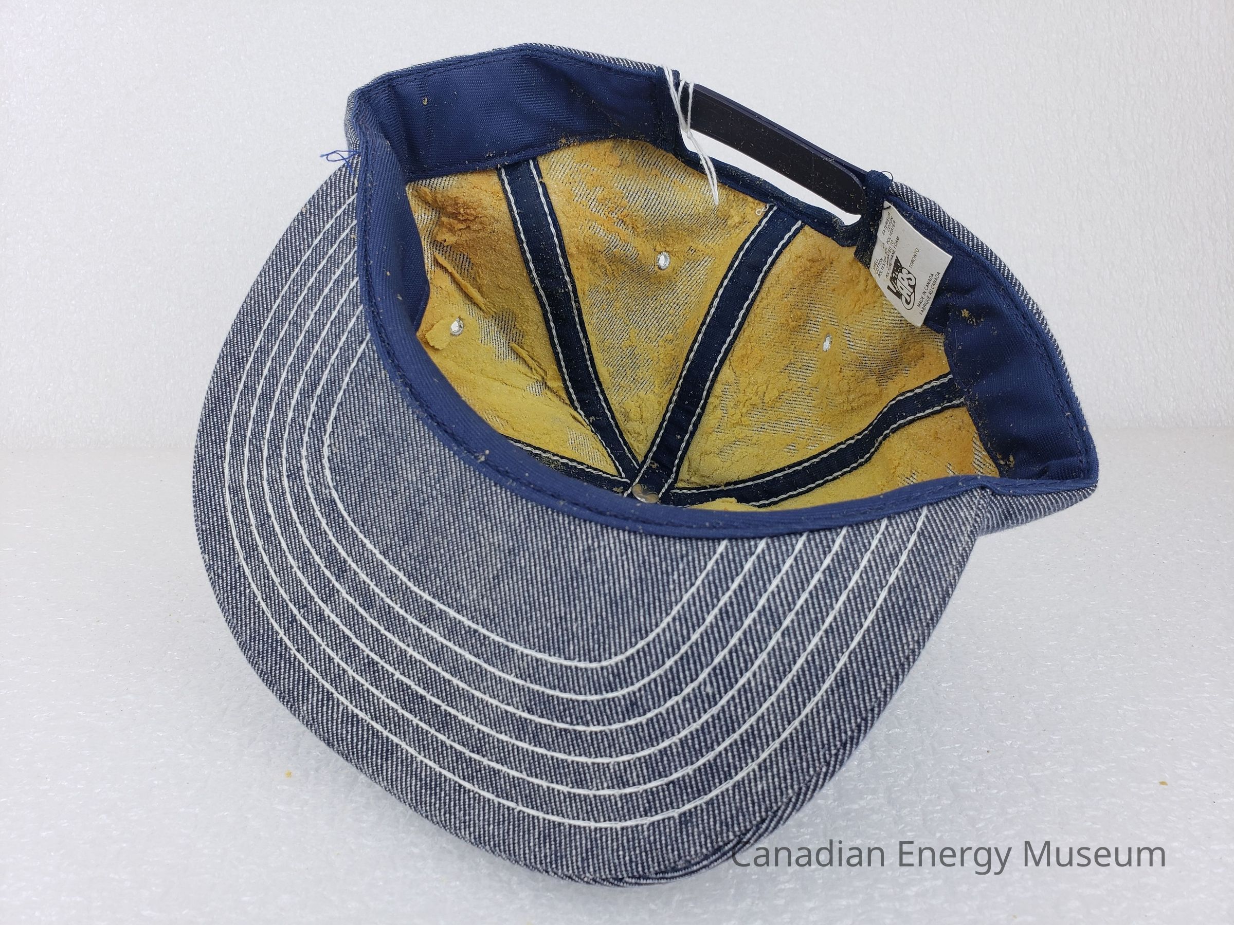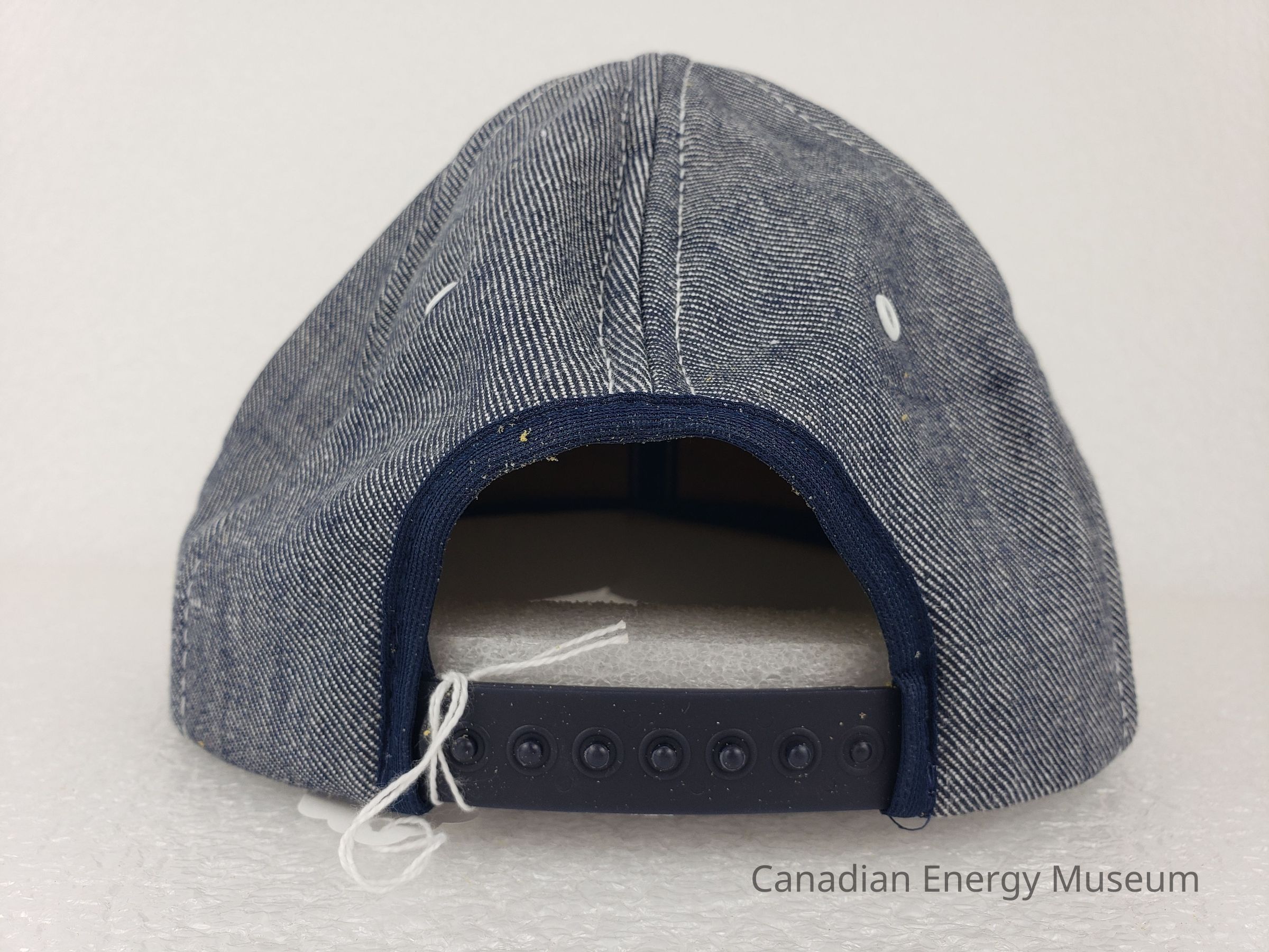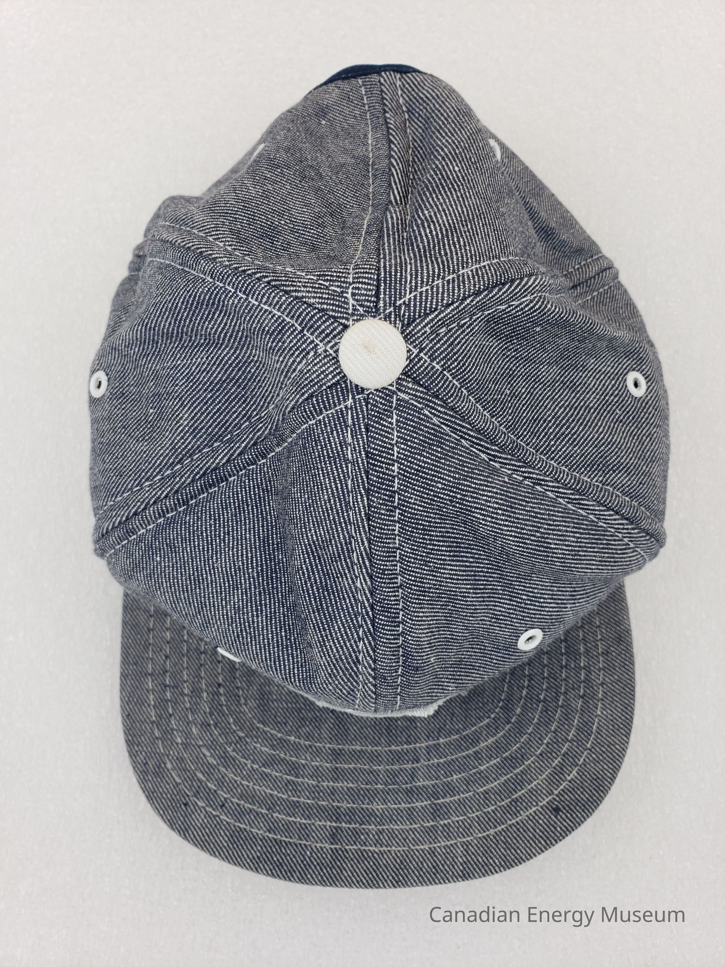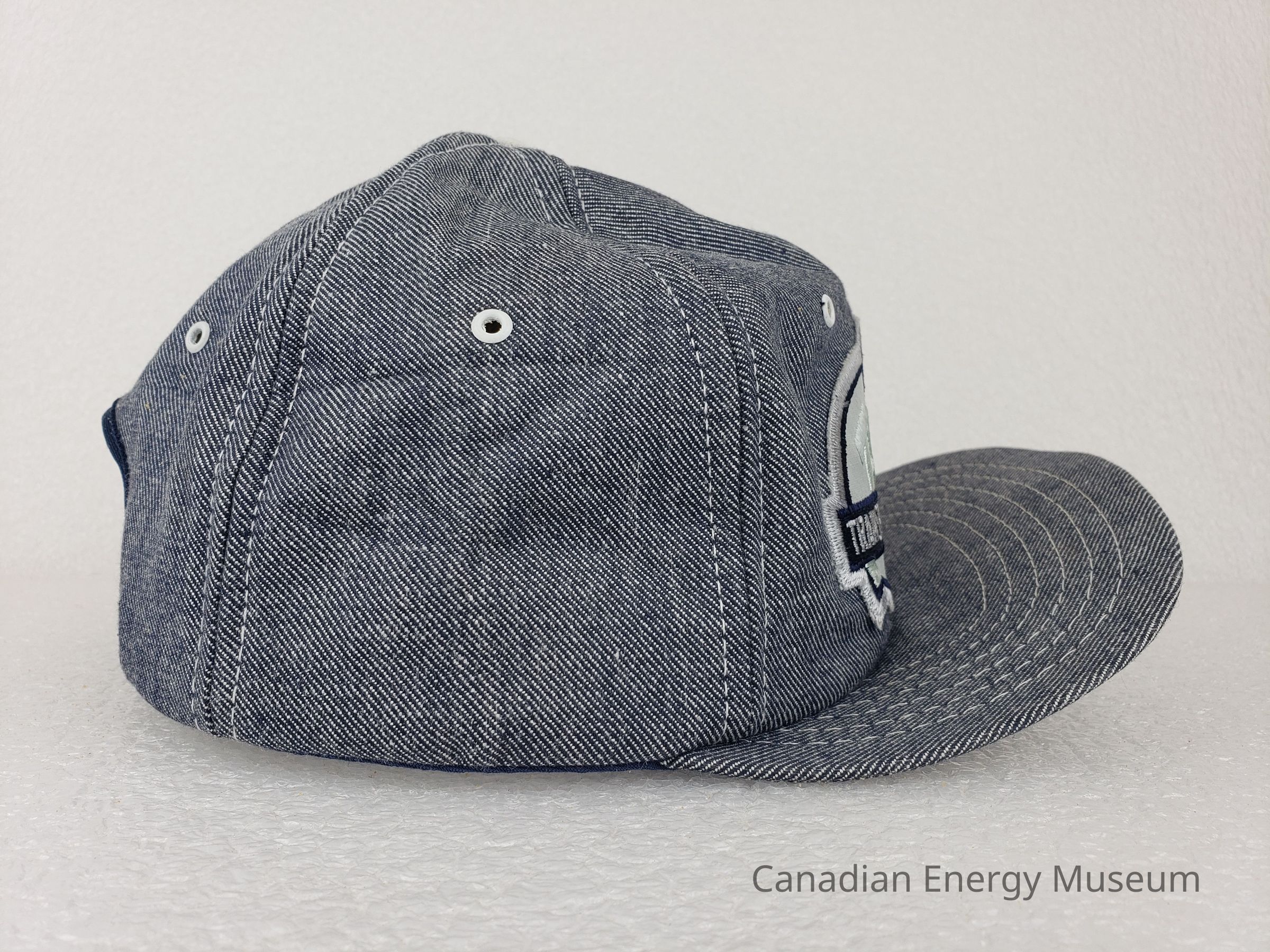 Brim: Denim-covered with whith stitching.