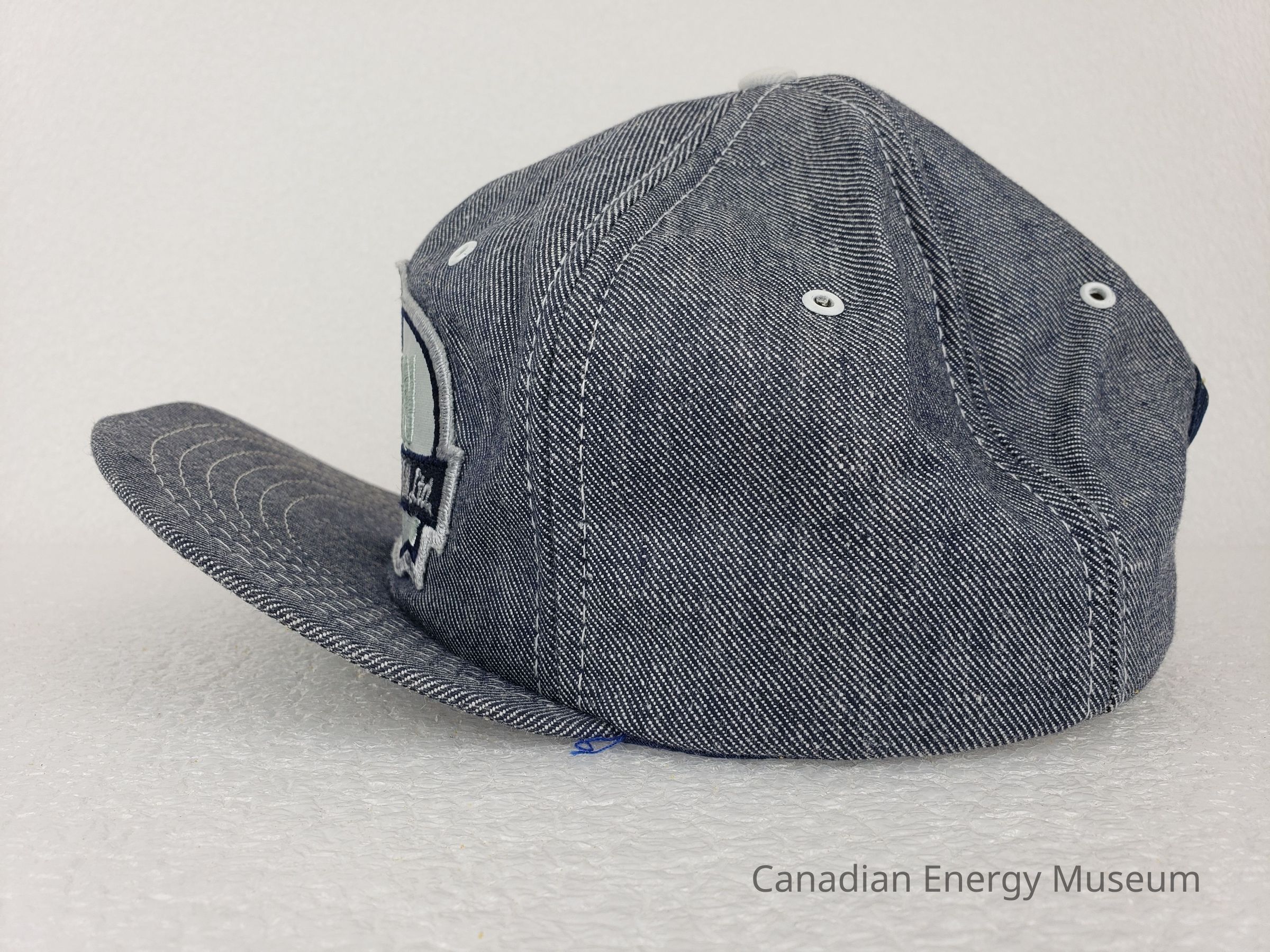 Crown Material: Foam backing with denim outer and white stitching.