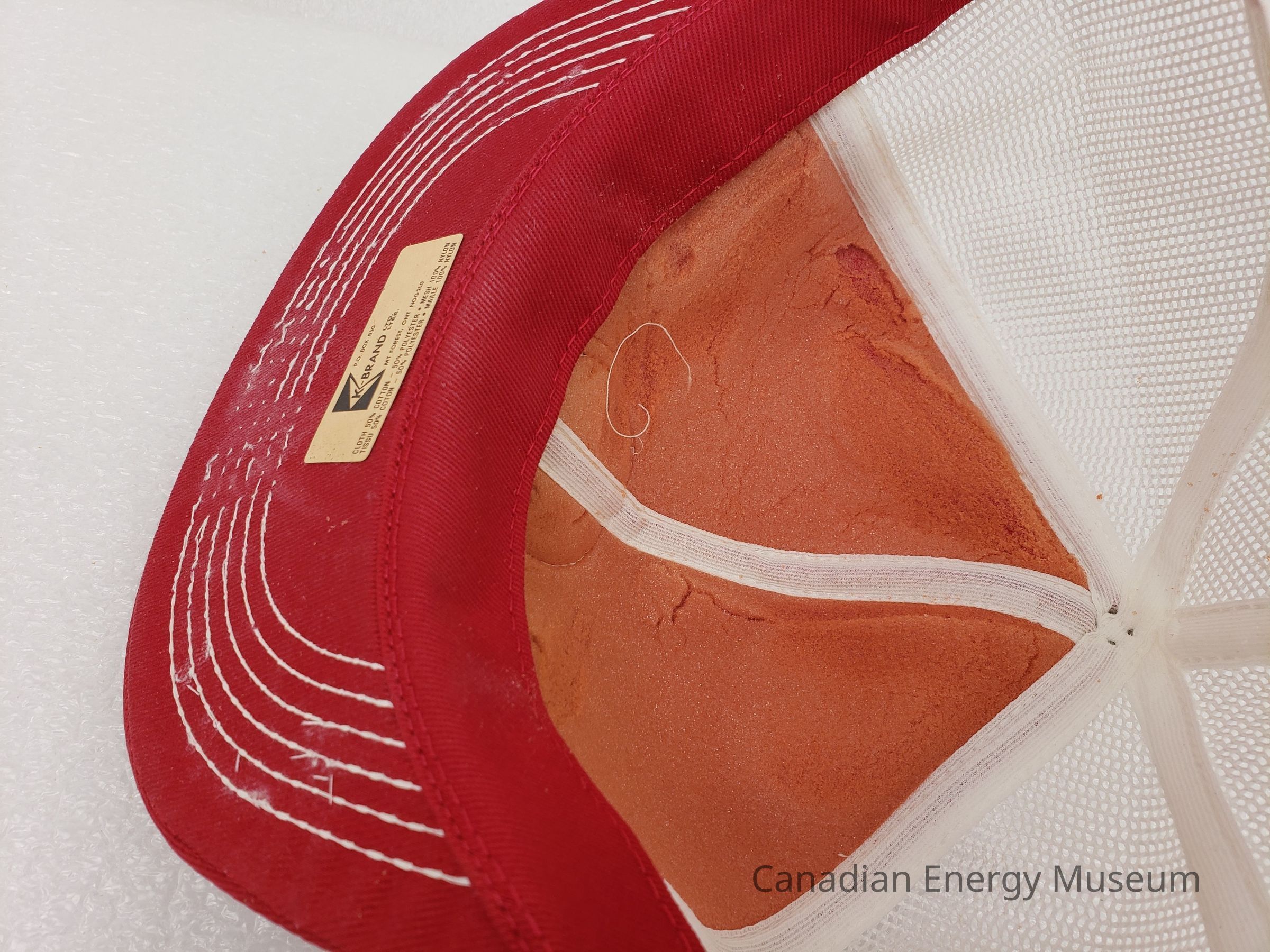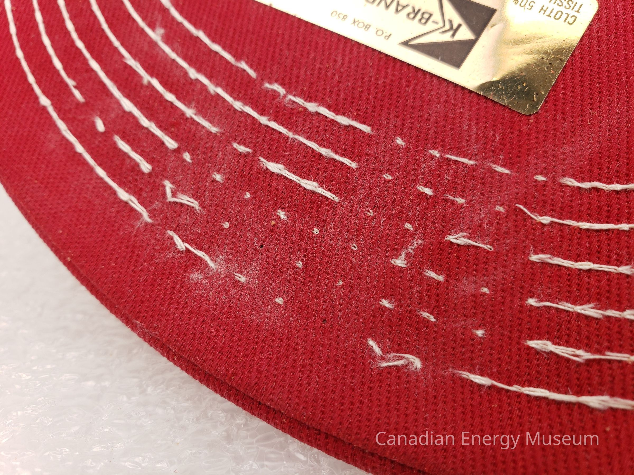 Crown Material: Fabric with foam backing, red with white stitching.