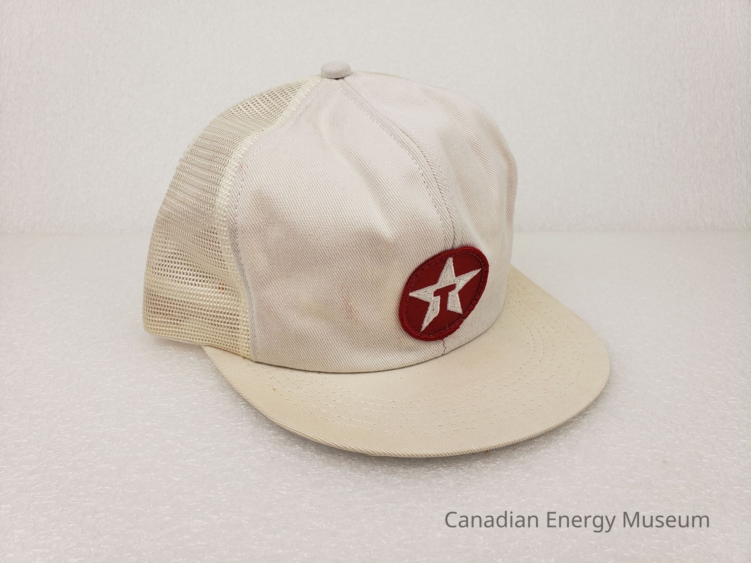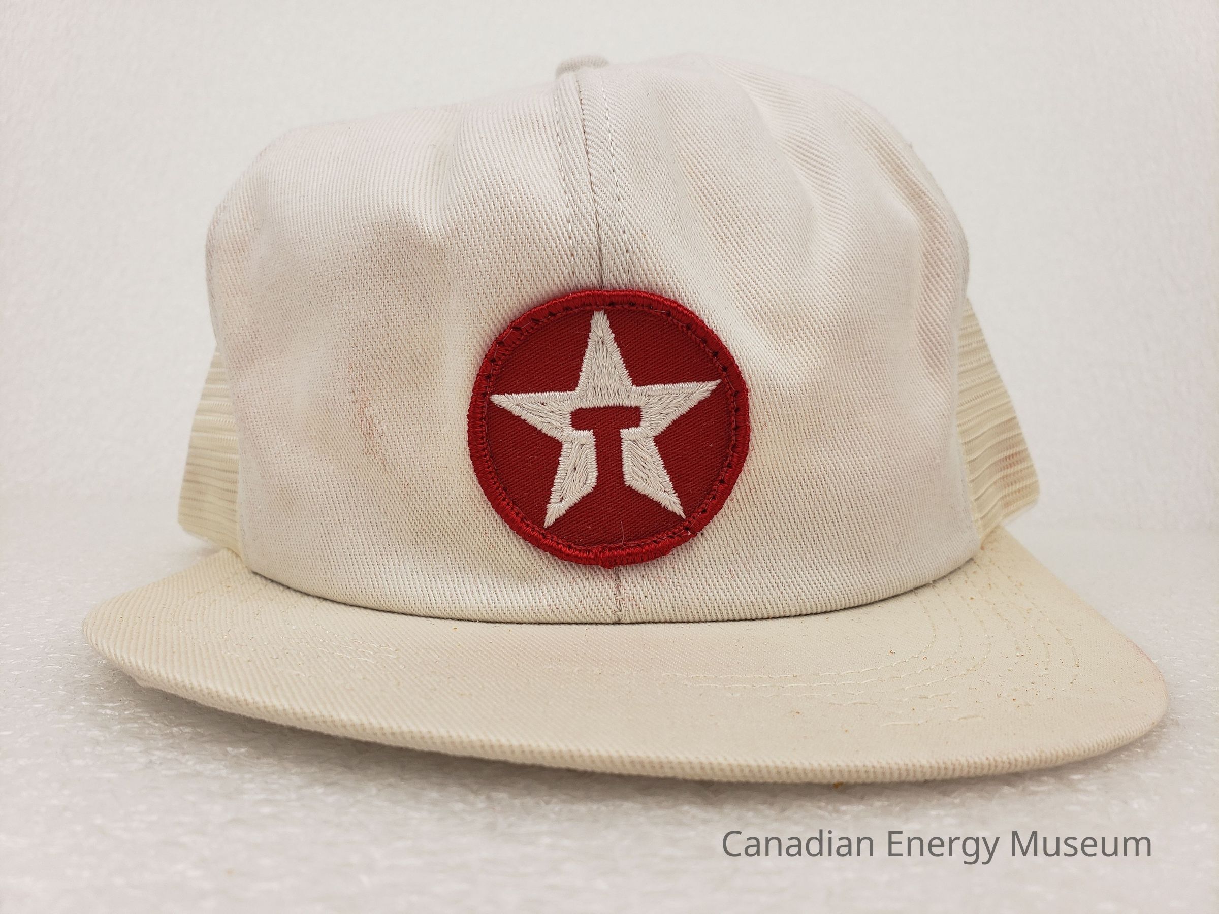 Textile, Cap, Hat, White, Red, Plastic, Accessory, Clothing, Oil, Oil Industry, Promotional Item, Trucker Cap, Patch, Embroidery, Texaco, Devil's DustDescription