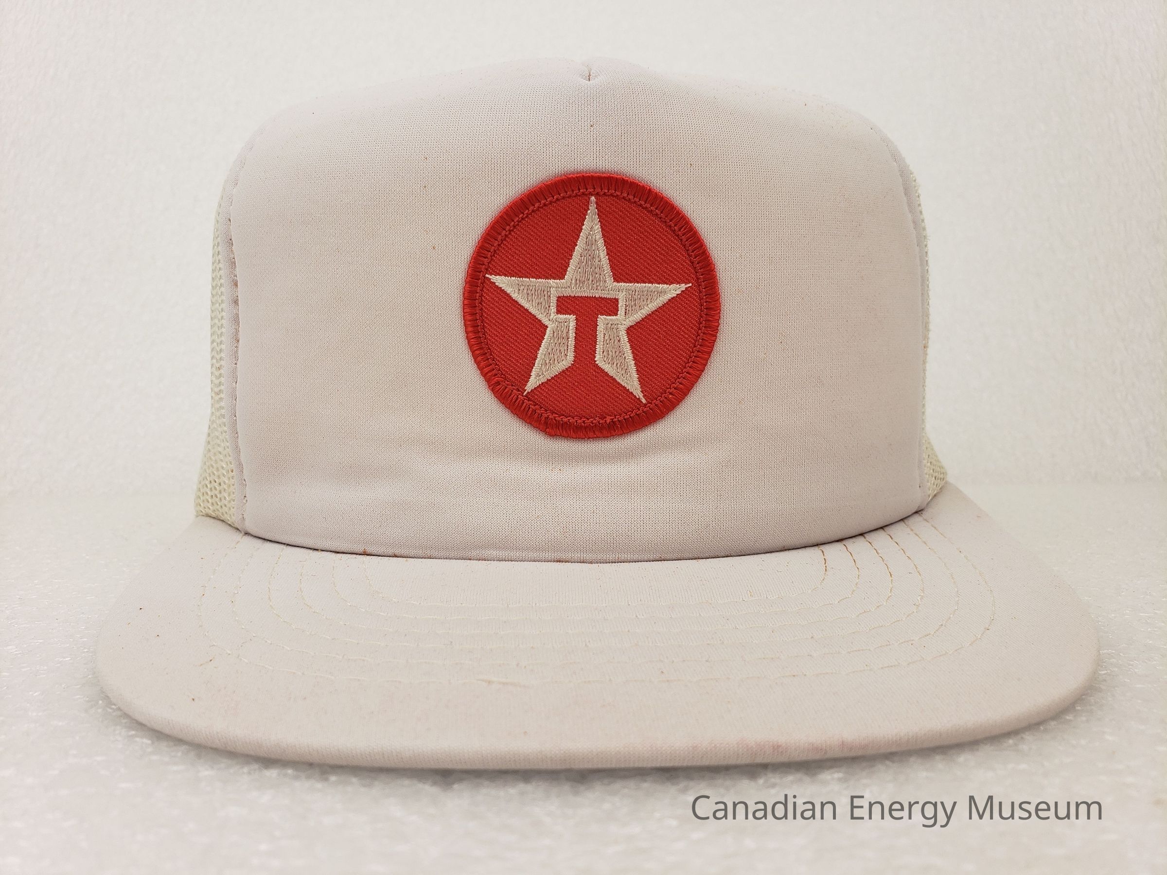 Textile, Cap, Hat, White, Red, Plastic, Accessory, Clothing, Oil, Oil Industry, Promotional Item, Trucker Cap, Patch, Embroidery, TexacoDescription
