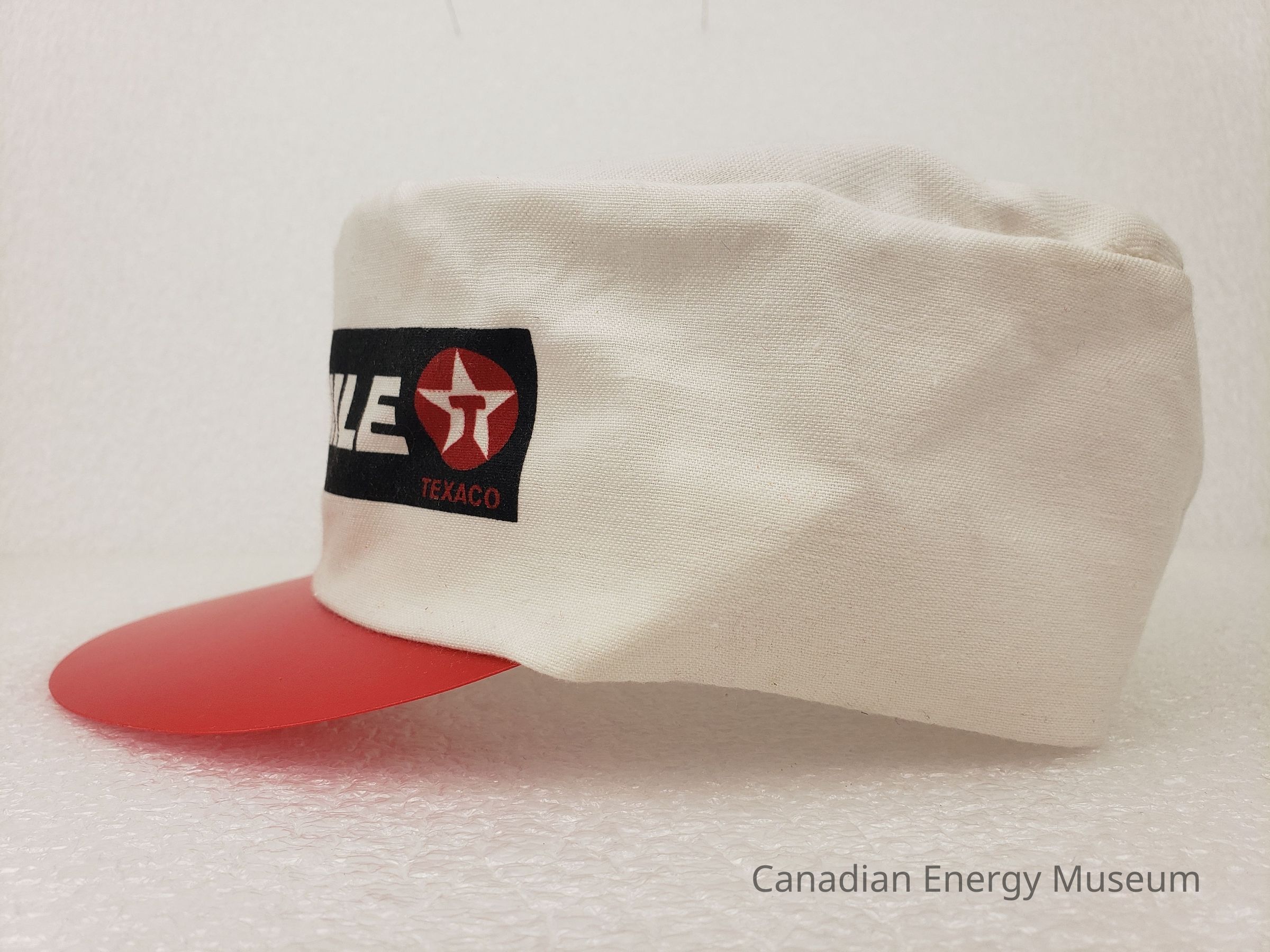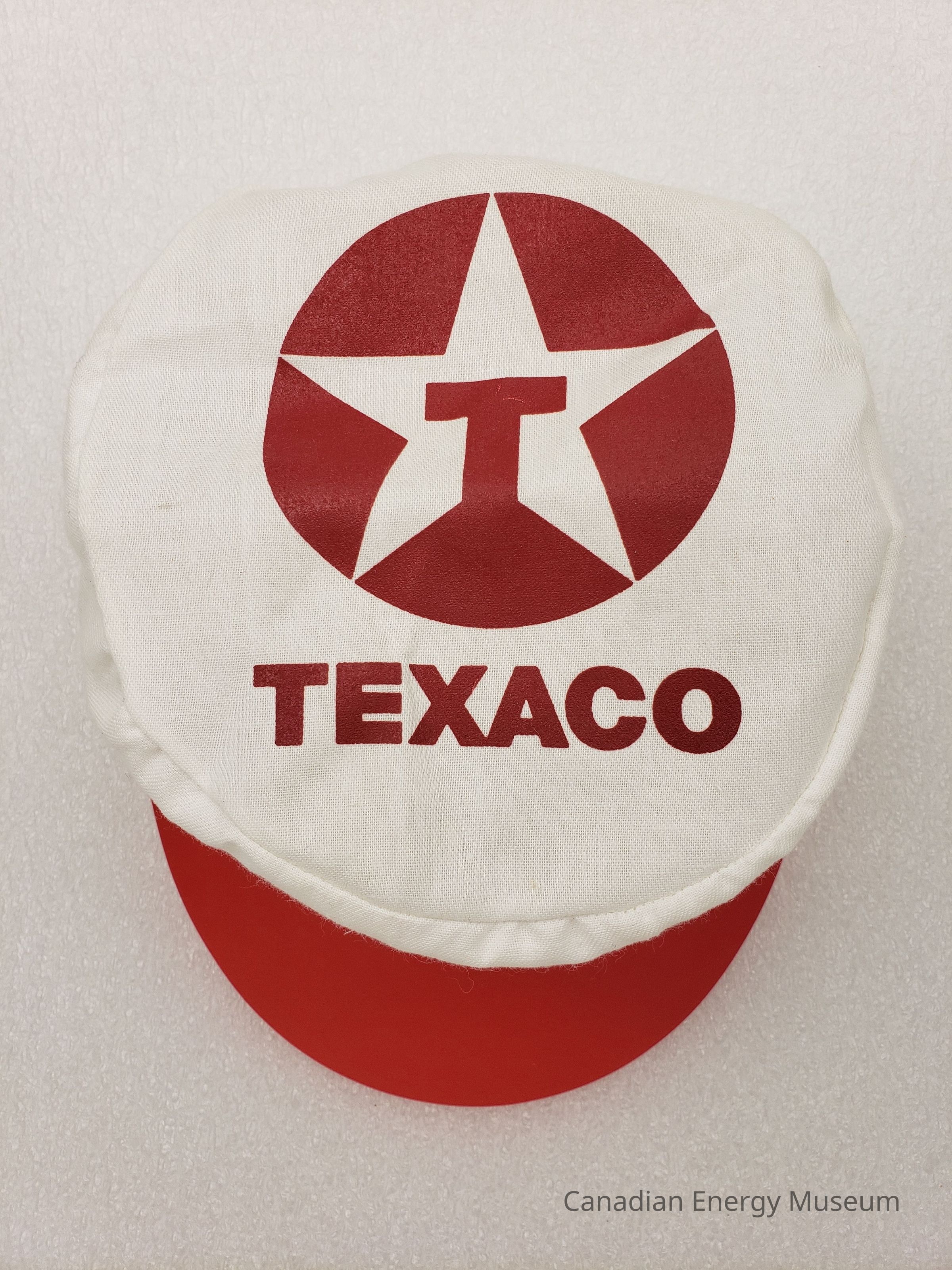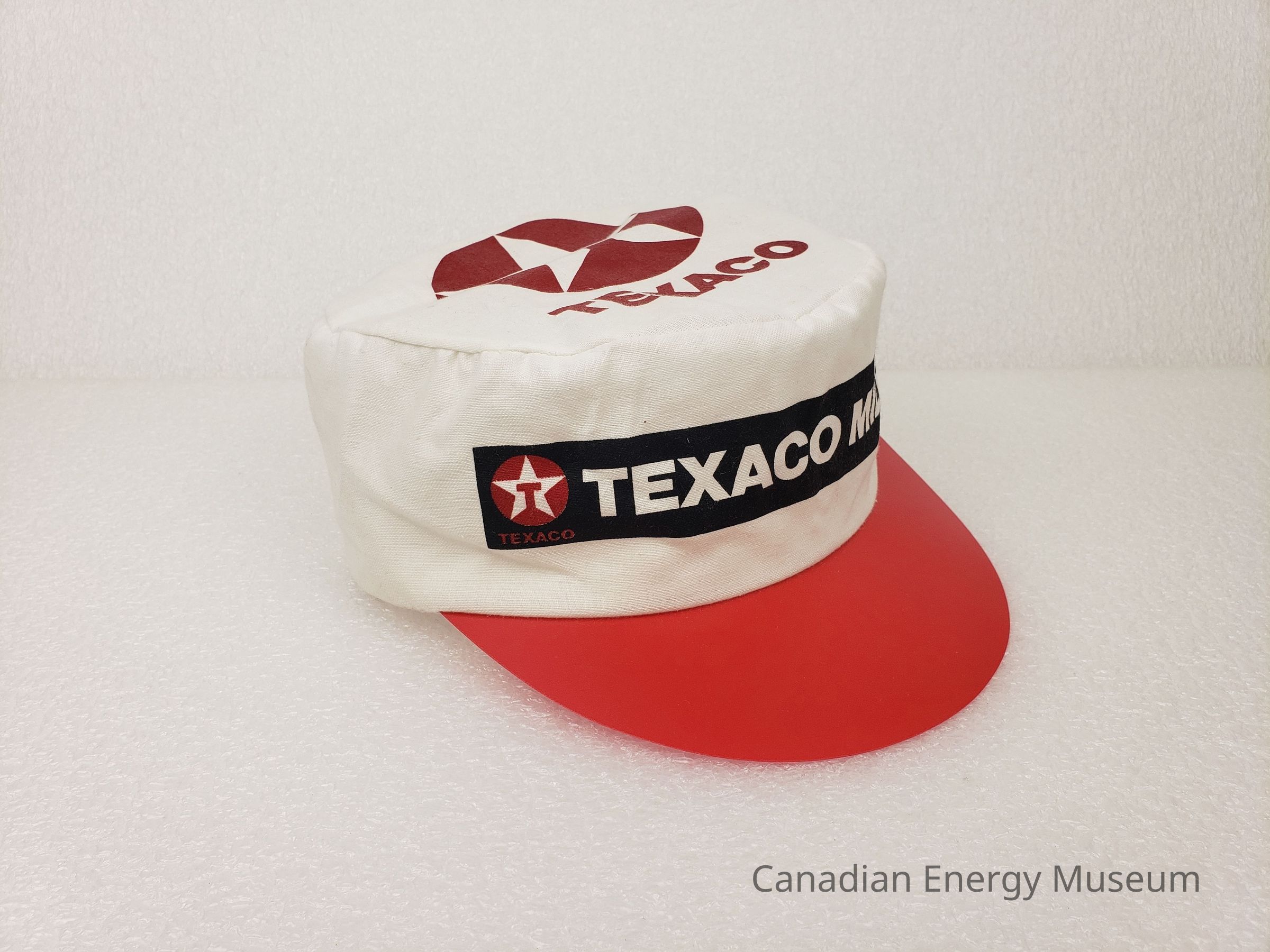 Accessory, Black, Clothing, Military Cap, Hat, Oil, Oil Industry, Promotional Item, Texaco, Plastic, Red, Textile, WhiteDescription