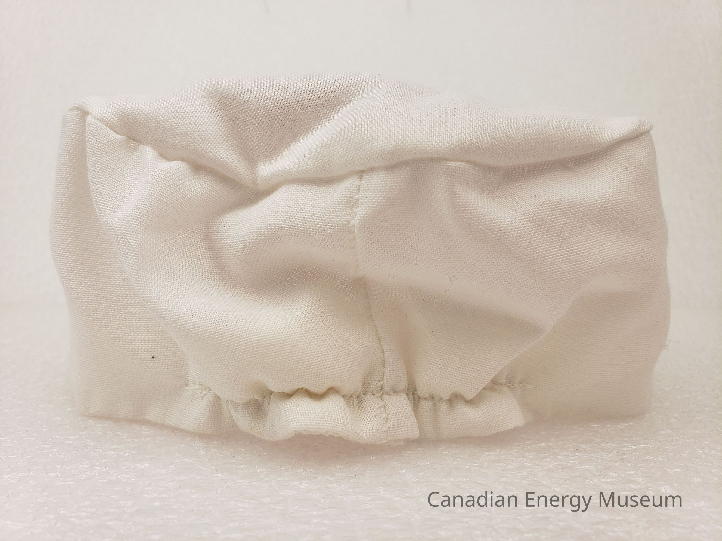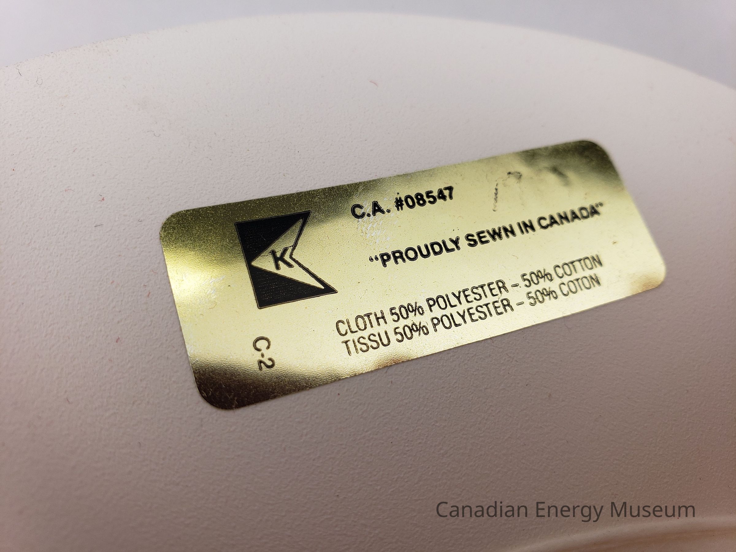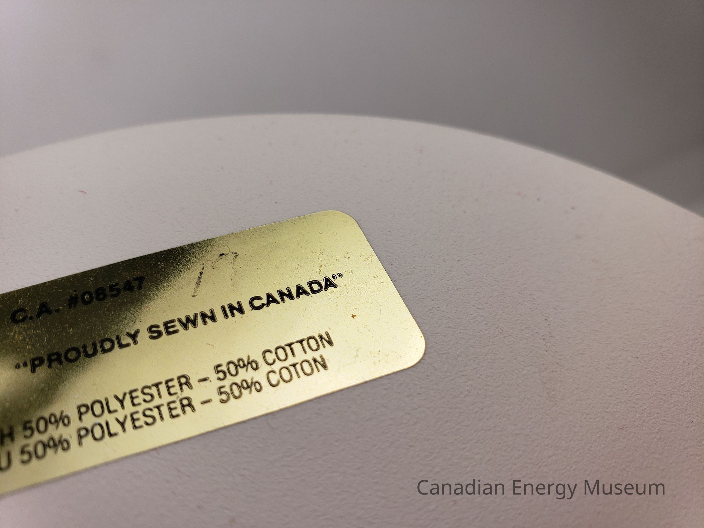 On the underside of the brim is a metallic gold maker's label. On the label, mostly only in the indent, is handwritten "1988".Collection