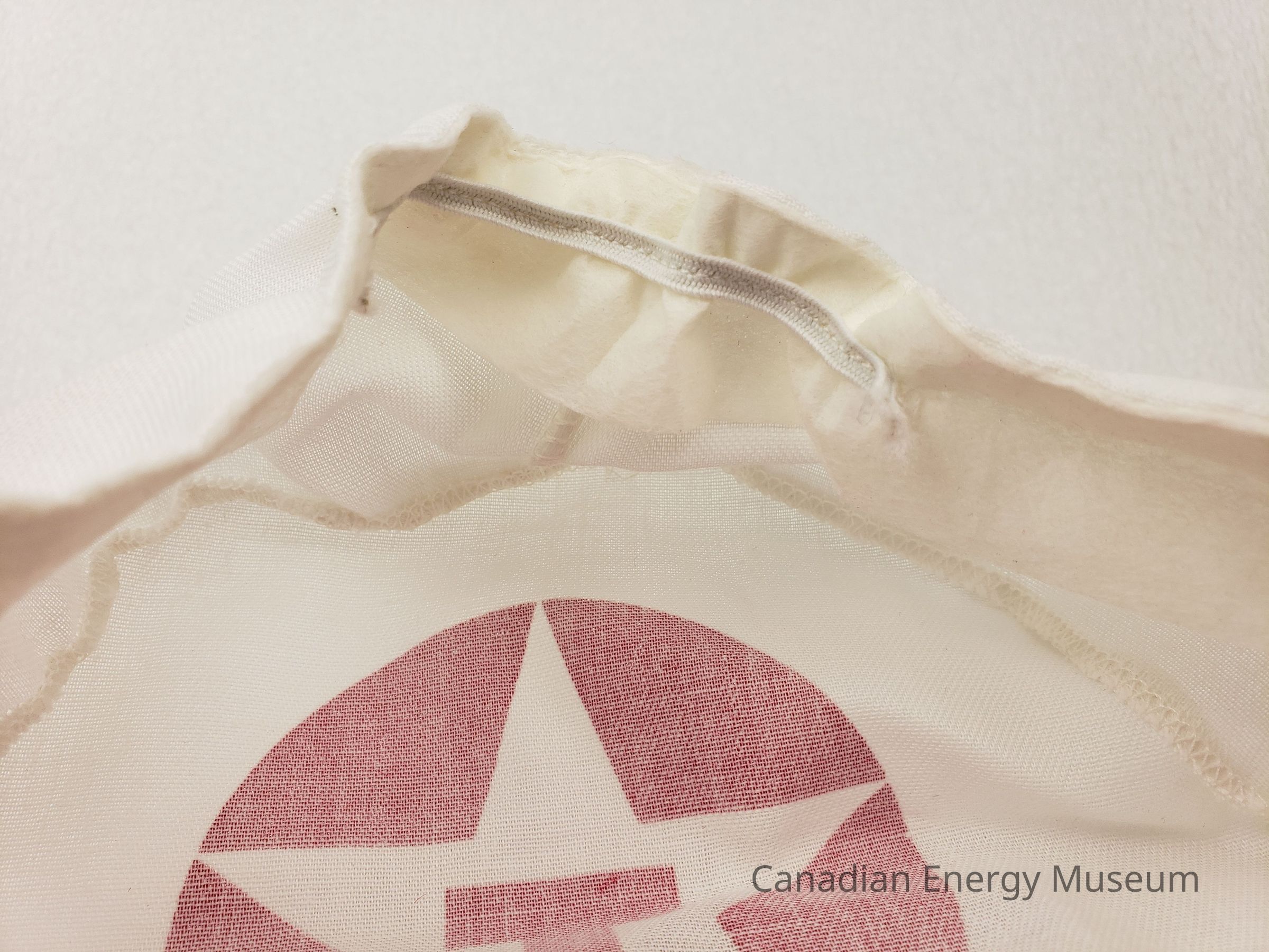Material: Linen fabric, thin, white with red print.