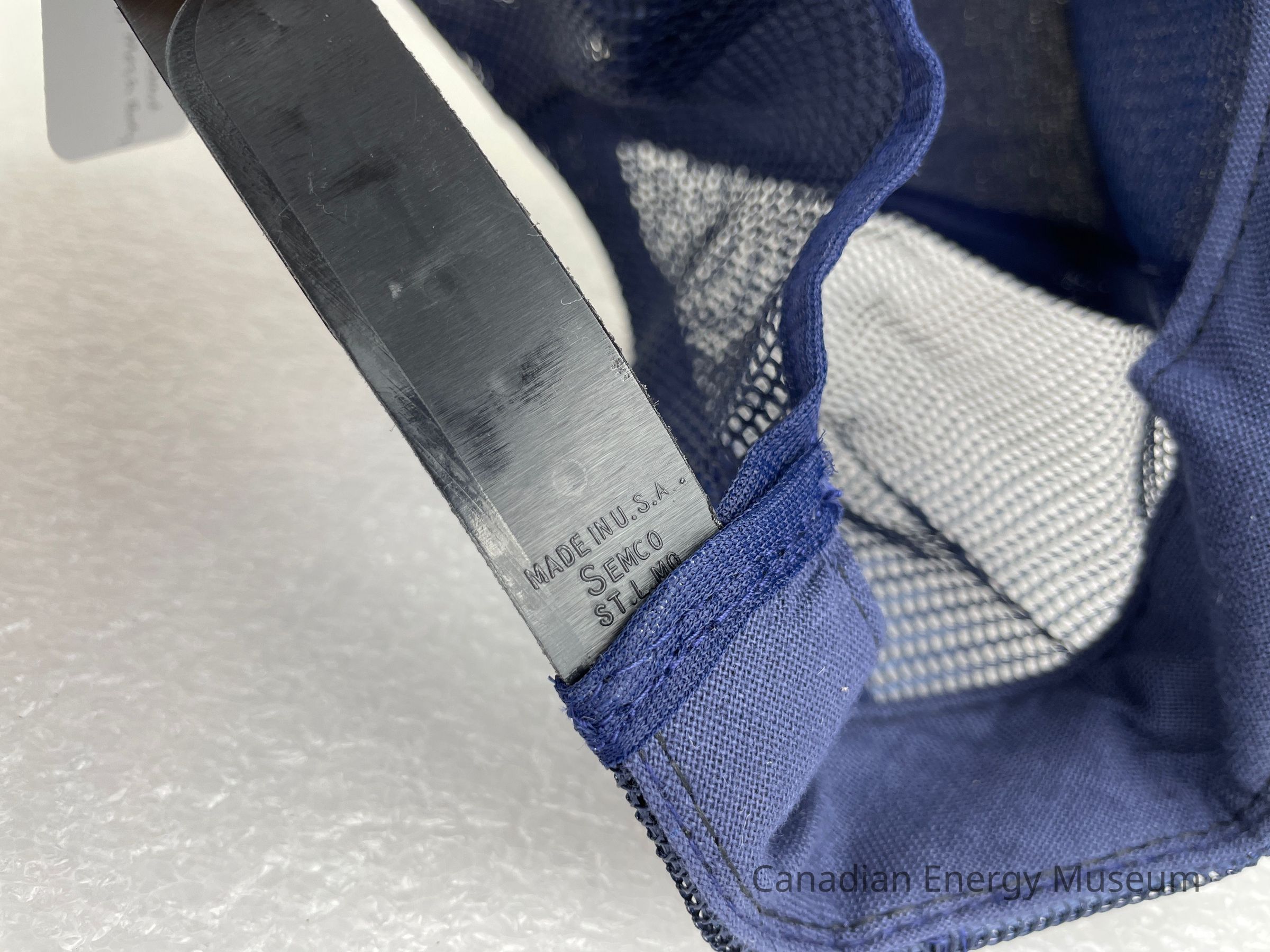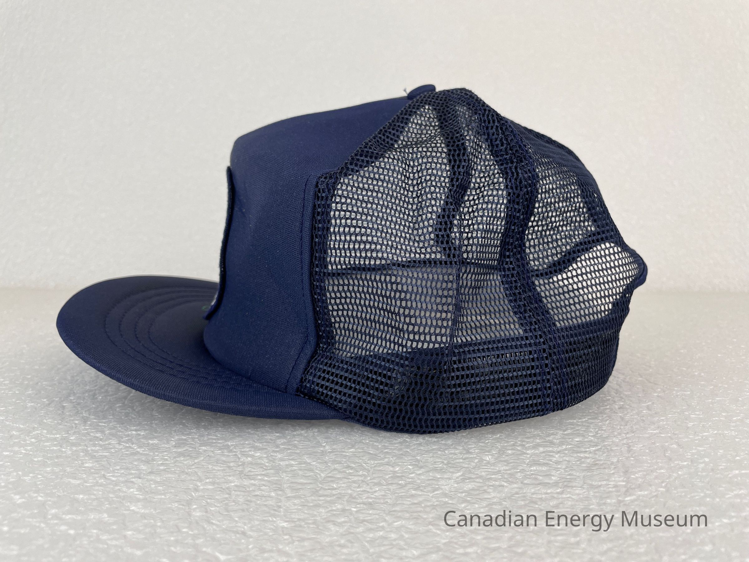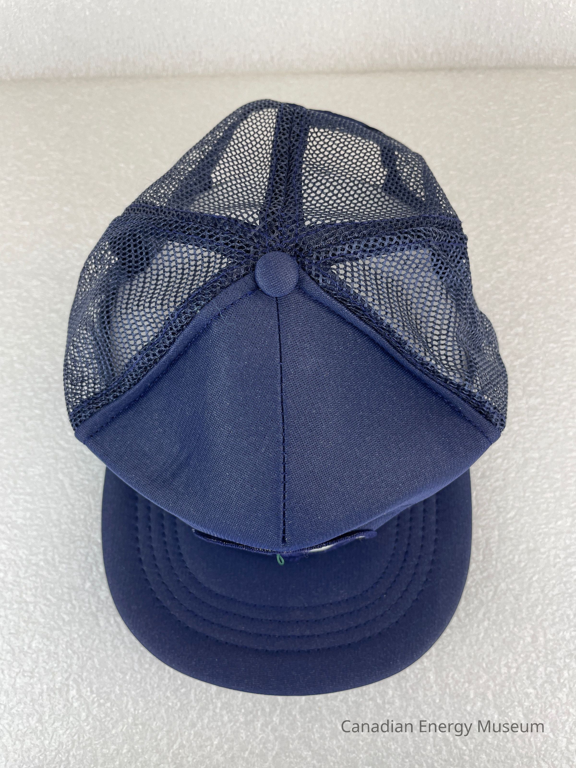 Crown Material: Foam backing with fabric outer, navy with navy stitching.