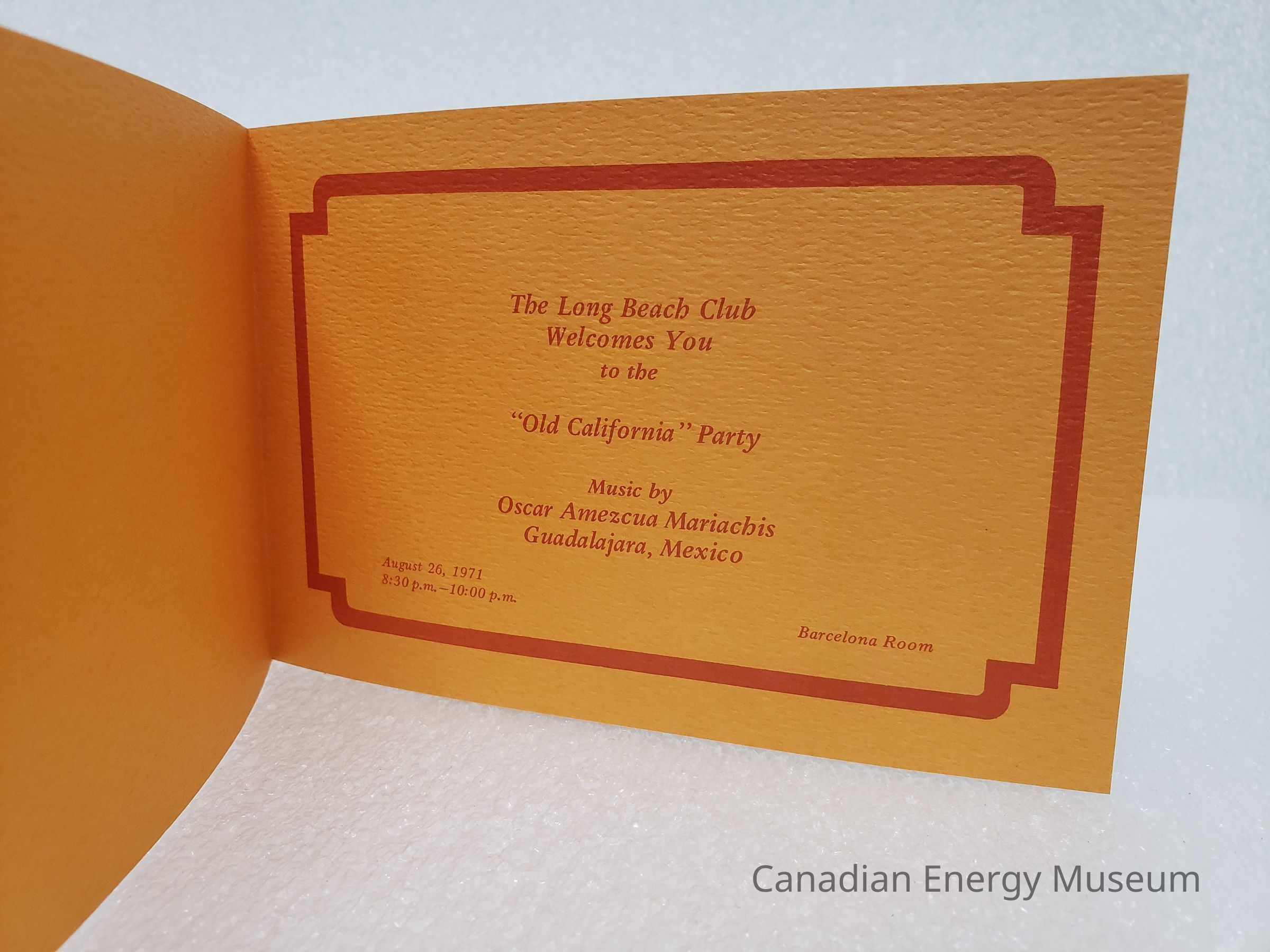 [Card] Old California Party, Long Beach Club, Orange Yellow, 26 August, 1971Entry/Object ID