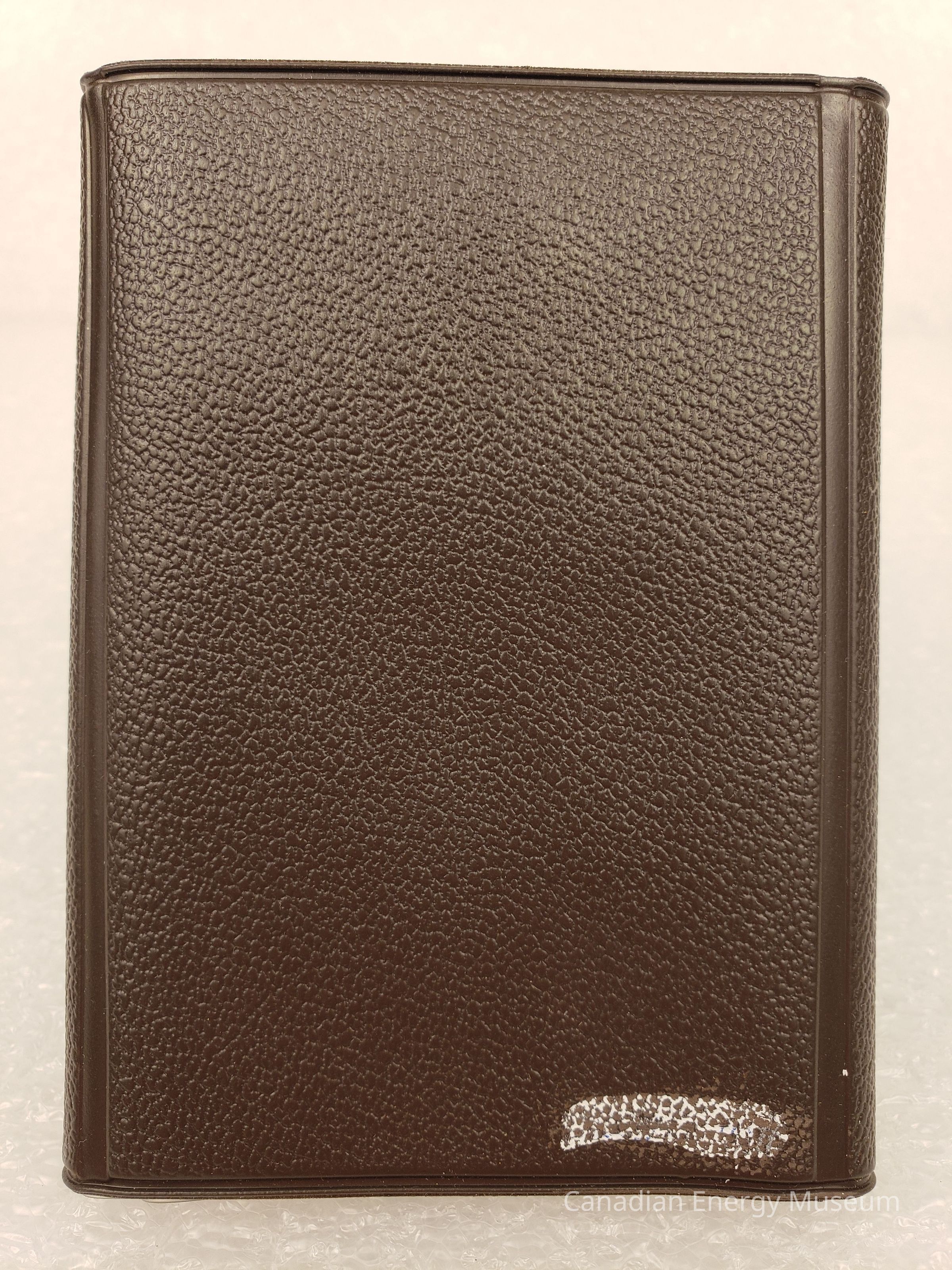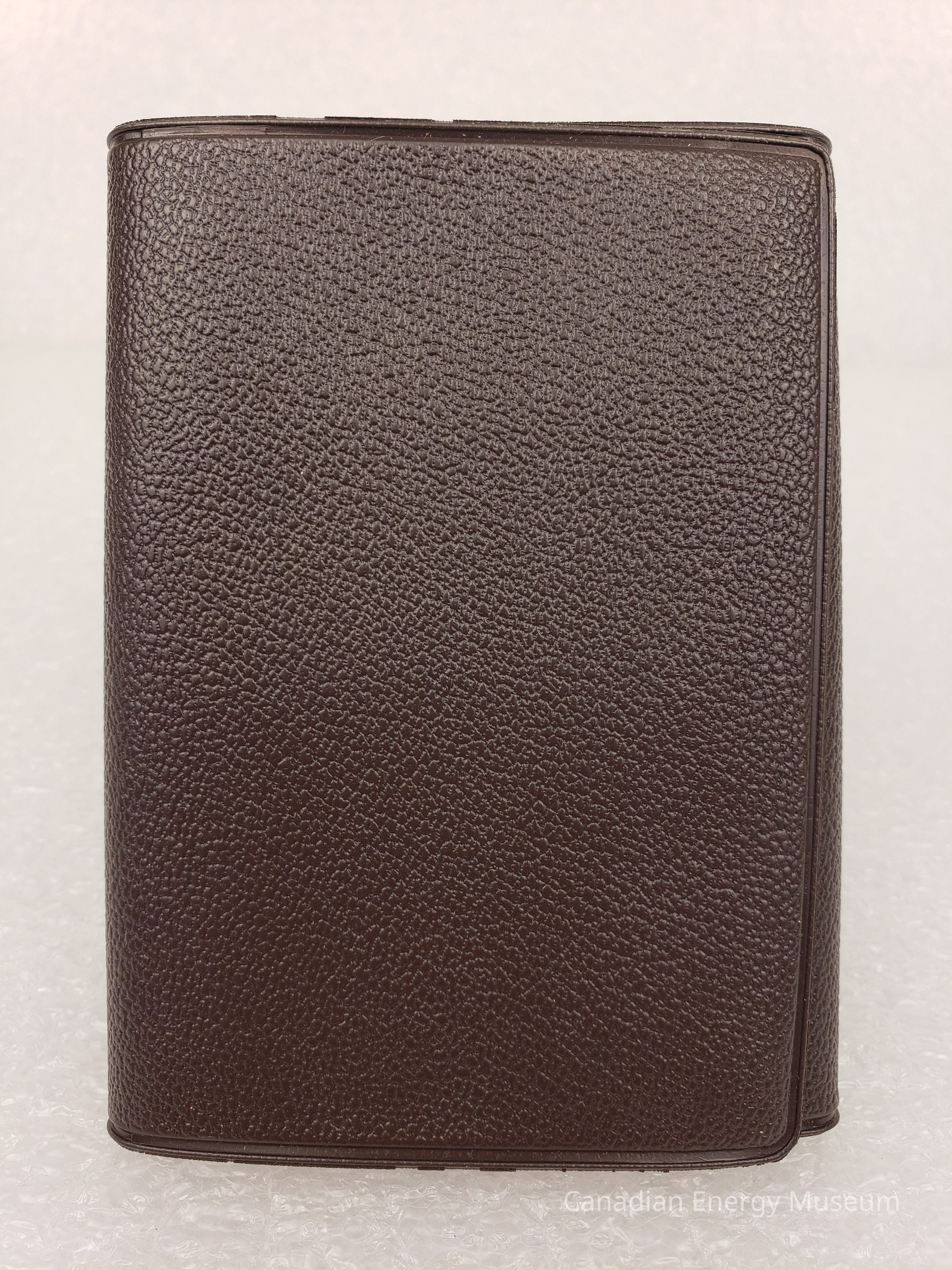 Cover Material: Plastic, faux leather texture, brown with gold-foil print.