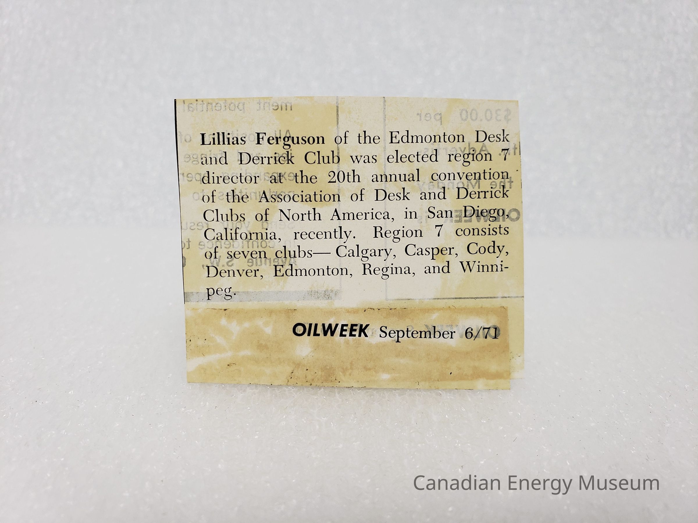 [Clipping] Lillias Ferguson Election, Oilweek, 6 September, 1971Entry/Object ID