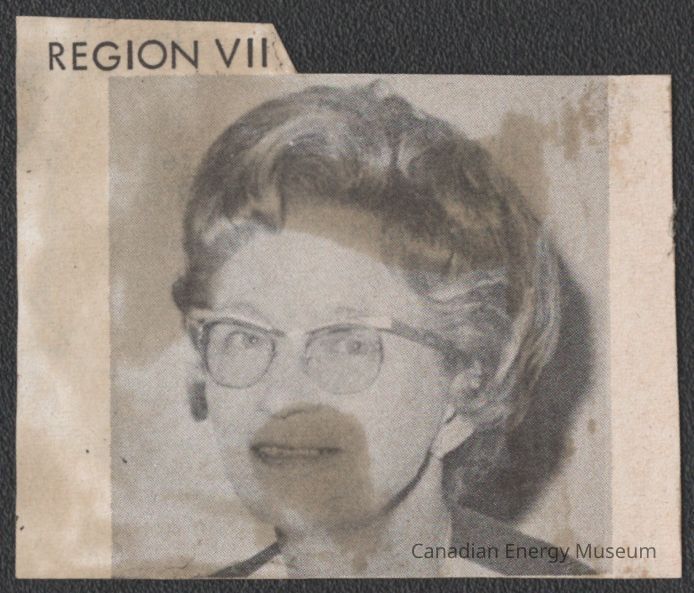 A small-sized clipping of a photograph of Lillias Ferguson (ADDC Region VII Vice President), from The Roughneck periodical, Vol.19 No.11, September 1971.