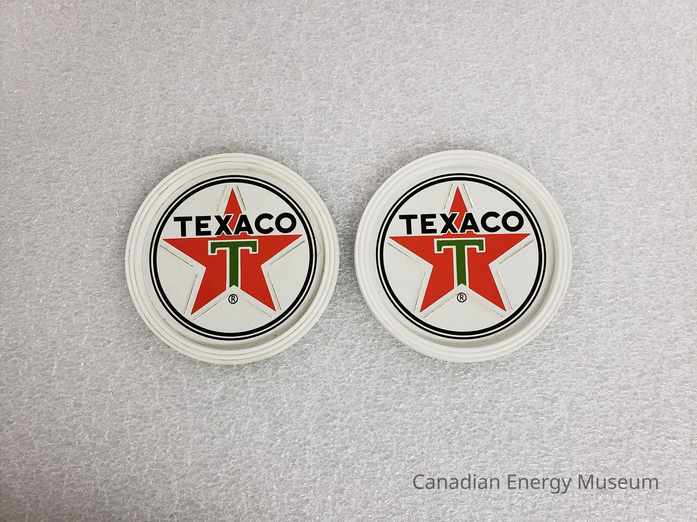 Coasters, Drinkware, Texaco, Plastic, Metal, Gold, RedDescription
