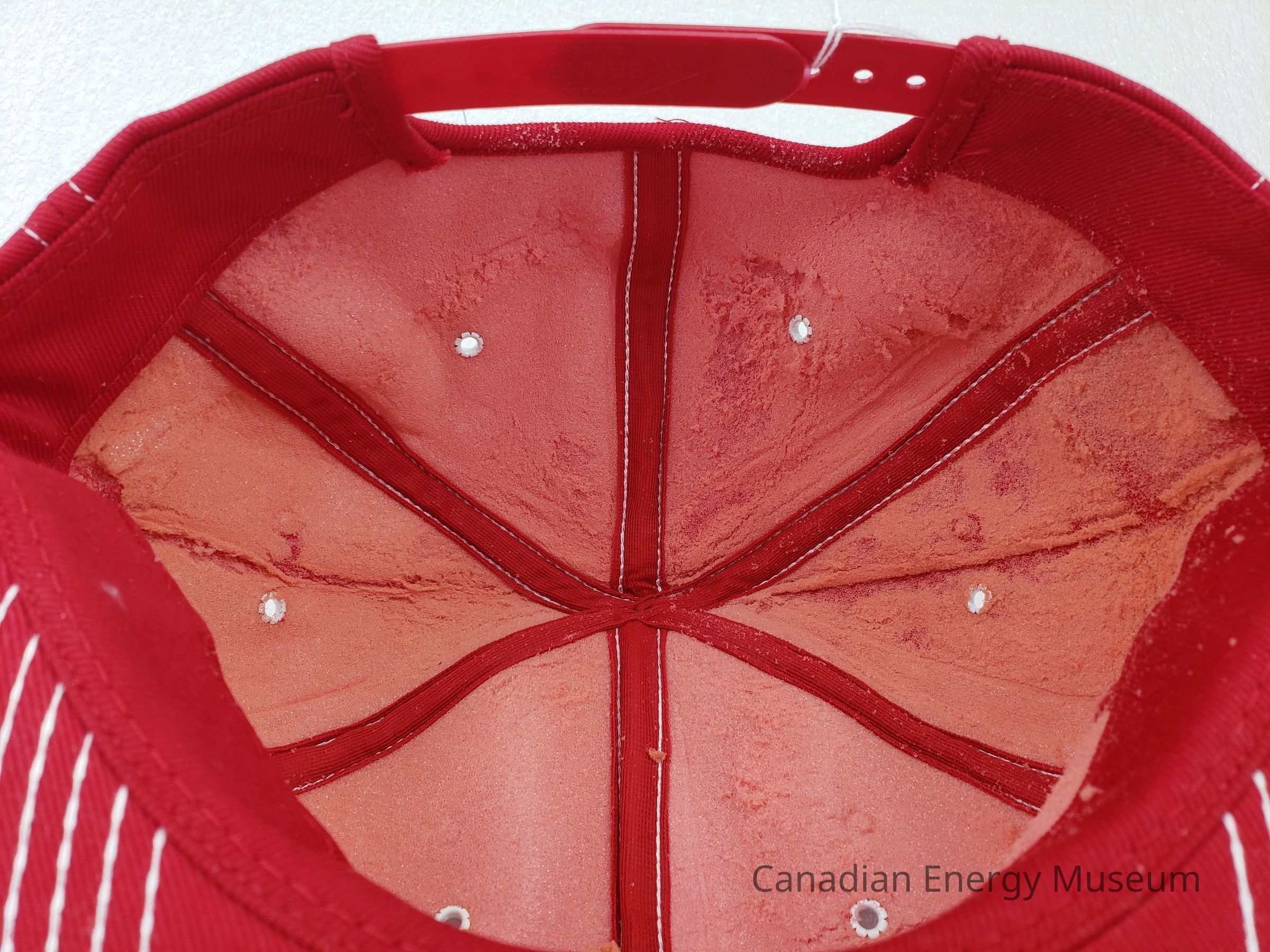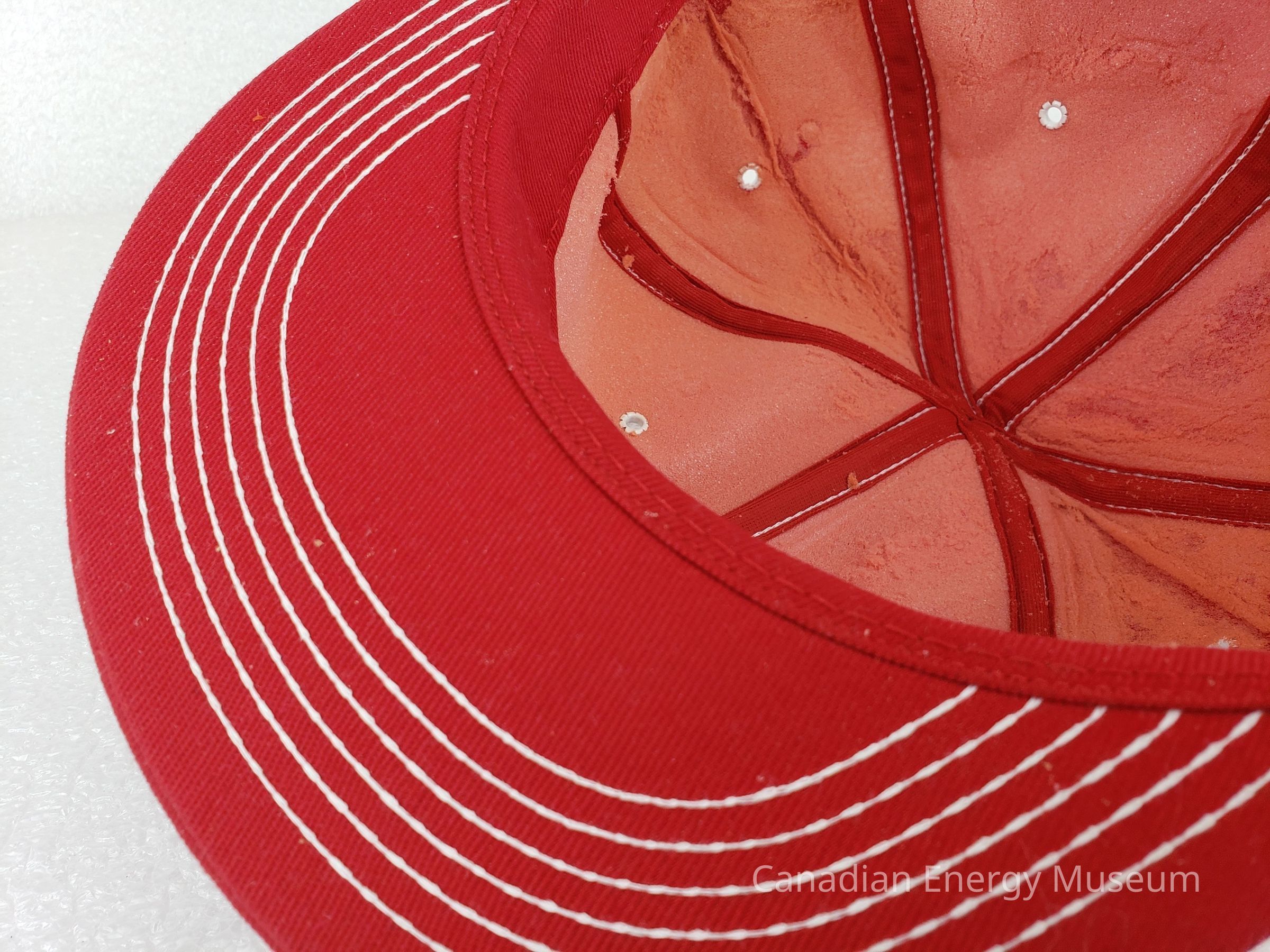 Crown Material: Foam backing with fabric outer, red with white stitching.