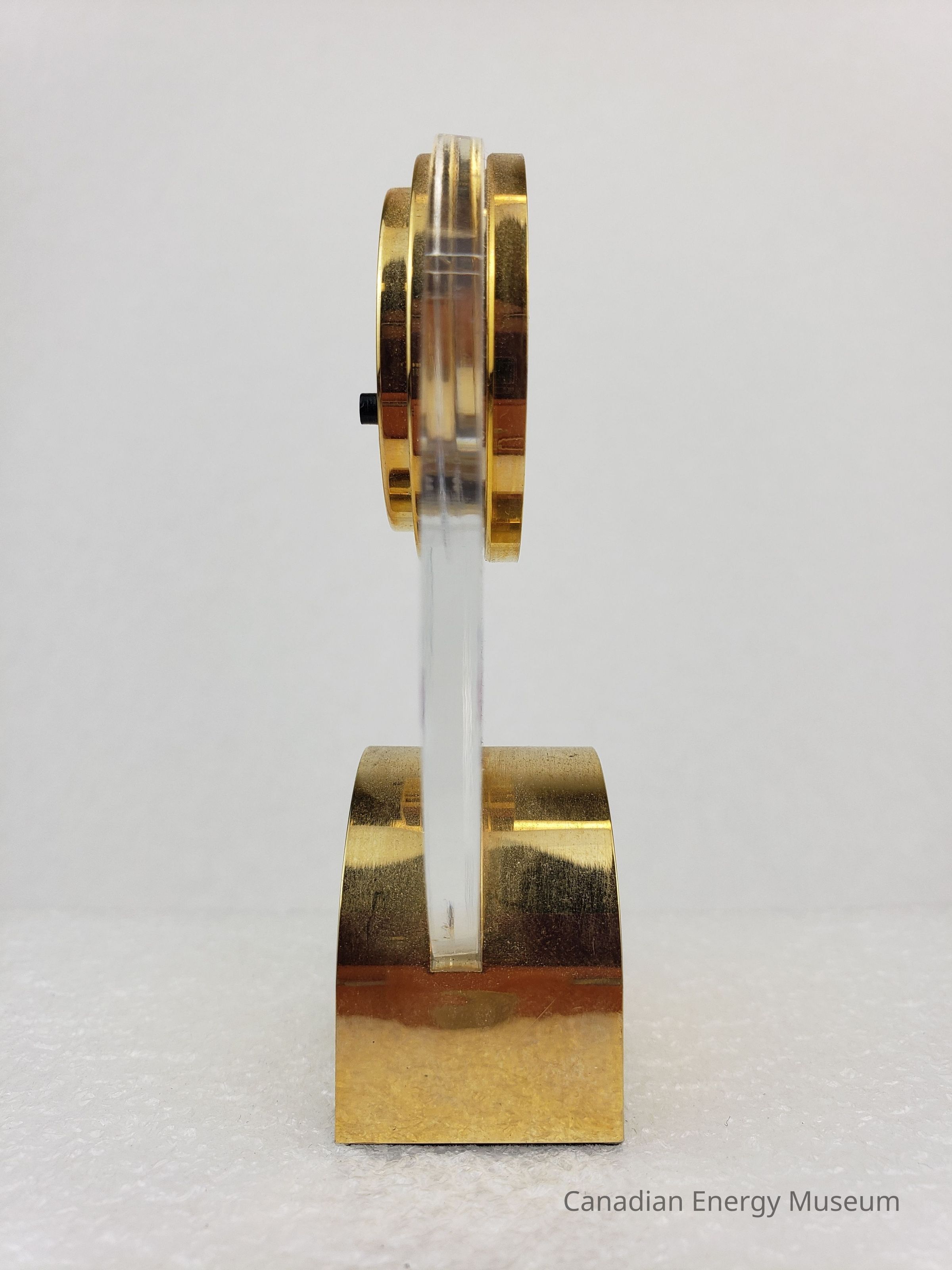 Oil, Oil Industry, Promotional Item, Desk Ornament, Clock, Plastic, Digital Clock, Esso, Imperial Oil Ltd., Blue, Red, GoldDescription