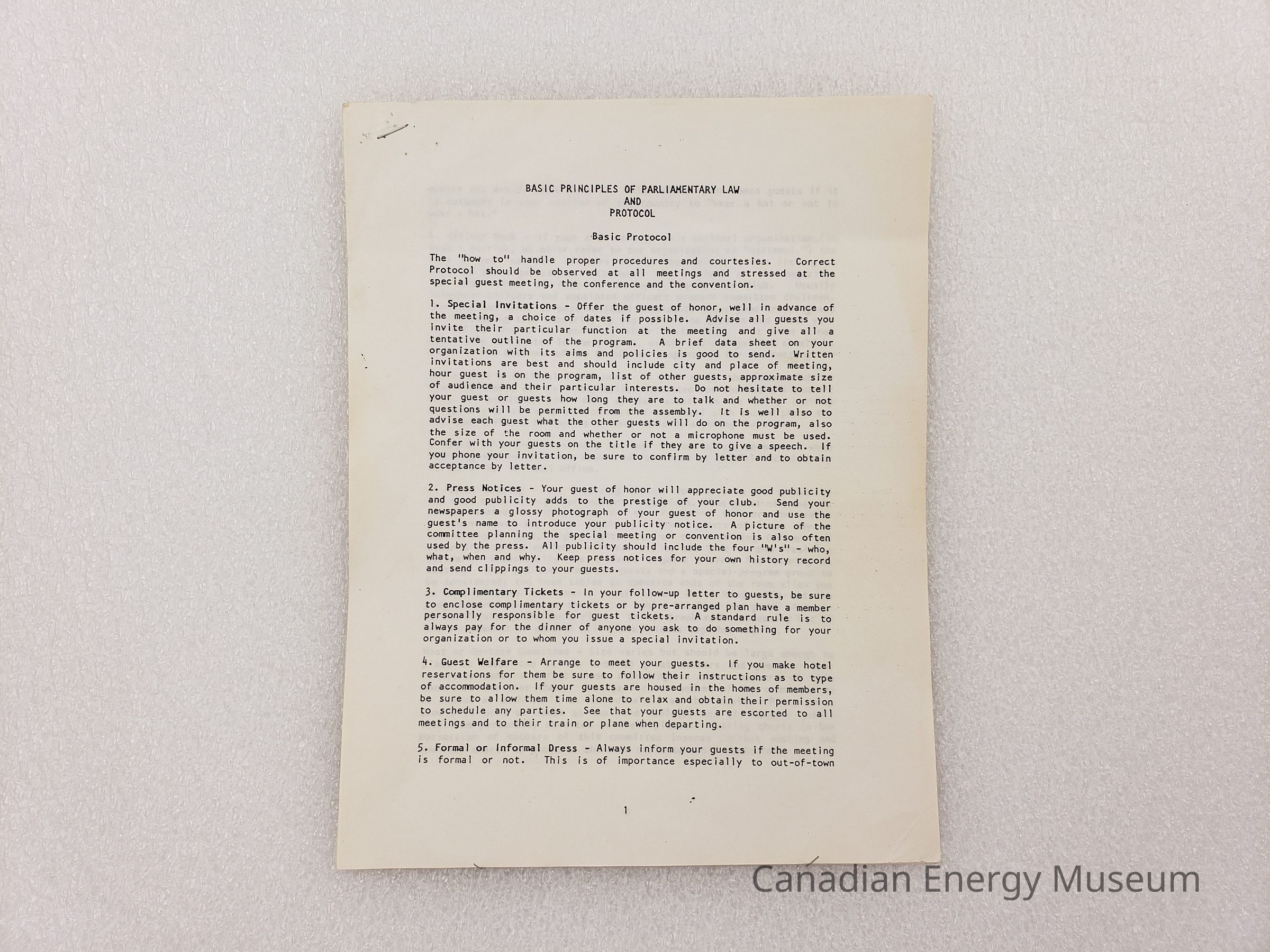[Document] "Basic Principles of Parliamentary Law and Protocol: Basic Protocol", Association of Desk and Derrick Clubs, 13 pages, UndatedEntry/Object ID