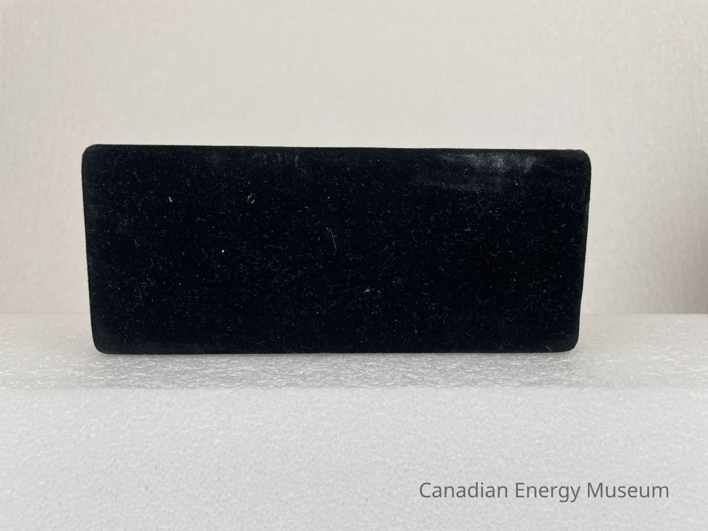 The case is a long, rectangular, black, velvet case. Along the edge of the bottom case is a gold band. The interior of the lid features gold text at the bottom right corner reading, "BANKERS". The bottom interior of the case is flat and has four elastic loops; two for each of the two stationary tools.Collection