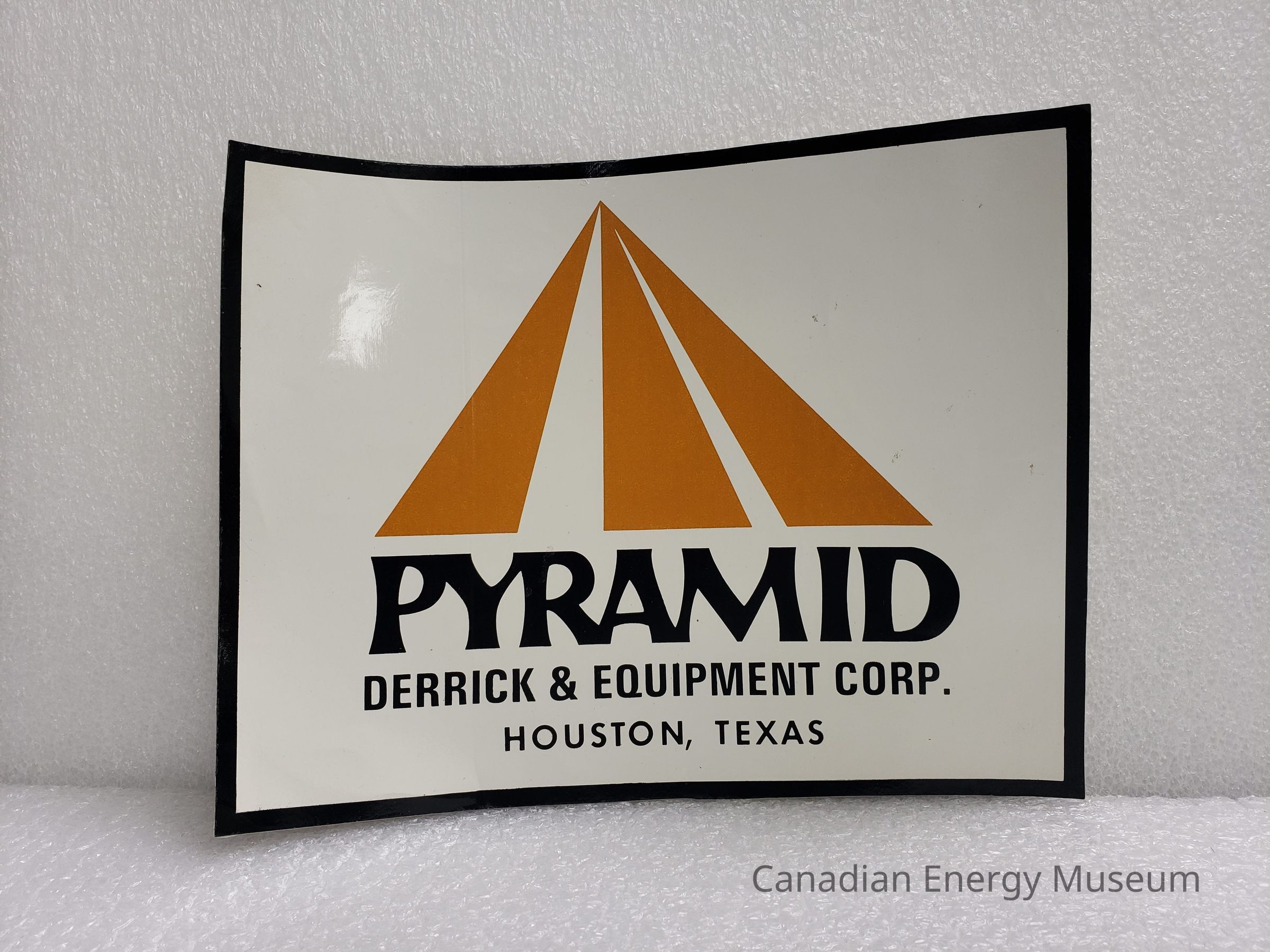 [Sticker] Pyramid Derrick & Equipment Corp., Houston Texas, Rect.-Square, Large, White Black MustardEntry/Object ID
