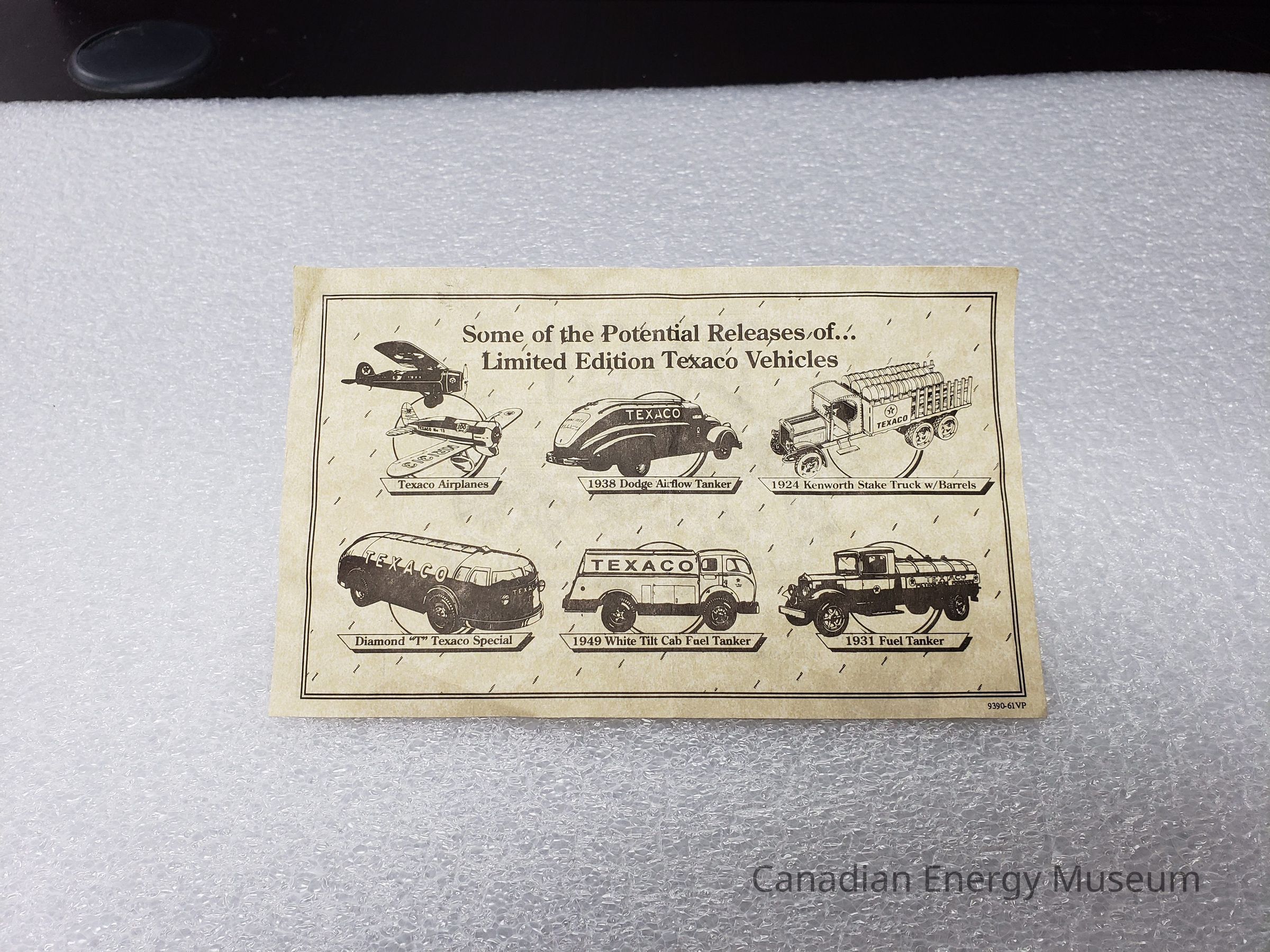 Side B: Six illustrations of other Texaco vehicles in the series. reads: "Some of the Potential Releases of...Limited Edition Texaco Vehicles".Collection
