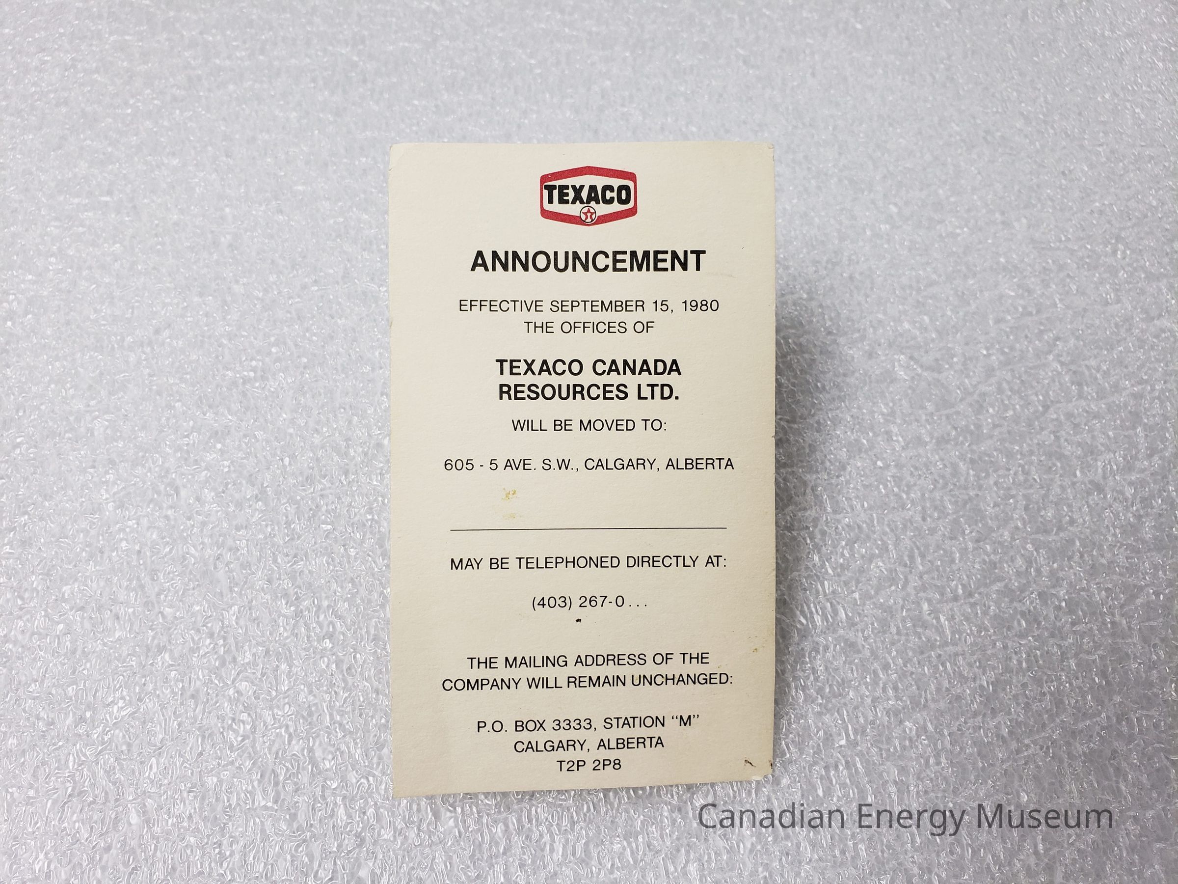 Paper Ephemera, Texaco, Flyer, Notice, Announcement, 1980s, Paper, Texaco Canada, Canada, Alberta, Calgary, Texaco Canada Resources Ltd., RedDescription