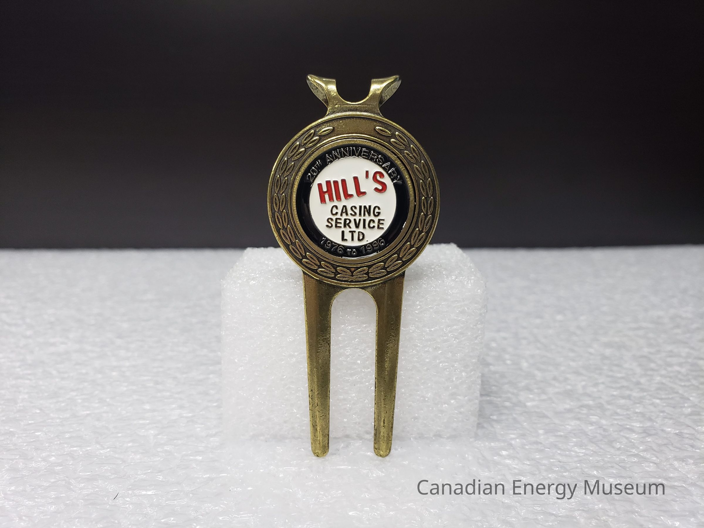 A Golf Divot Tool branded to Hill's Casing Service LTD.
