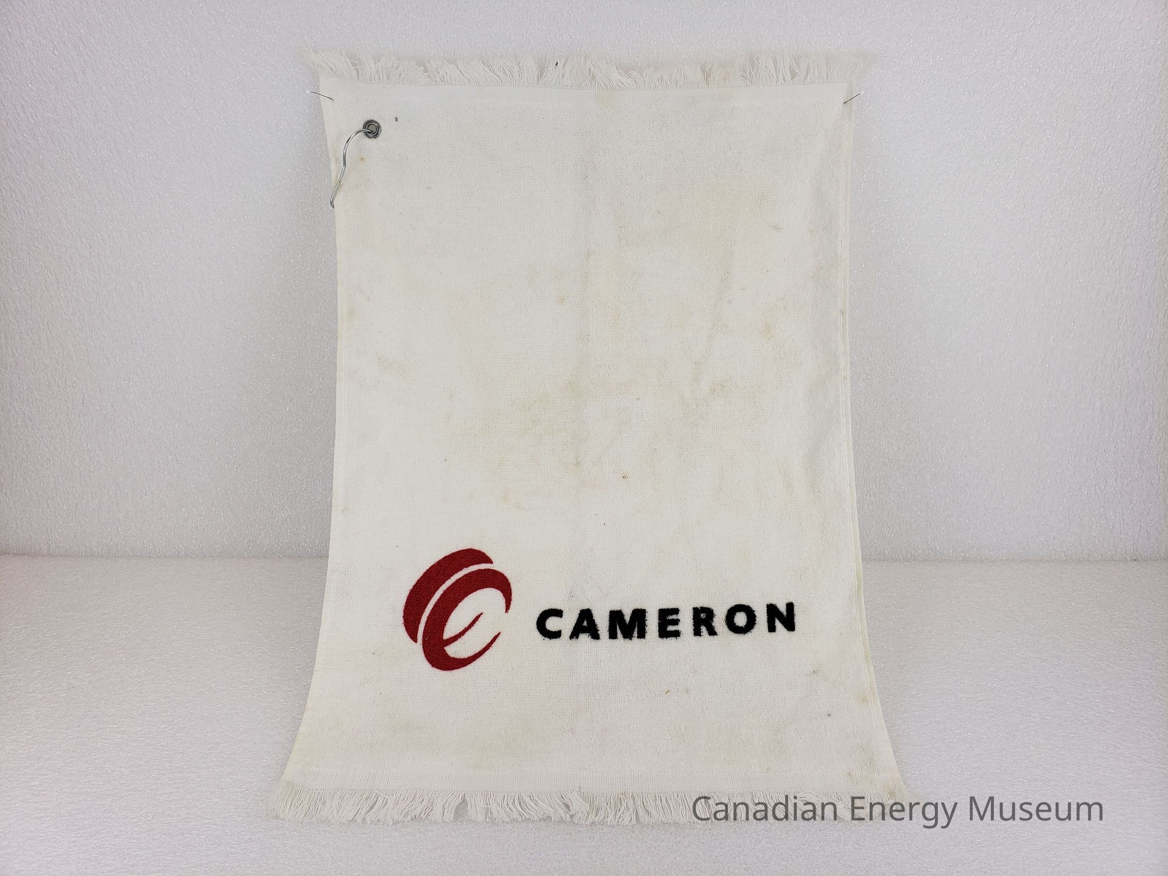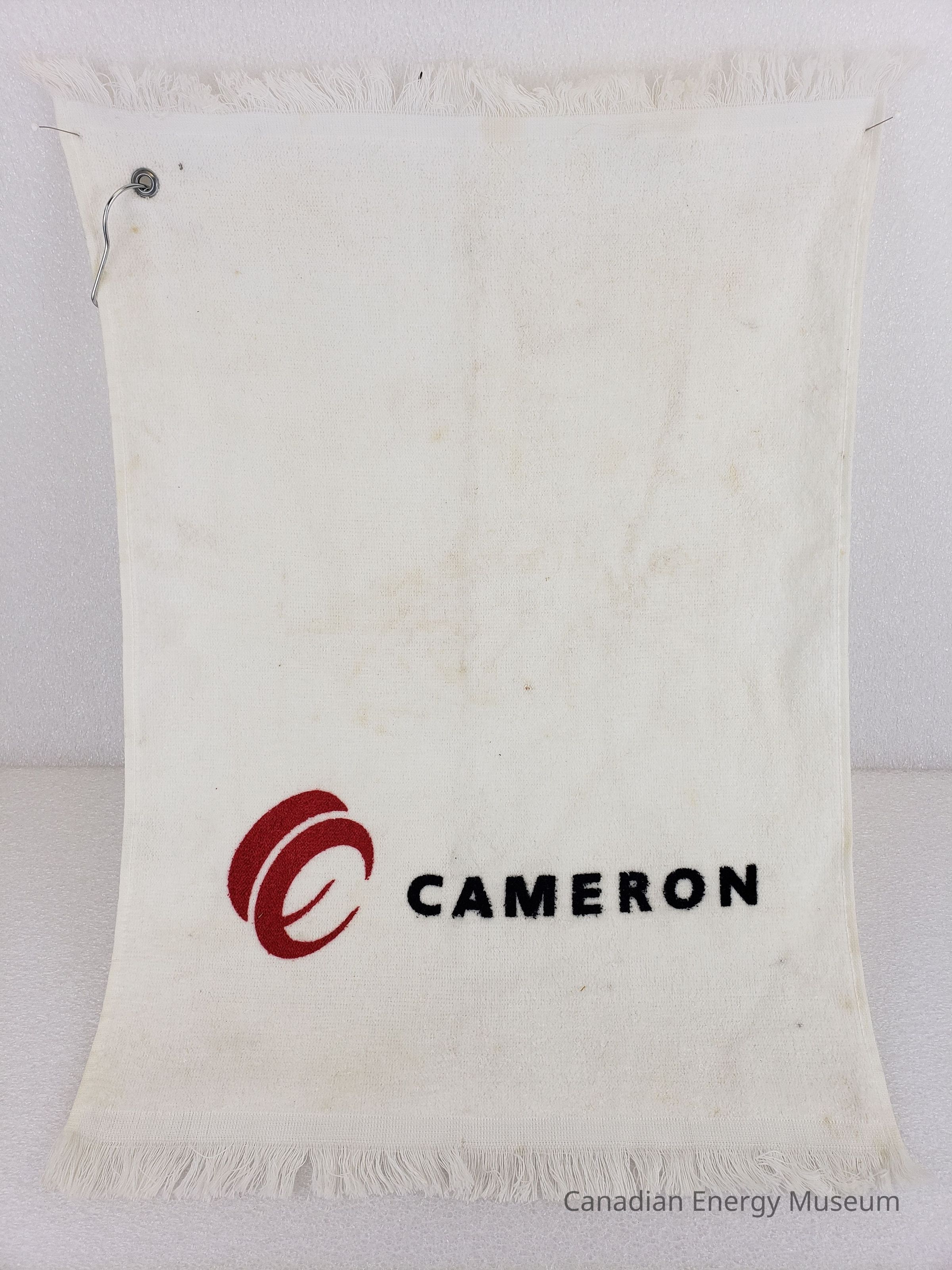 A golf towel, branded to Cameron.