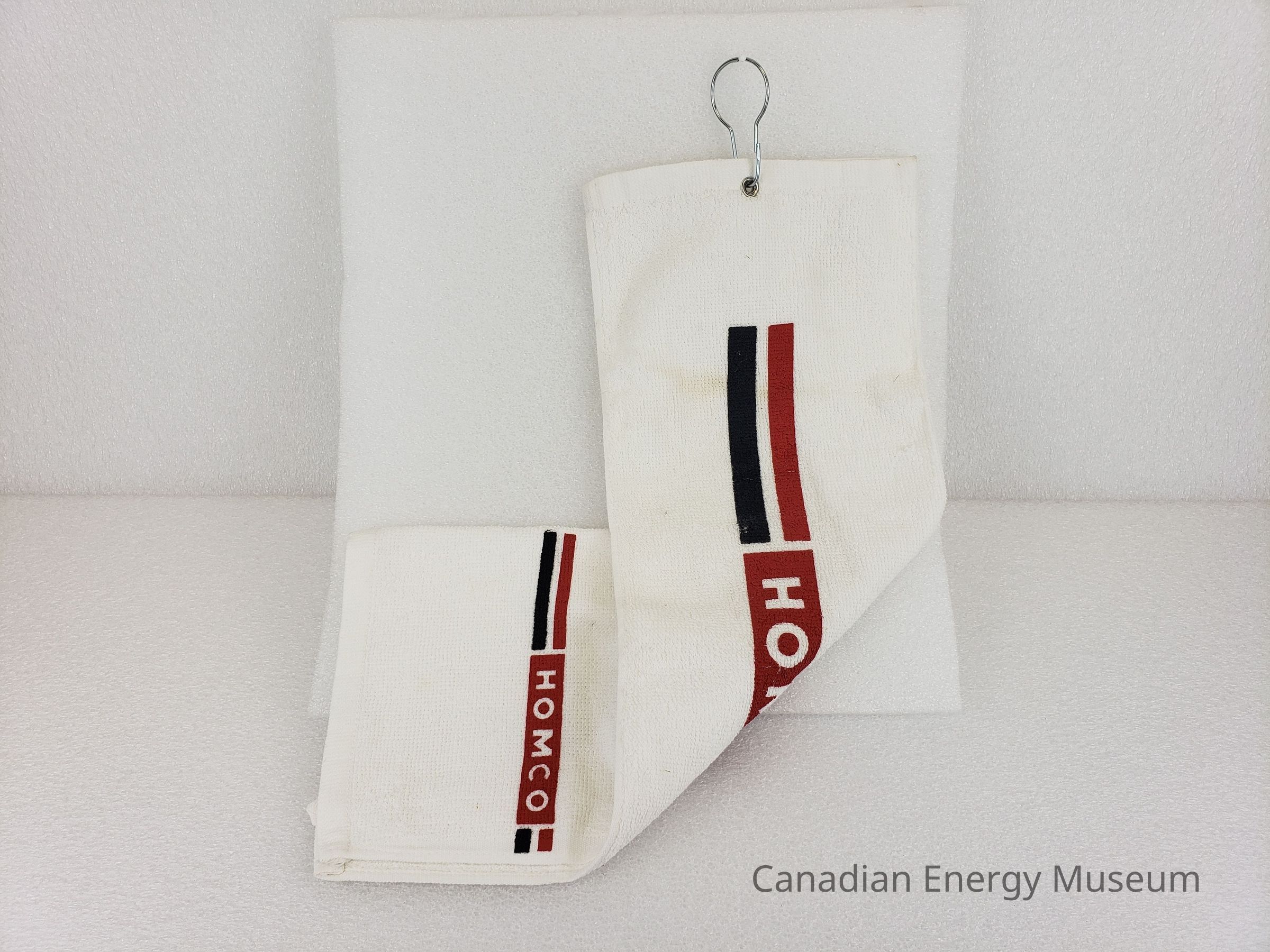 Terry Cloth, Golf, Golf Towel, Sport, Sport Accessory, Sport Equipment, Homco International Ltd., Homco, Houston Oil Field Material Company Inc., Red, Black, White, Metal, CottonDescription