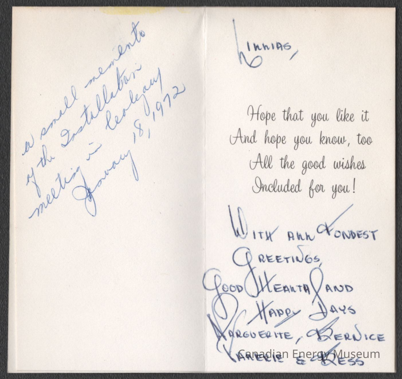[Greeting Card] "Something for You", To Lillias Ferguson, Association of Desk and Derrick Clubs, Tulsa Oklahoma, September, 1972Entry/Object ID