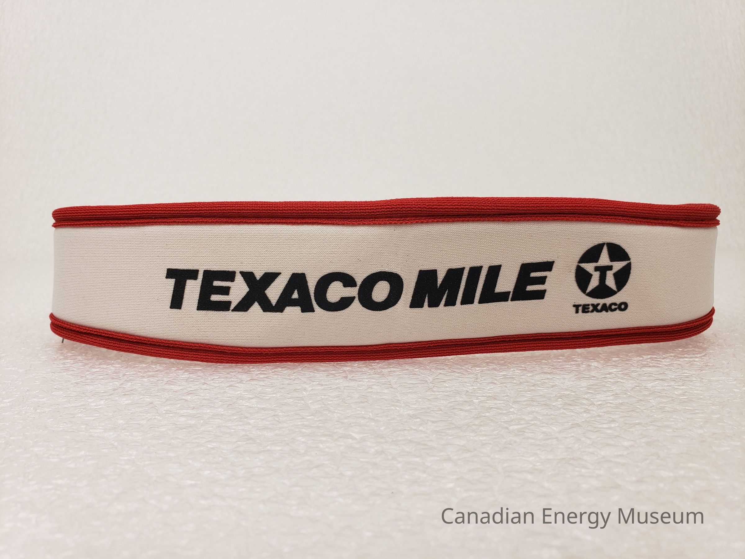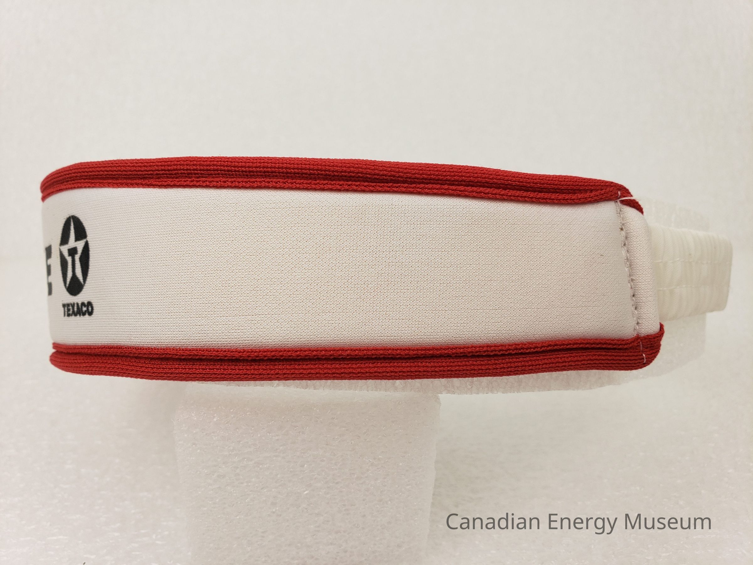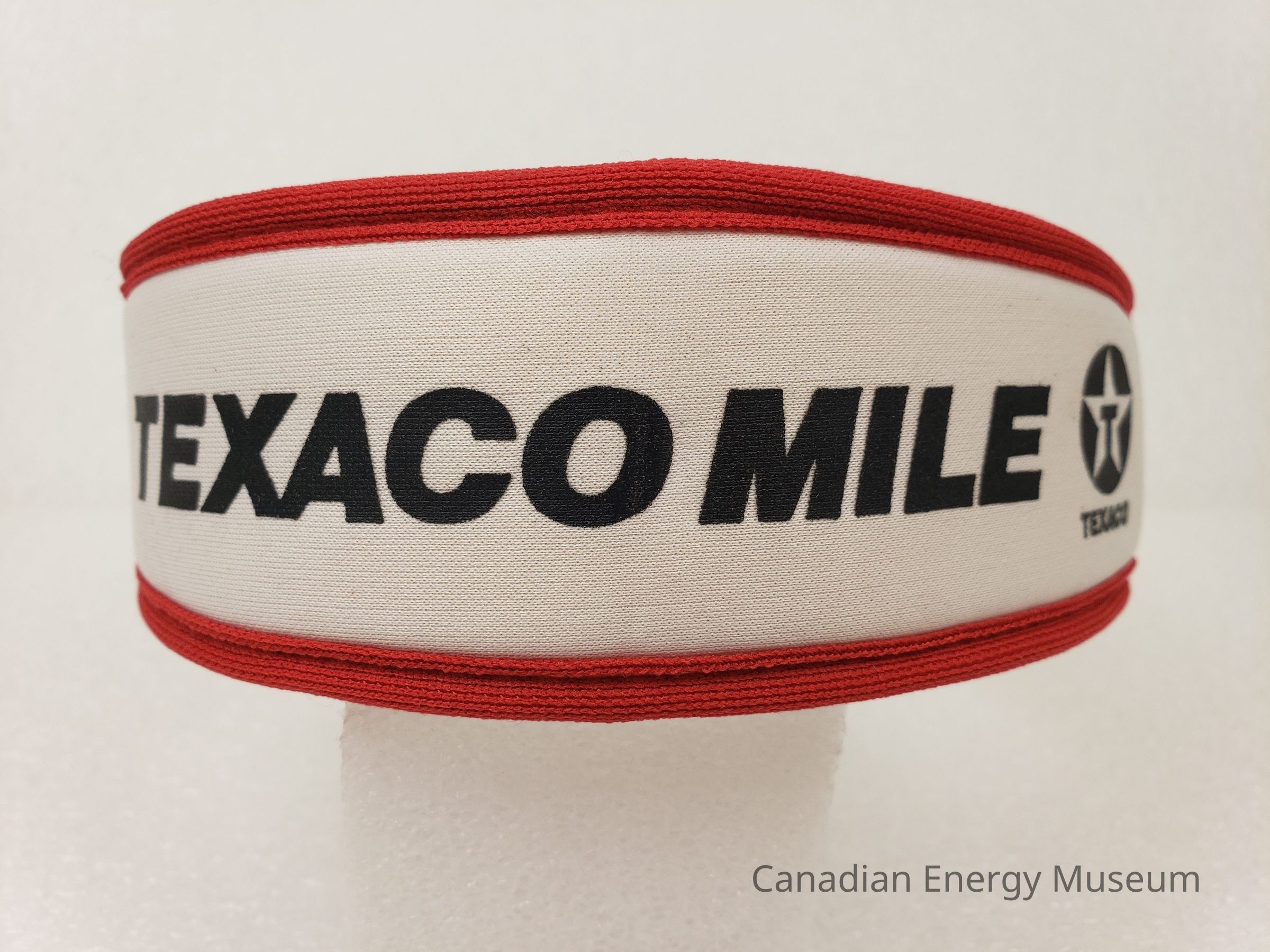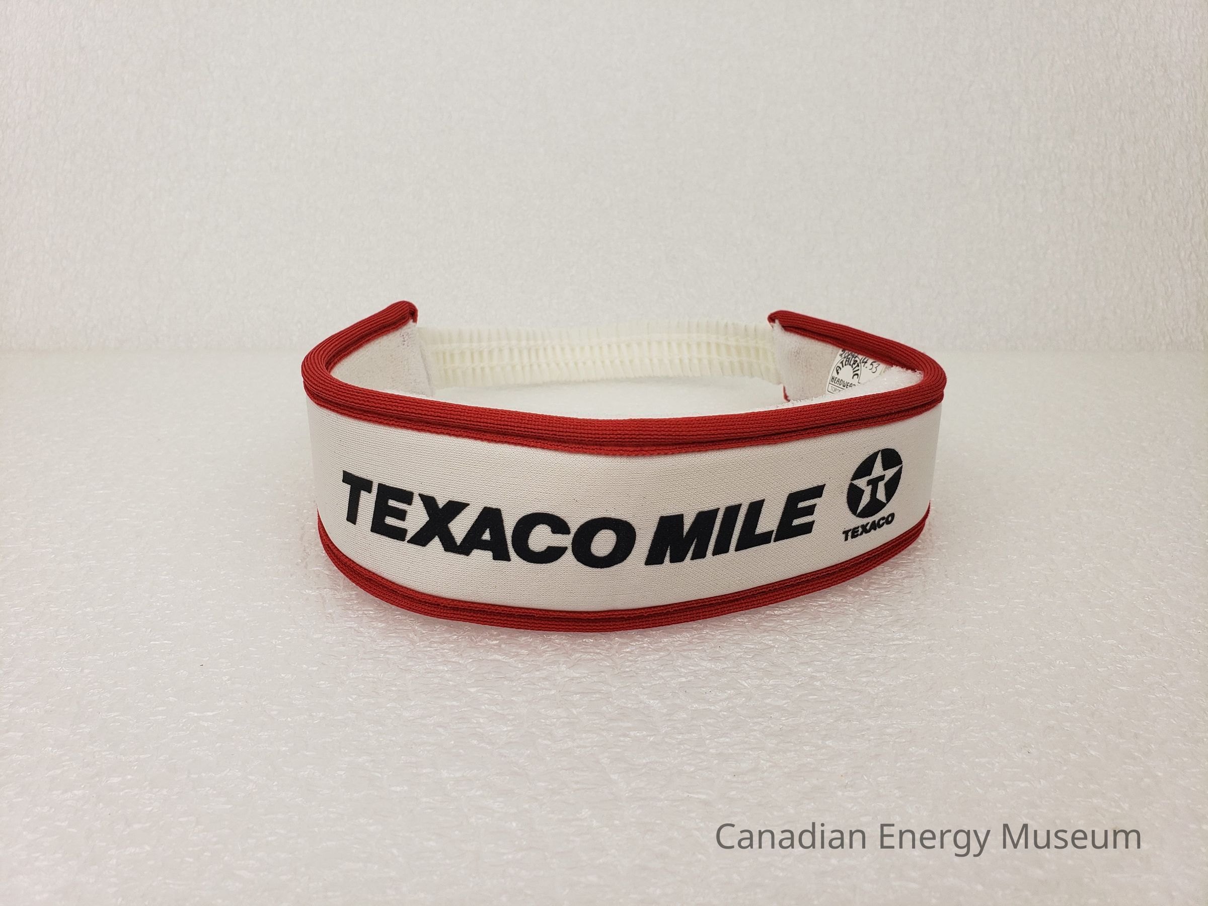 An elastic sports headband/sweatband, branded to Texaco.