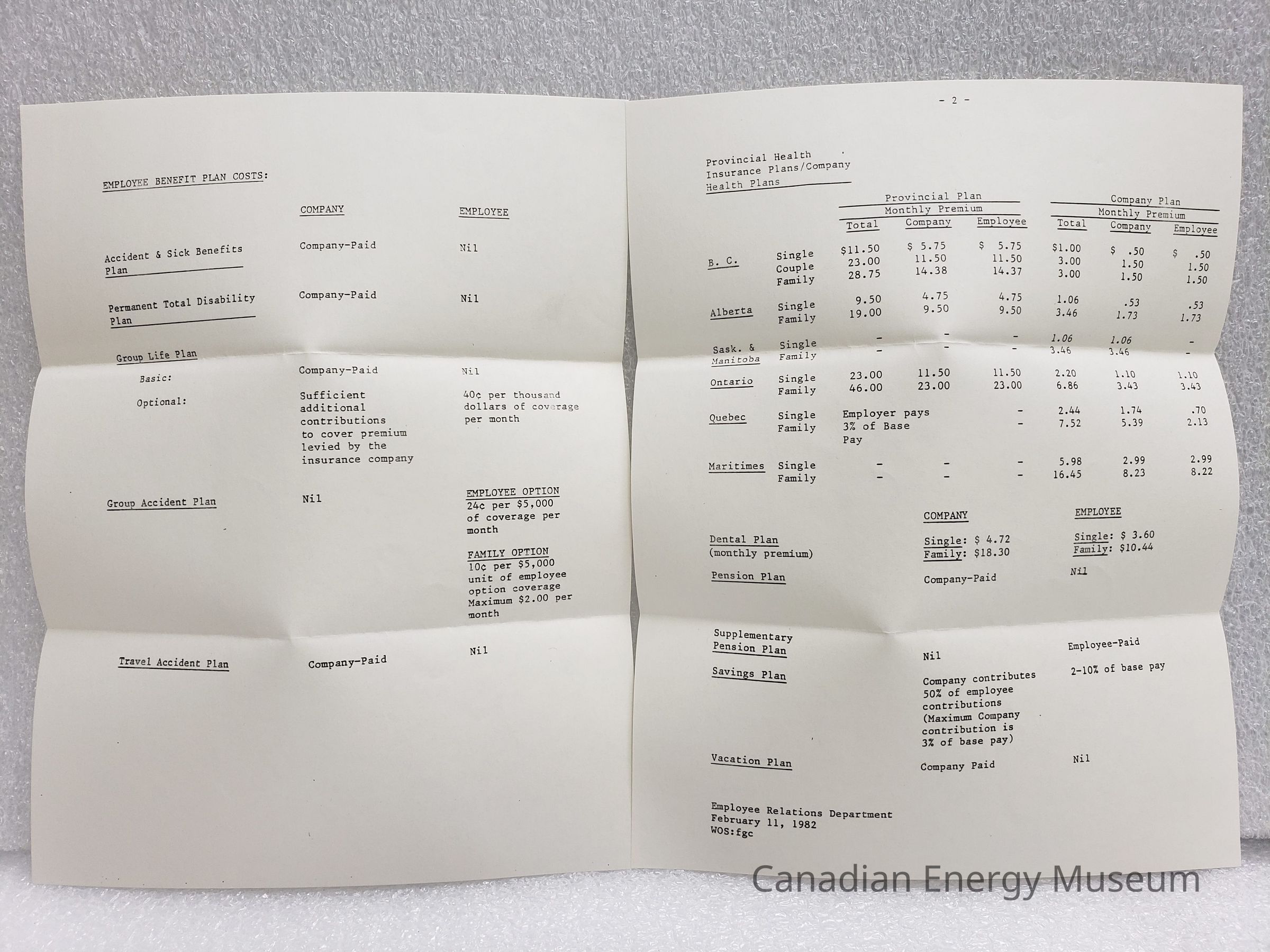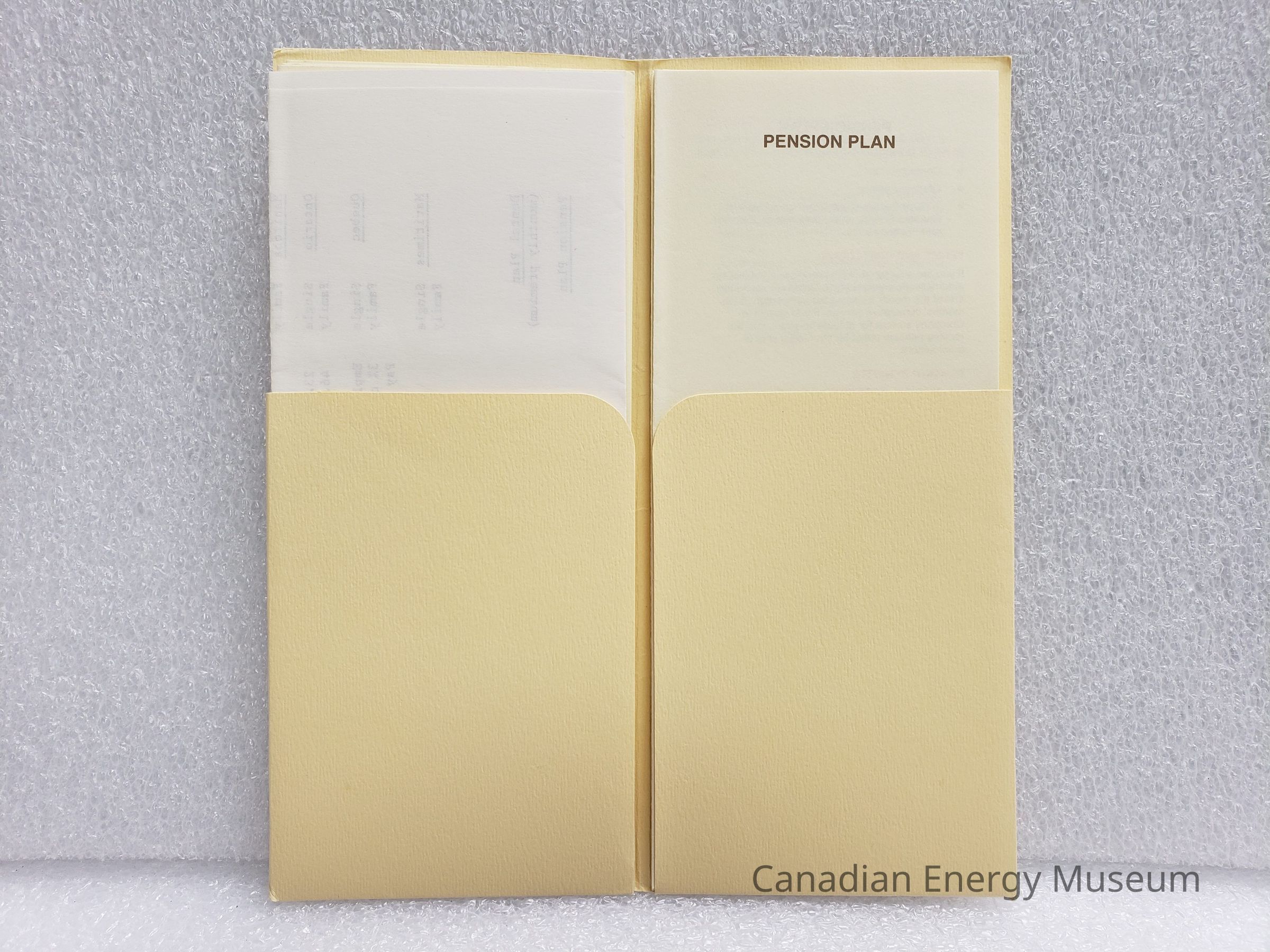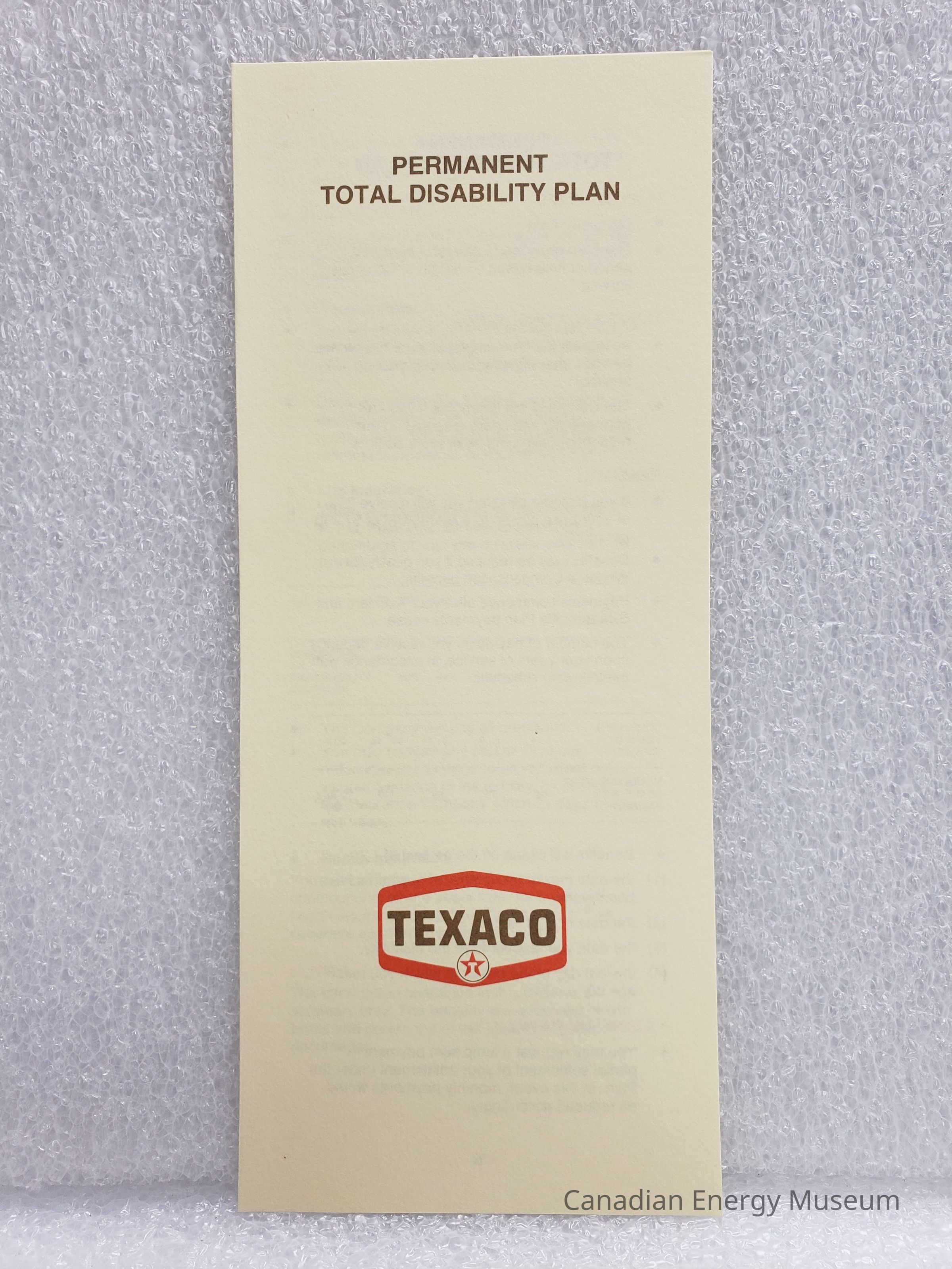 A booklet-sized manilla folder, containing NINE booklets related to Texaco Canada's Employee Benefit Plans, dated to 1982.Collection