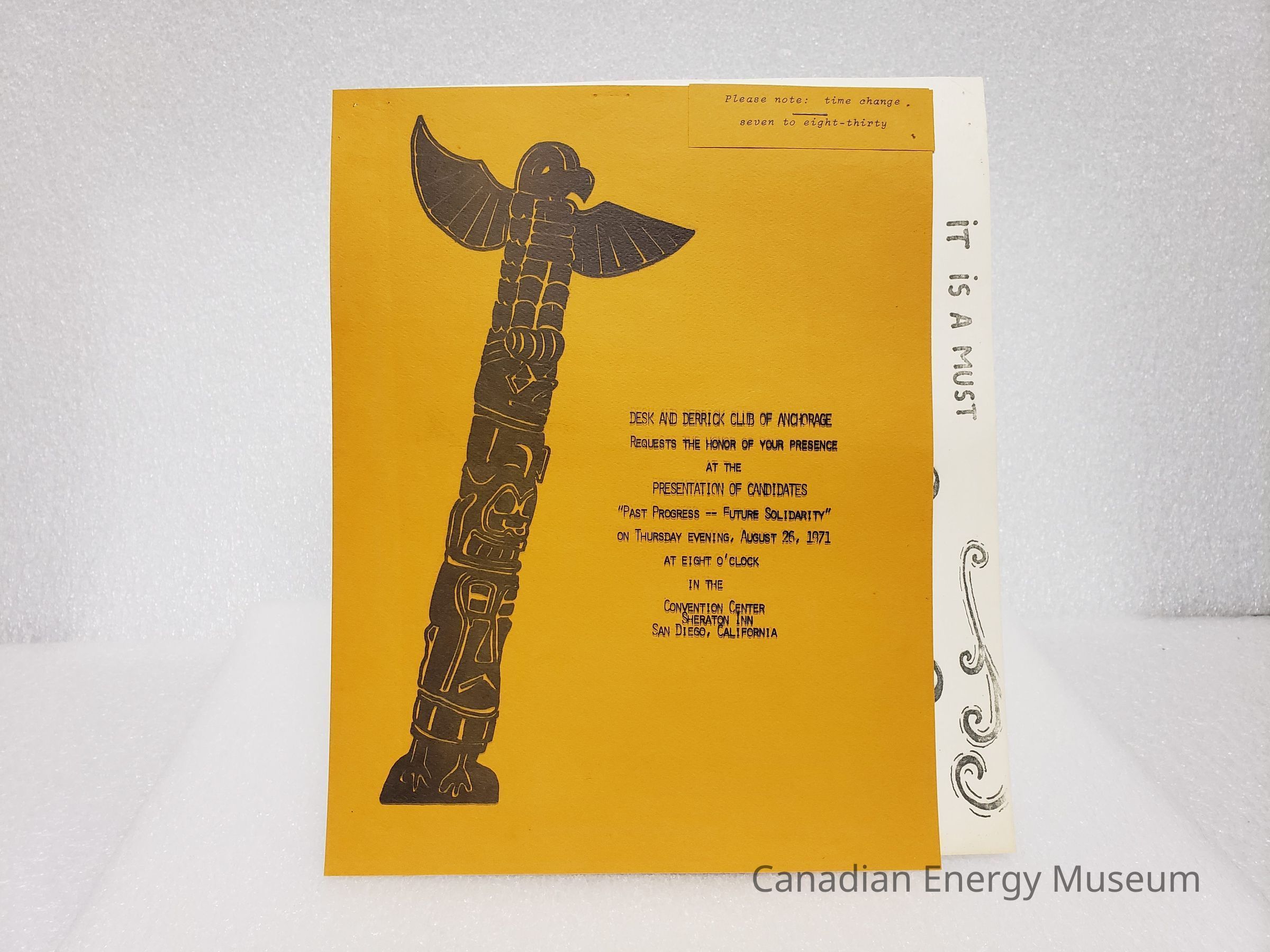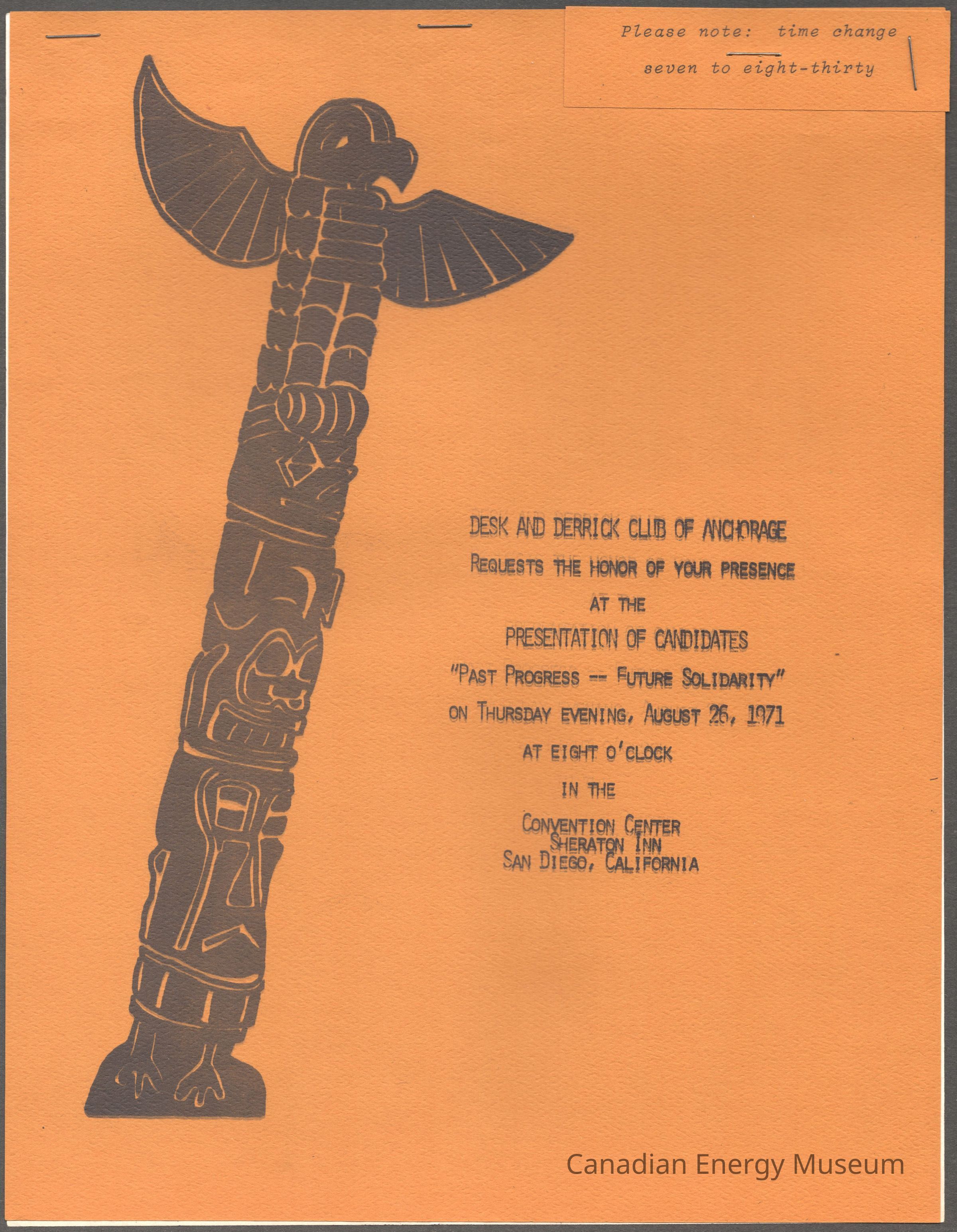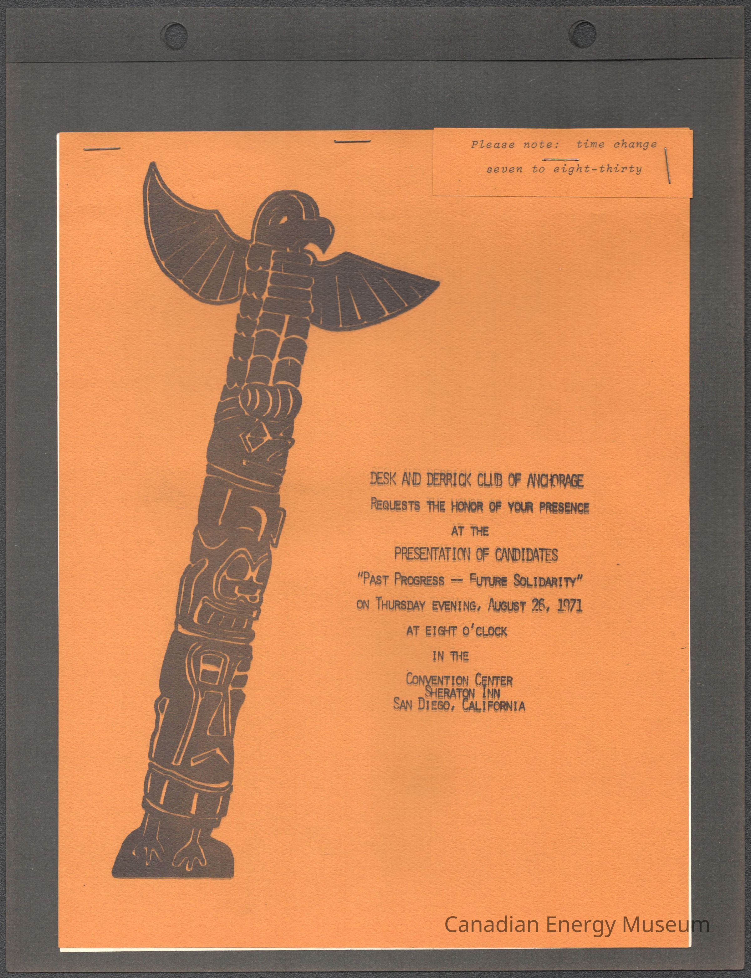[Invitation] "Past Progress--Future Solidarity", Desk and Derrick Club of Anchorage, San Diego, 26 August, 1971Entry/Object ID