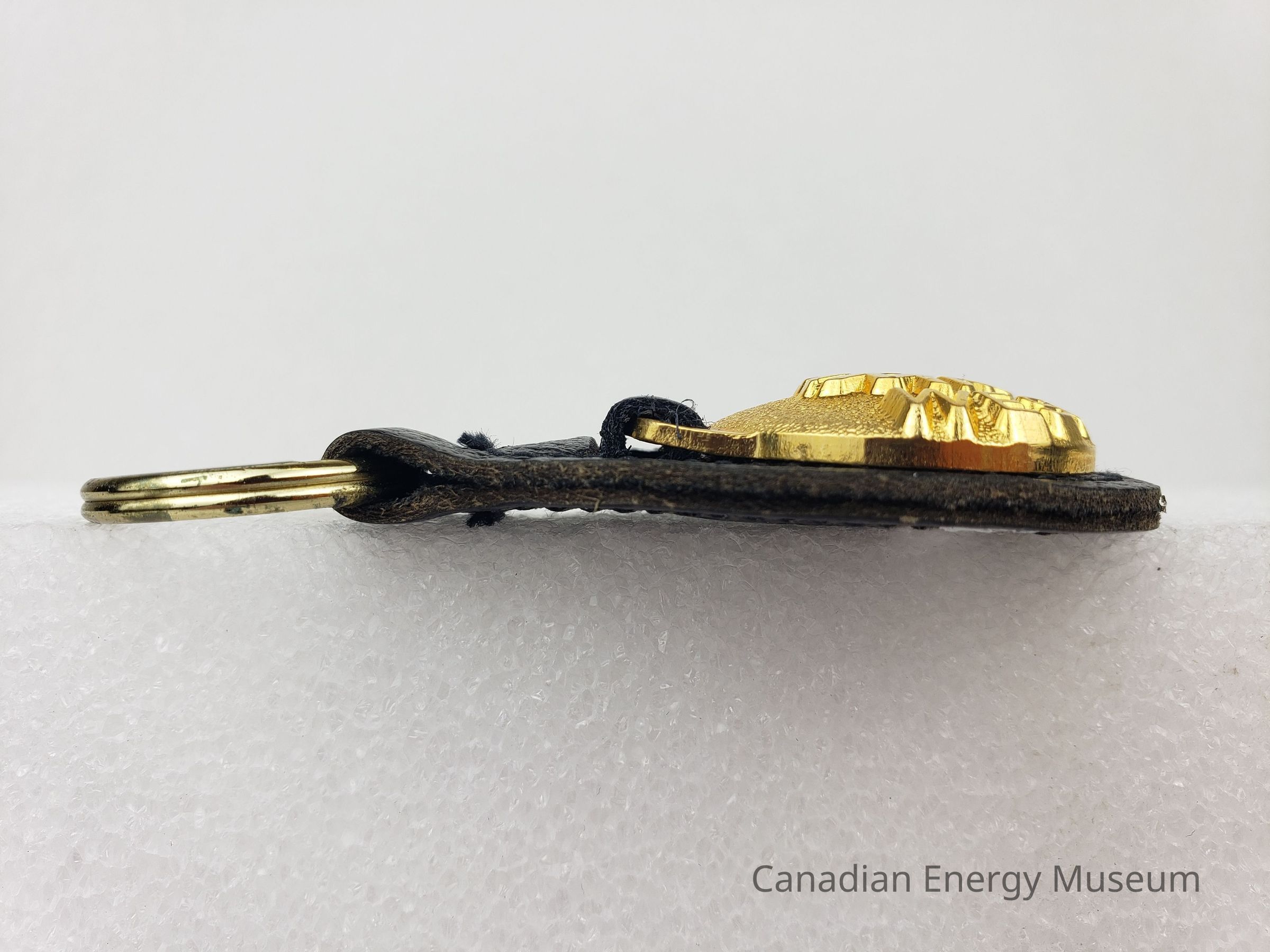 Oil, Oil Industry, Westburne Drilling, Westburne International Industries Ltd., Metal, Gold, Brown, Leather, Keyfob, Keyring, KeychainDescription