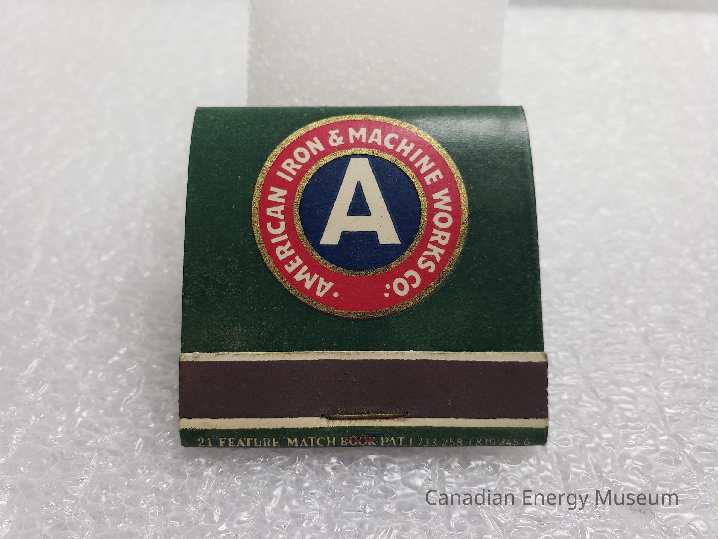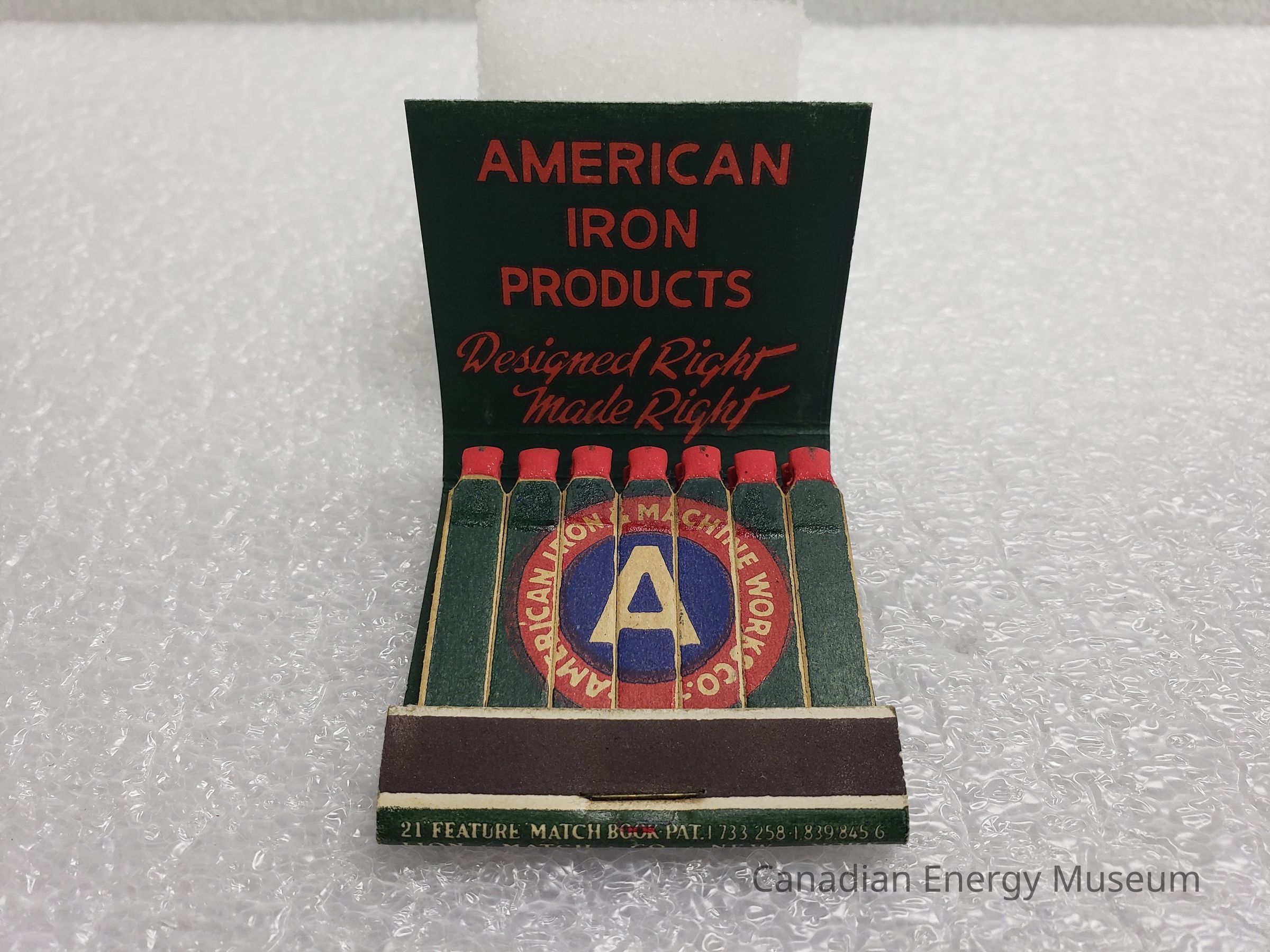 A 21-strike matchbook, branded to American Iron & Machine Works Co. 18 matches are present.Collection