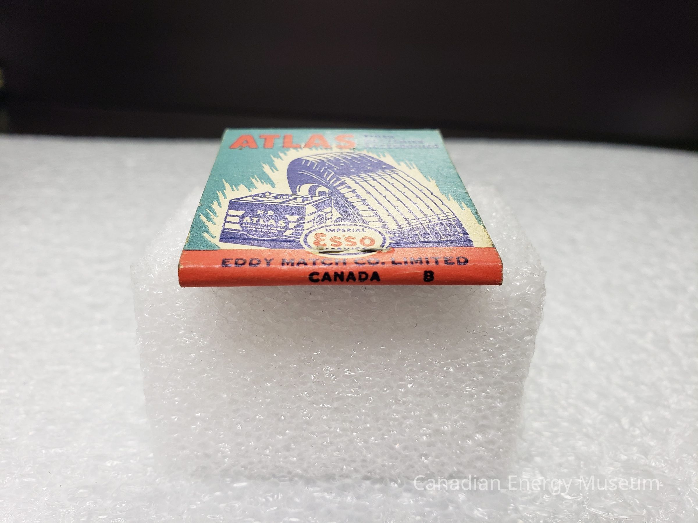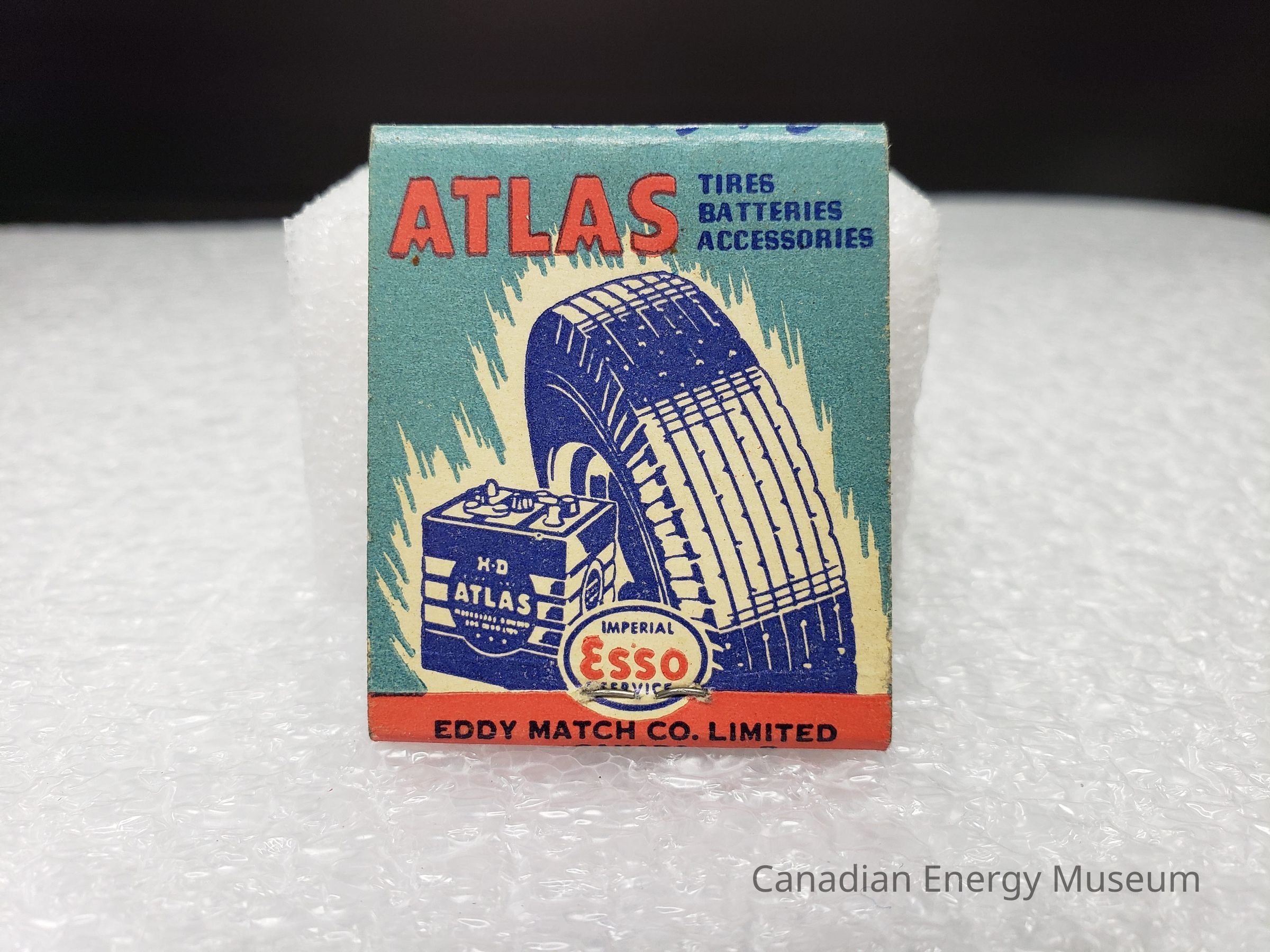 Matchbook, Paper Ephemera, Esso, Atlas, Paper, Matches, Blue, Red, Turquoise, Tire, BatteryDescription