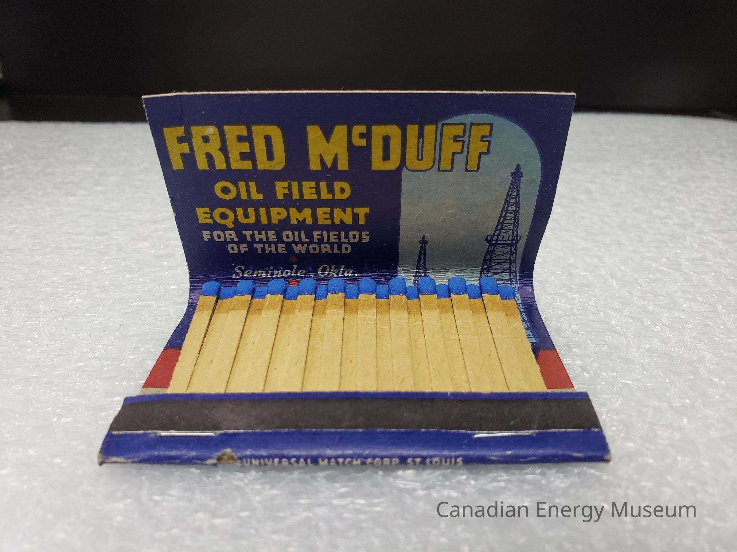 Matchbook bearing branding from Fred McDuff, dealers of used oil field equipment (Oklahama). Contained 40 matches.