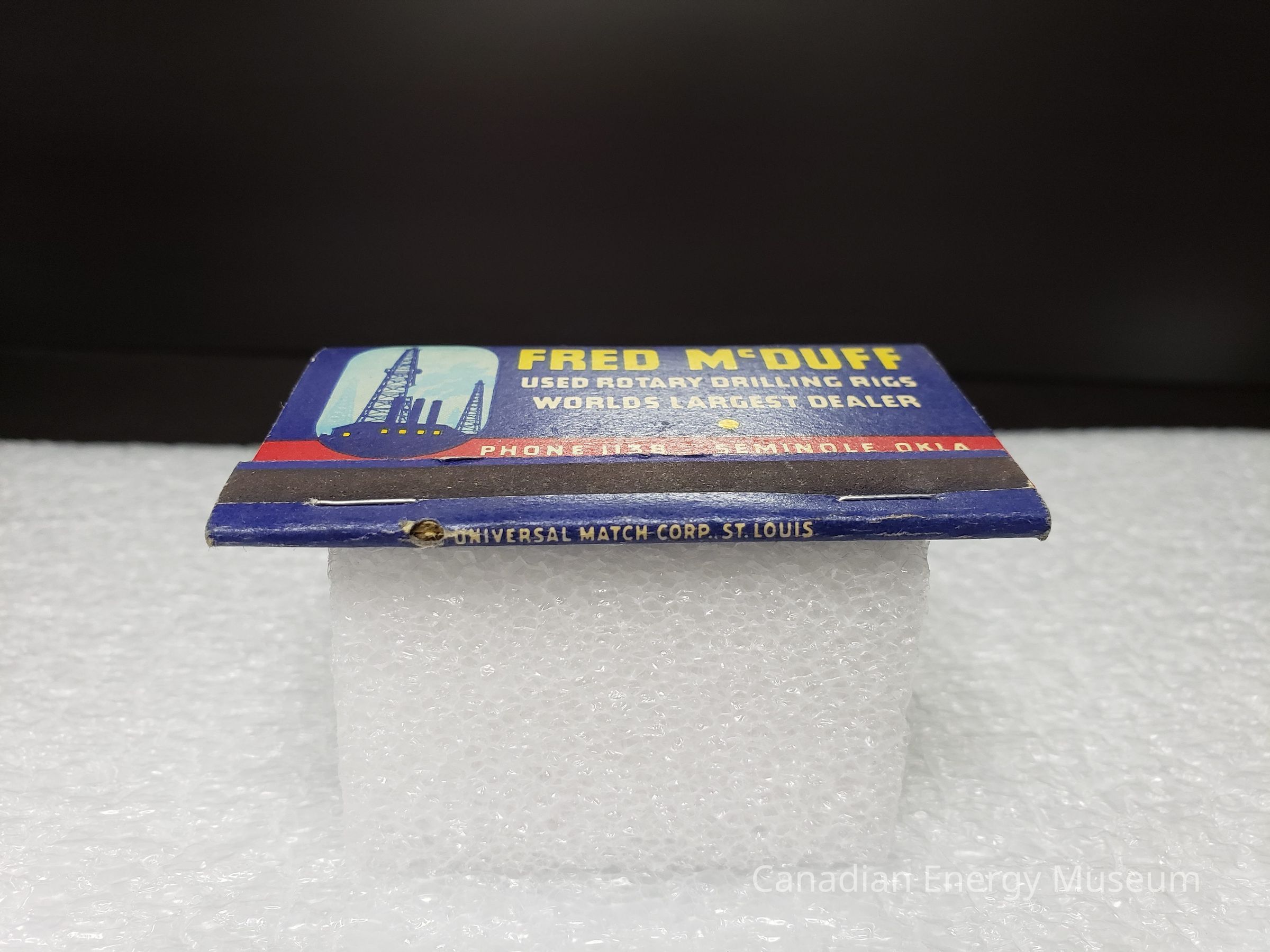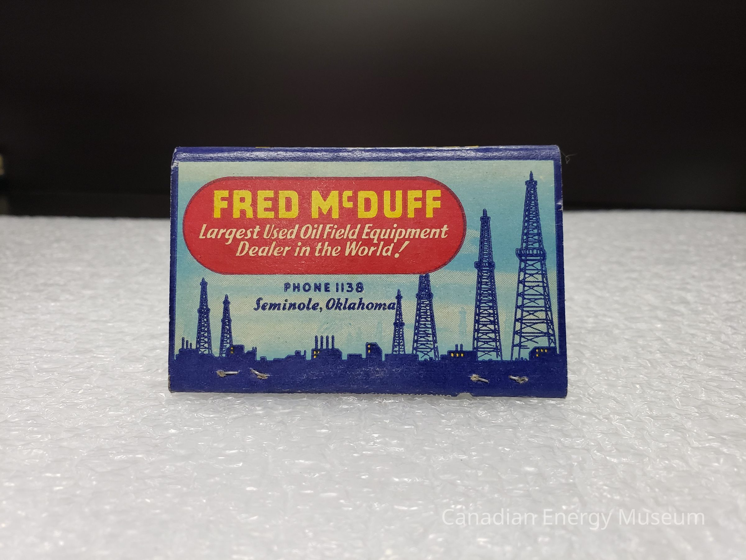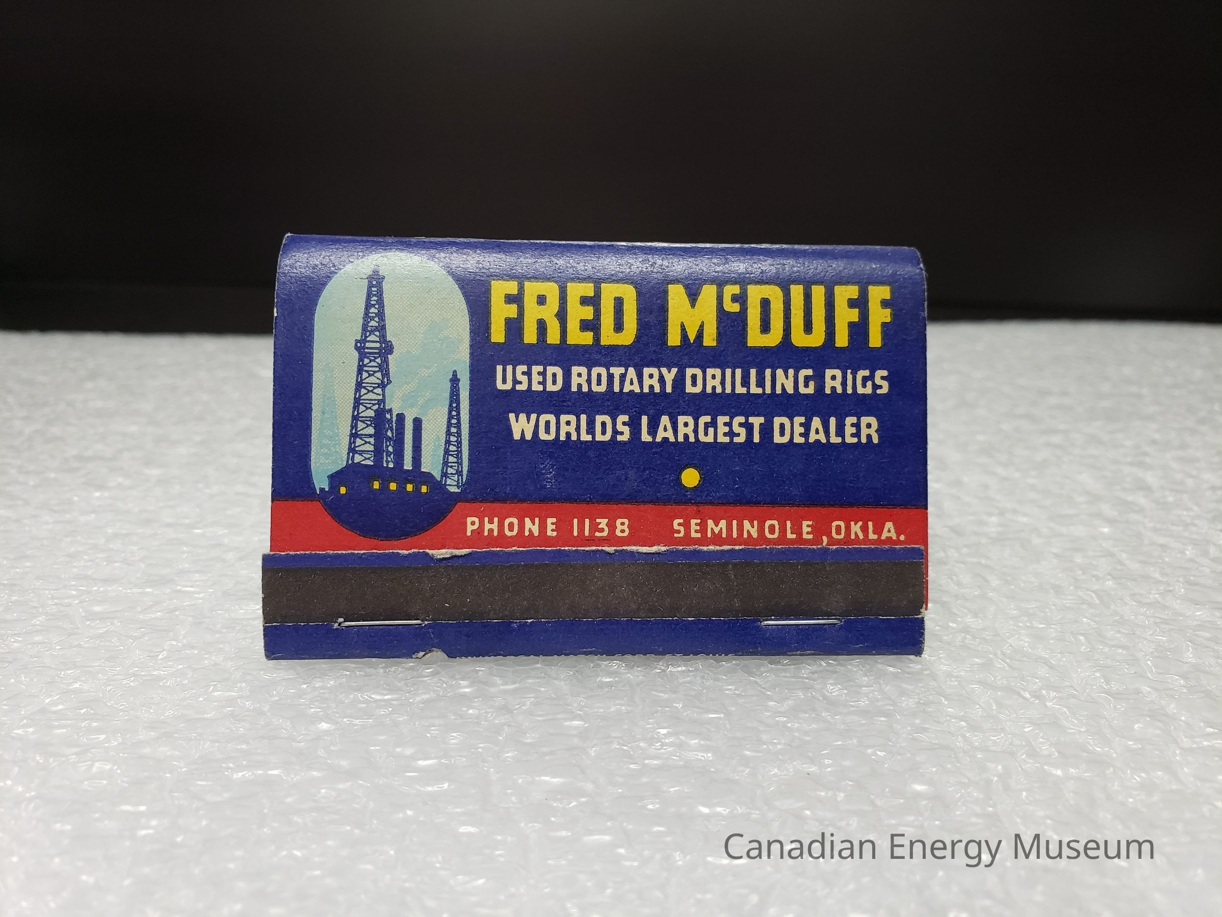 Matchbook bearing branding from Fred McDuff, dealers of used oil field equipment (Oklahama). Contained 40 matches.