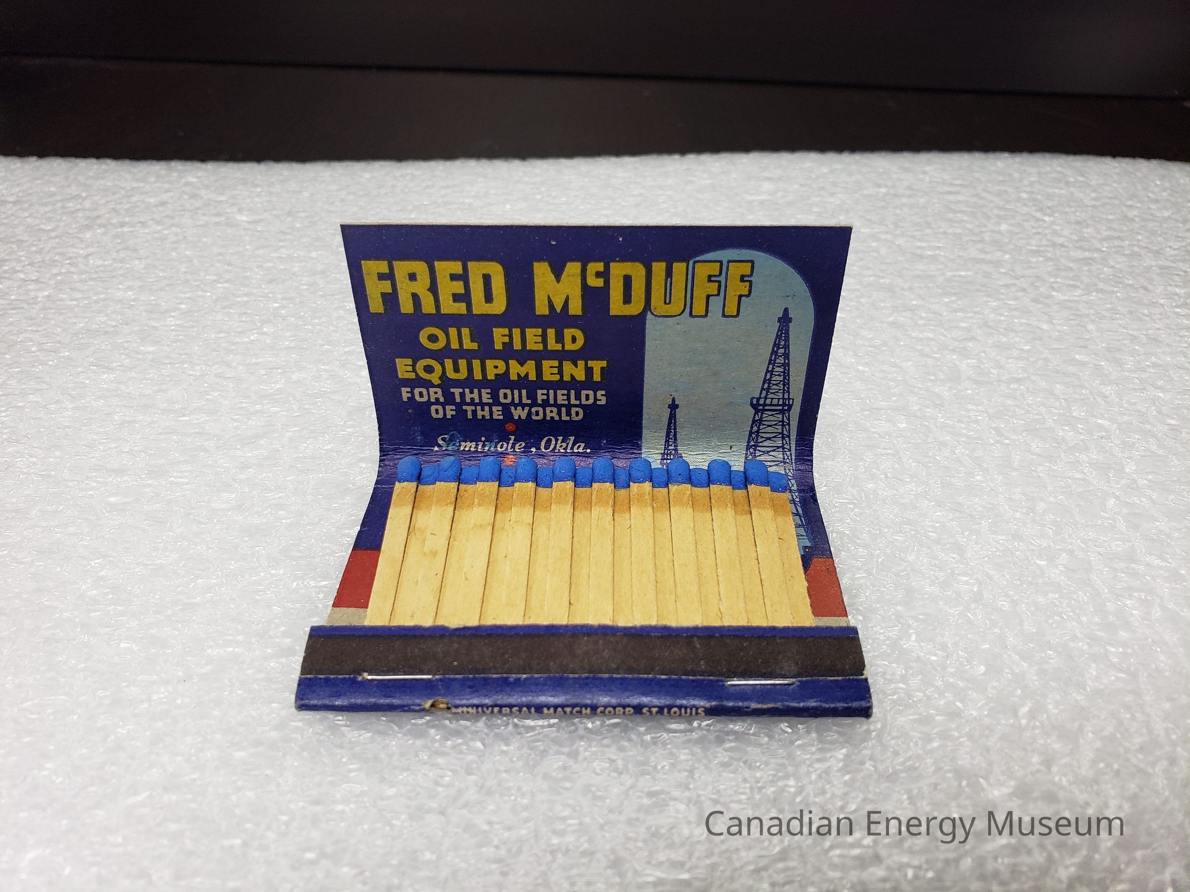Fred McDuff, Matchbook, Paper Ephemera, Paper, Matches, Blue, Yellow, Red, Oilfield, Drilling, Seminole, Oklahoma, Oil FieldDescription