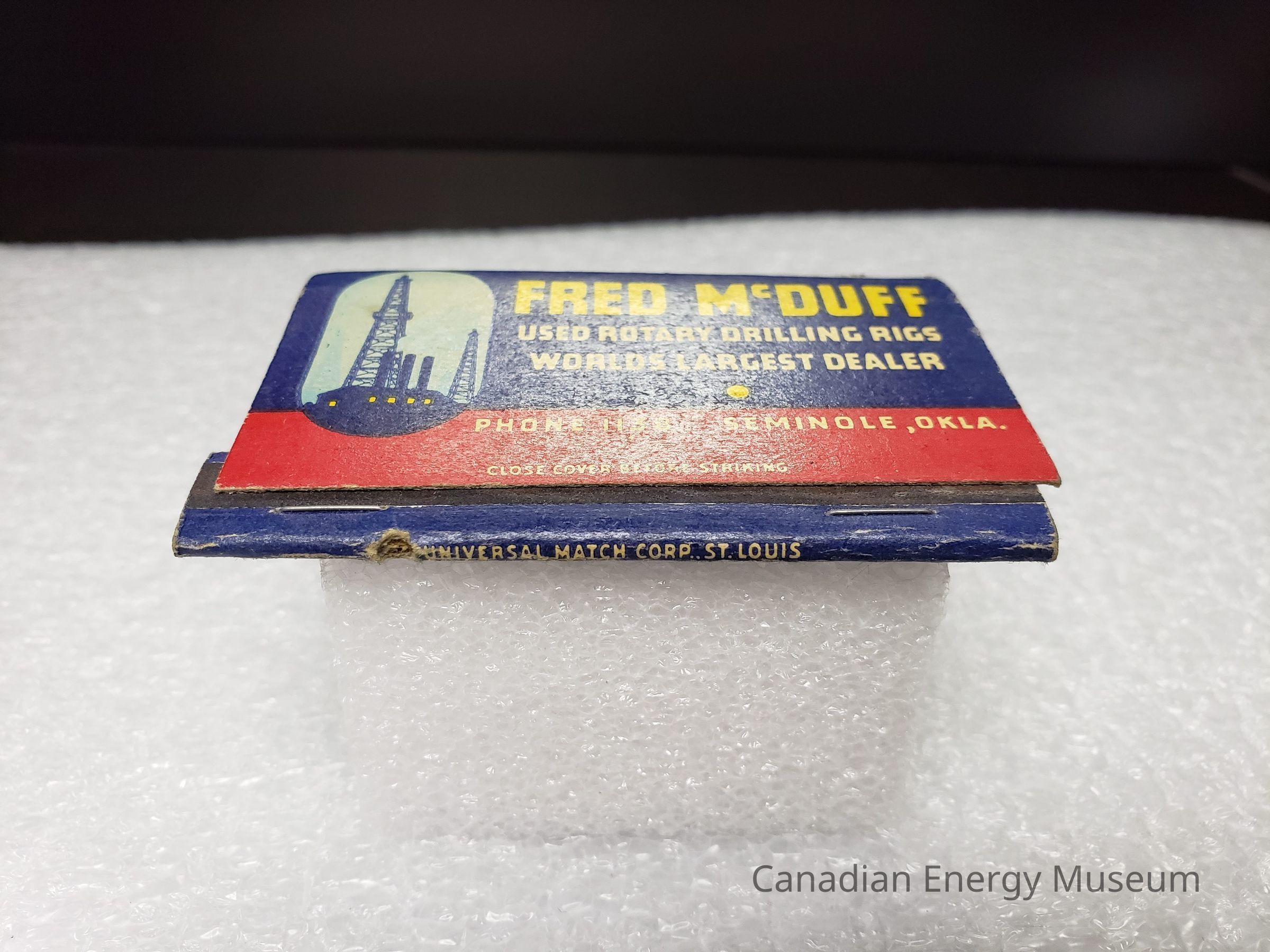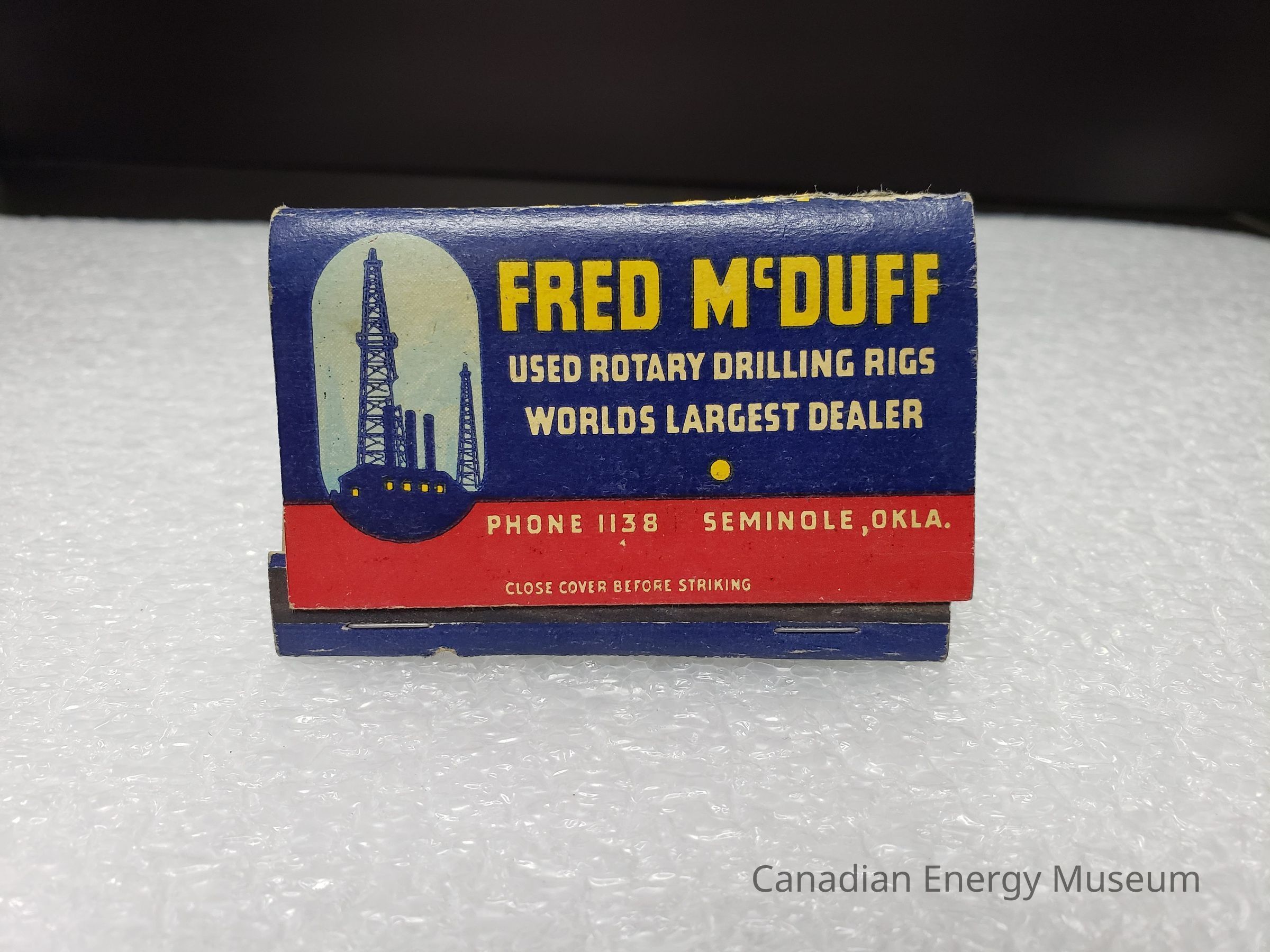 Matchbook bearing branding from Fred McDuff, dealers of used oil field equipment (Oklahama). Contained 40 matches.