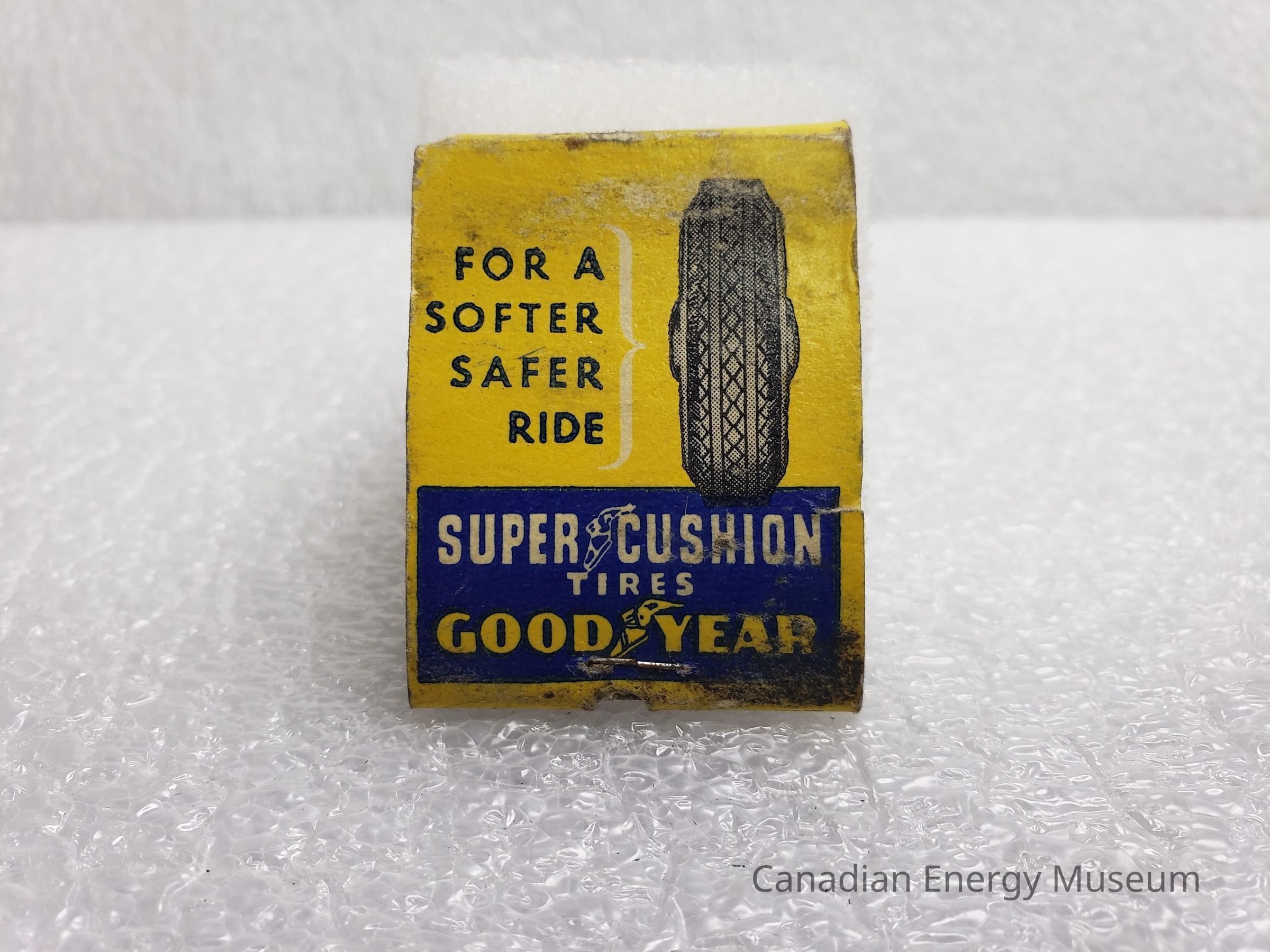 A 18-strike matchbook, branded to Good Year Tires. No matches are present.Collection