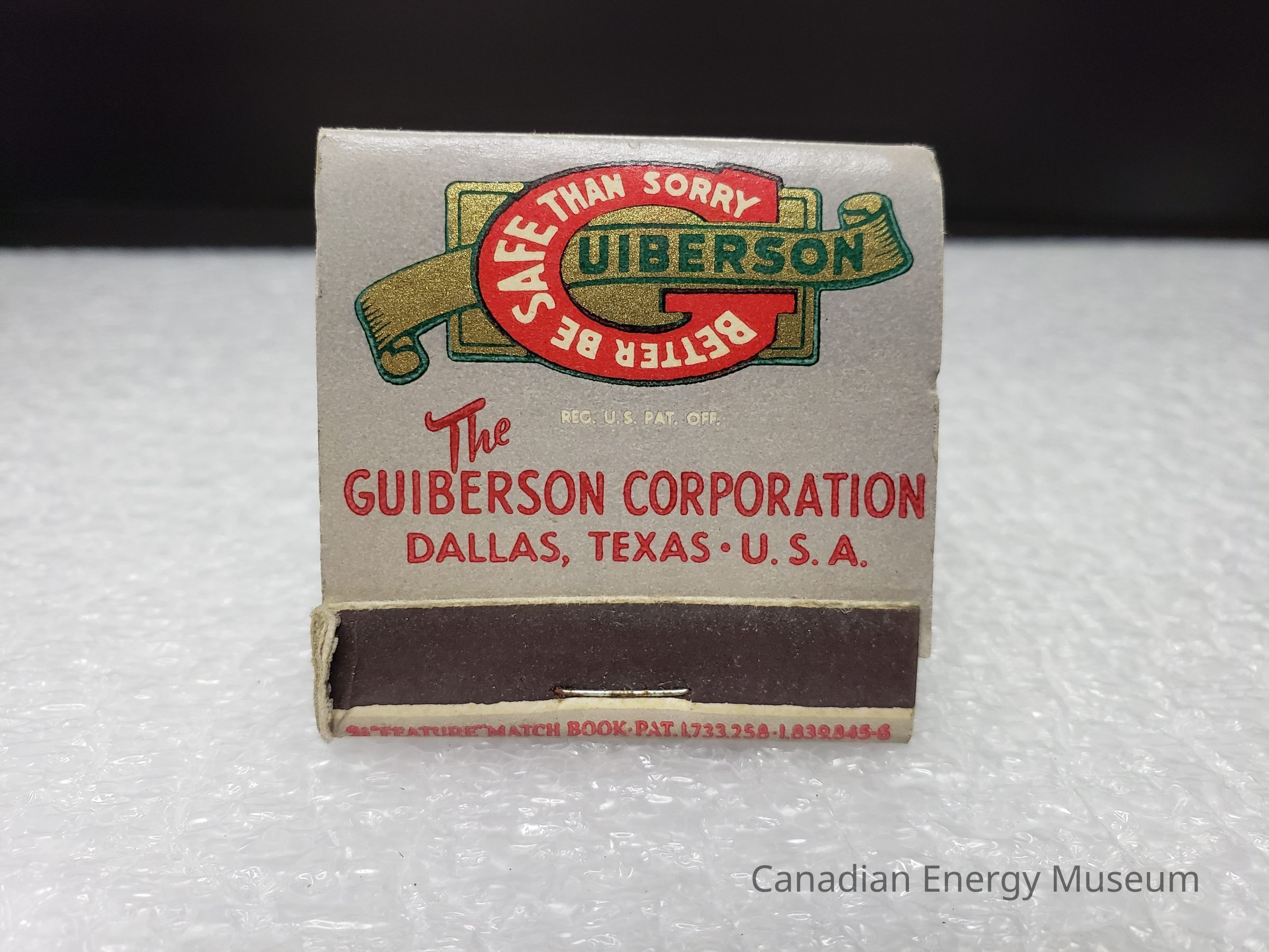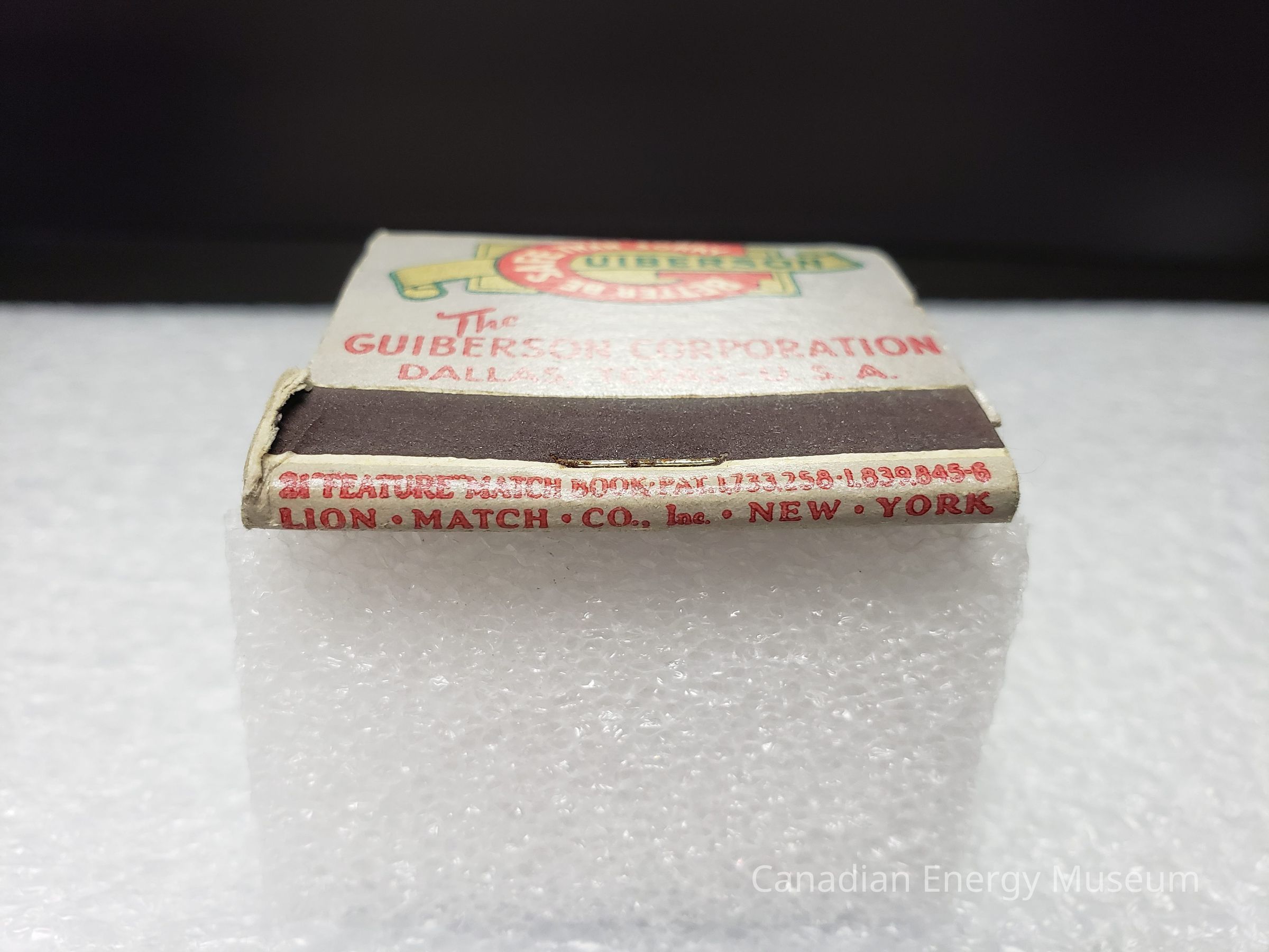 Matchbook bearing branding for Guiberson Corporation, supplier of specialty oil field equipment (Dallas, Texas). Contained 21 matches.