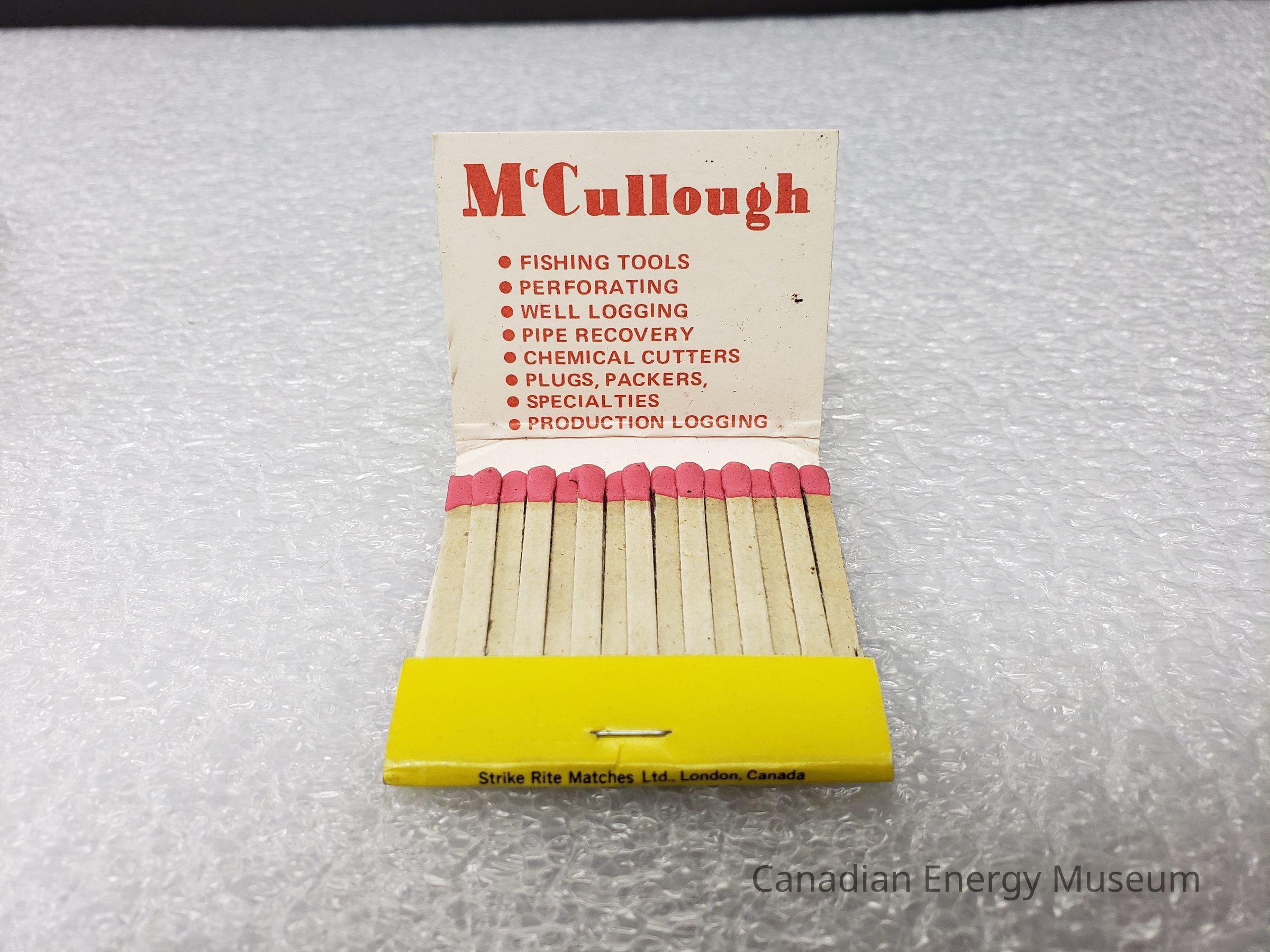 Matchbook bearing branding for McCullough Tool Co., manufacturer of oil well tools and specialities. Contained 30 matches.