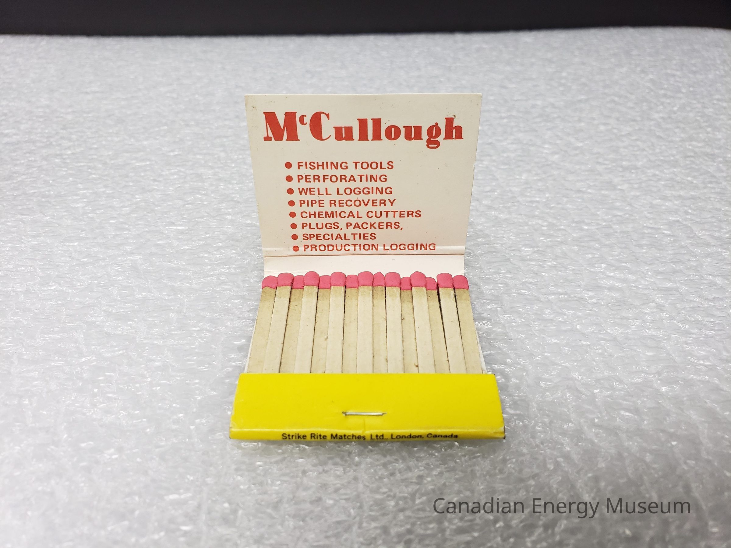 Matchbook bearing branding for McCullough Tool Co., manufacturer of oil well tools and specialities. Contained 30 matches.