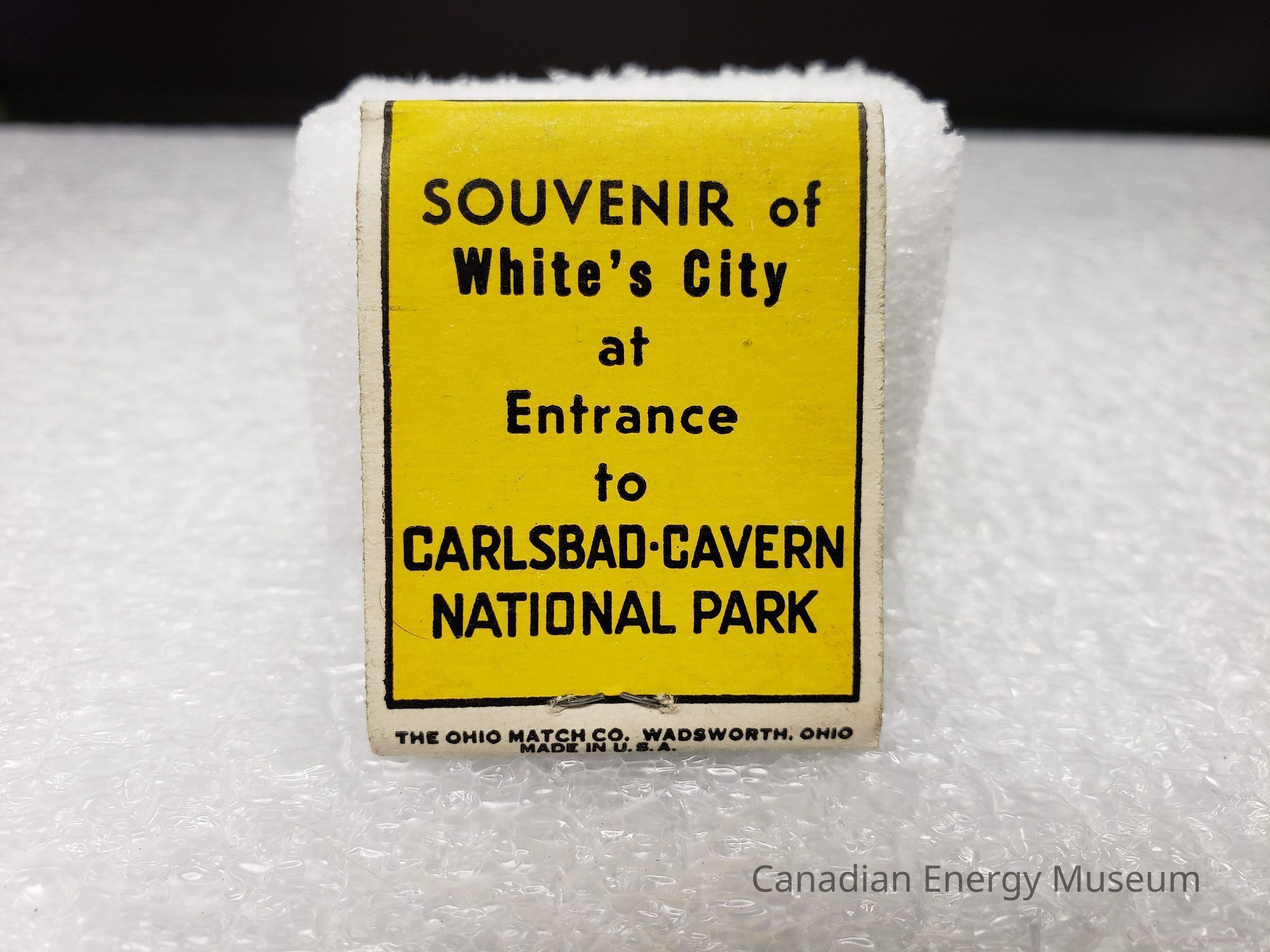 Matchbook, Paper Ephemera, White's City, Paper, Matches, Cavern, Carlsbad-Cavern, YellowDescription