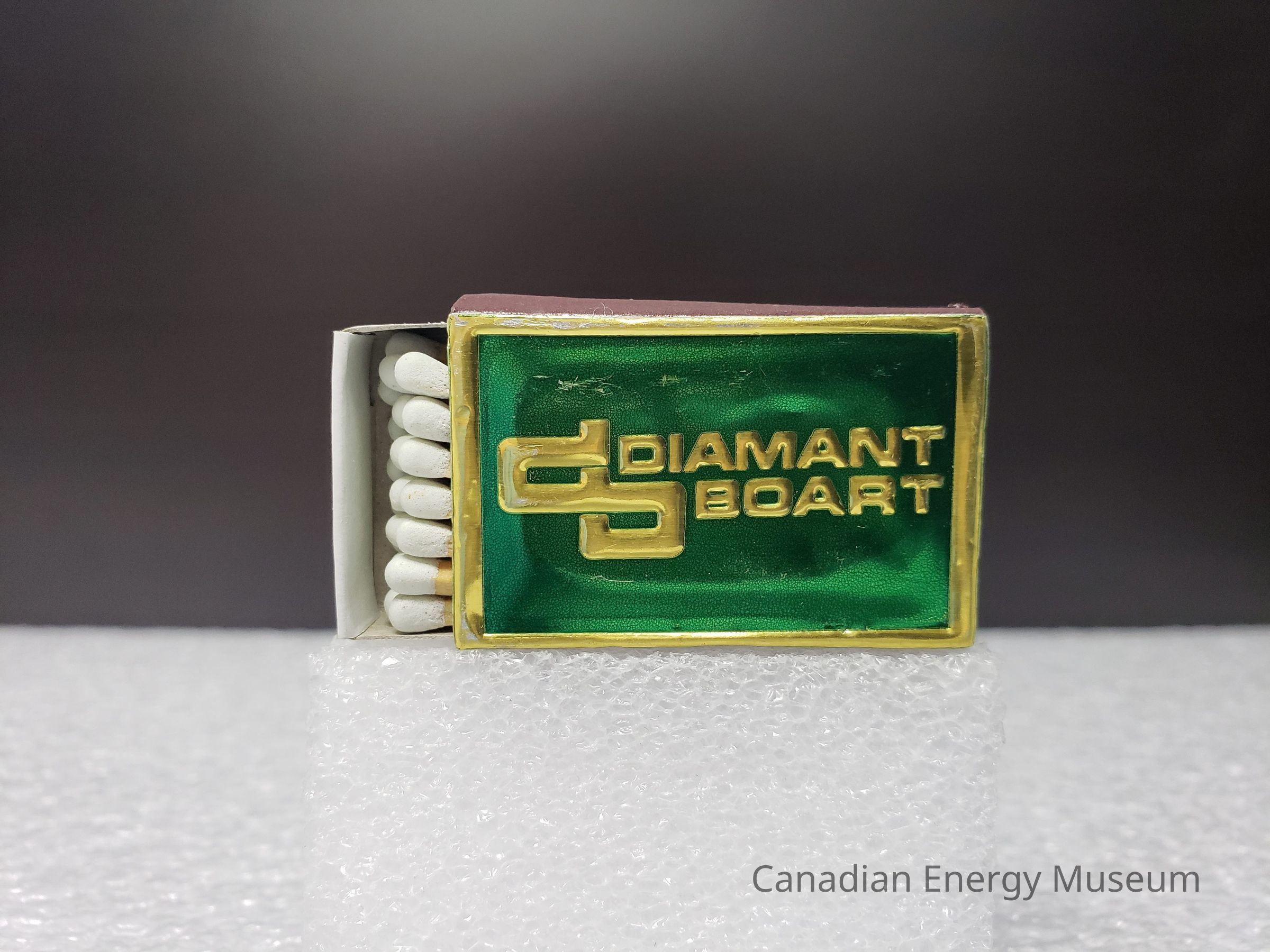 Old Description(Kelsey Steil, 6/1/2022):Green matchbox. Advertisement on face for Diamant Boart in gold. Matches inside have white tips.Collection