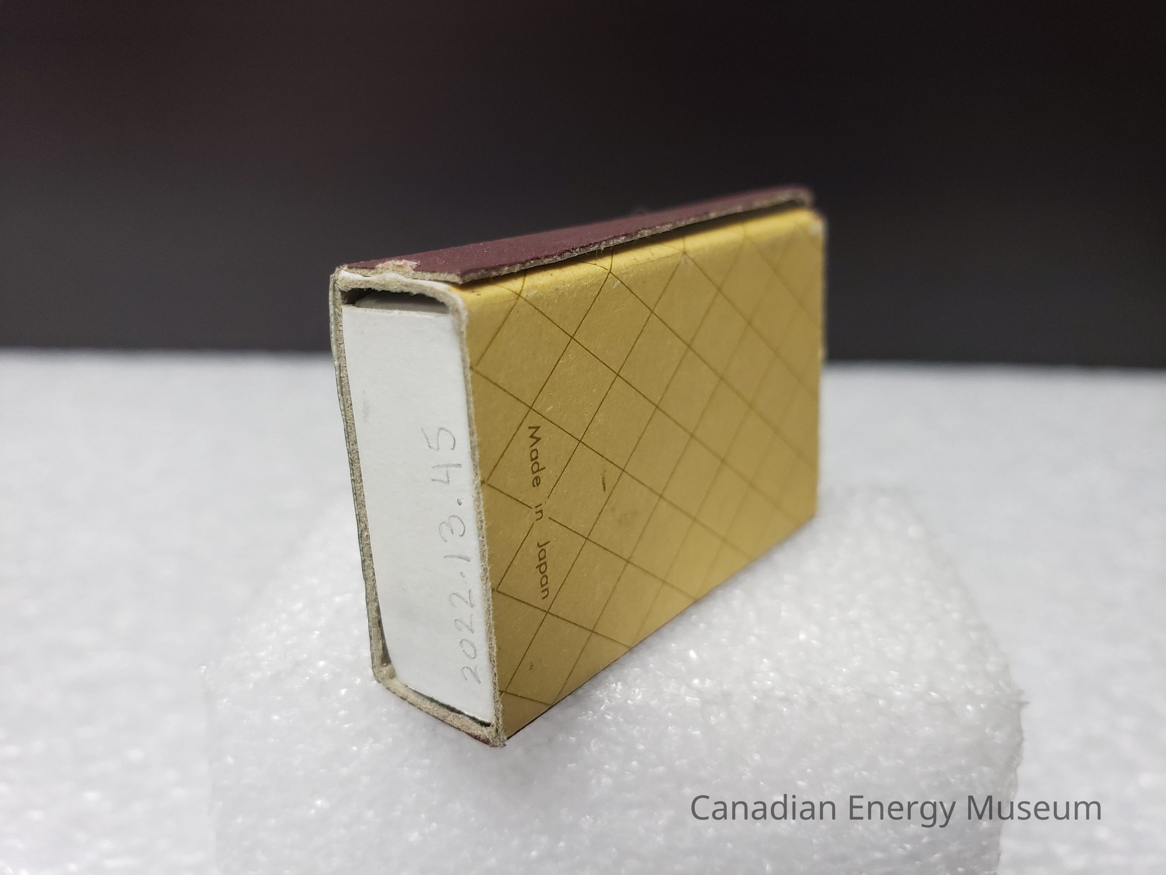Match Holder: The interal match holder is a folder cardboard box open at the top . it consist od a white outside and a gray inside of exposed cardboard.